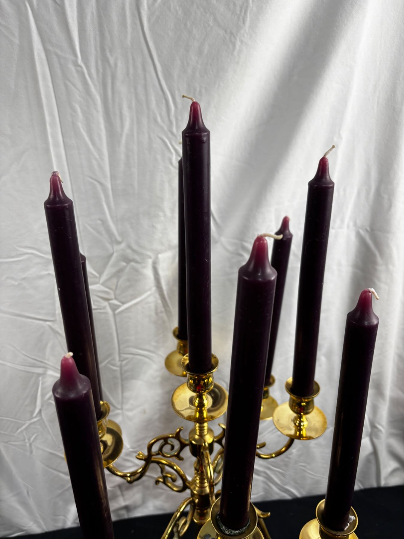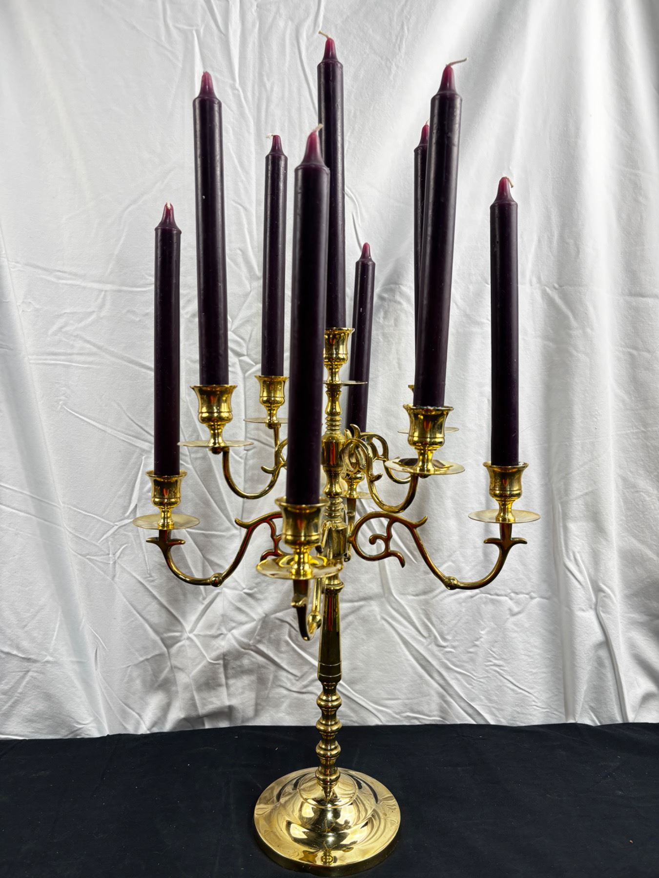 9 candle holder. Candles included. Height: 17.5" and width: 13.5. Measured without candles.
