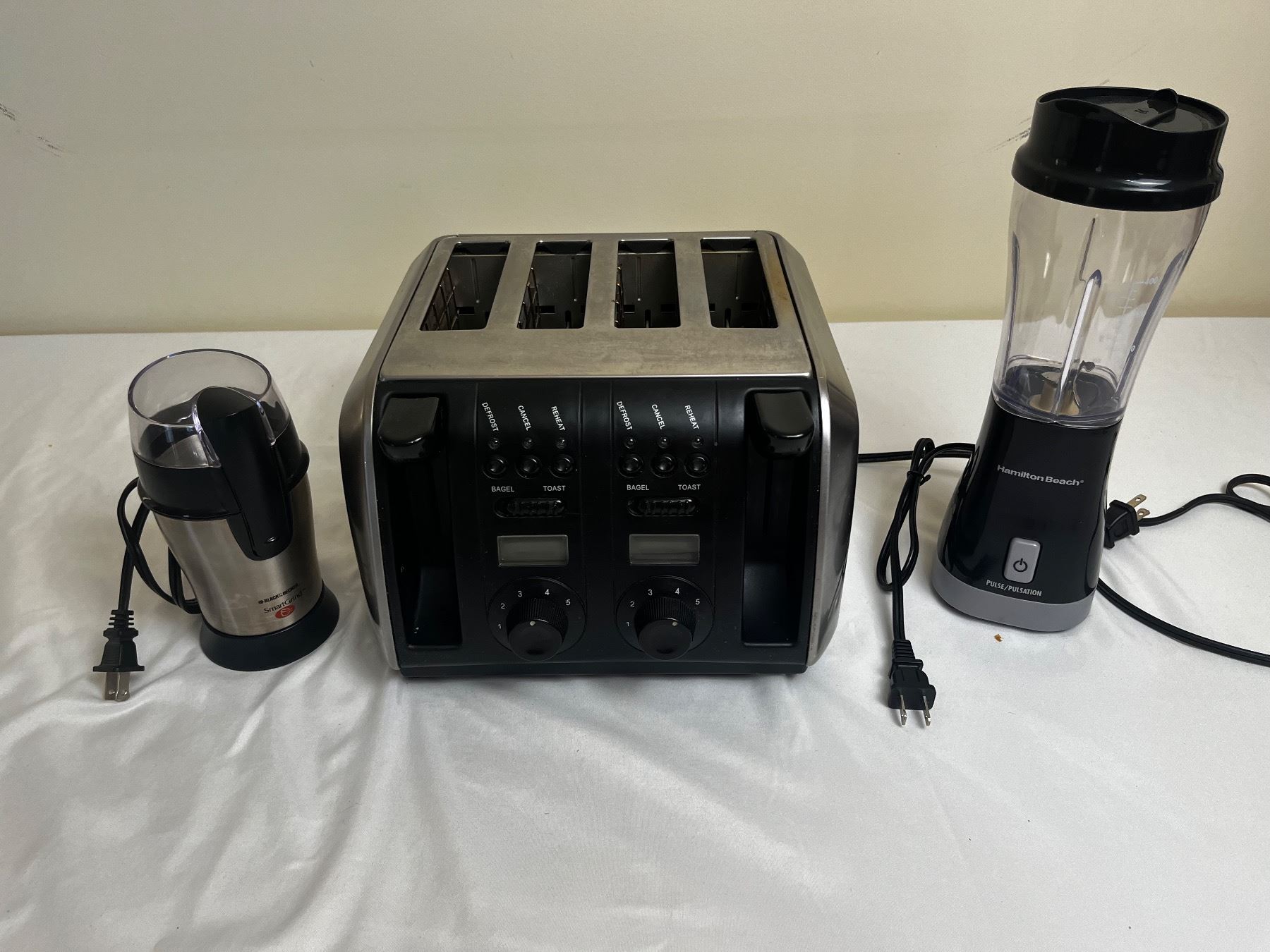 inc. Toastess toaster, Hamilton Beach blender, Black & Decker smart grind, all in used working condition