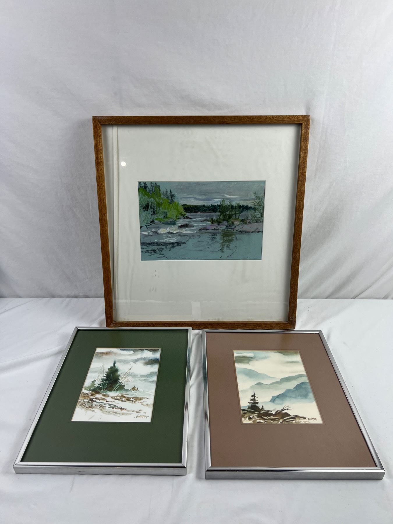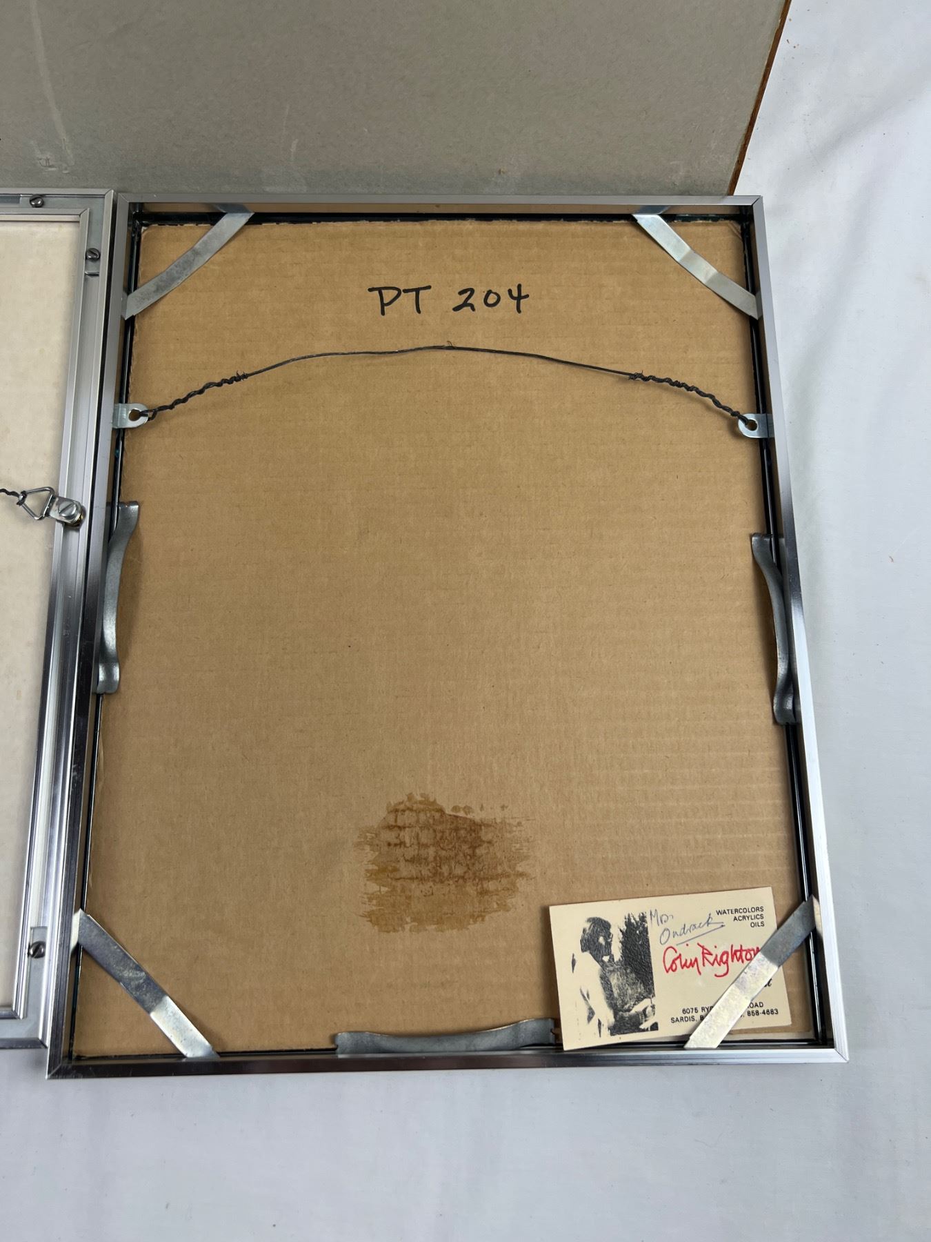 Large frame is 19" by 20". Same frame has interior damage and some separation from panel. Artwork is not damaged and looks to be an original but cannot confirm authenticity.