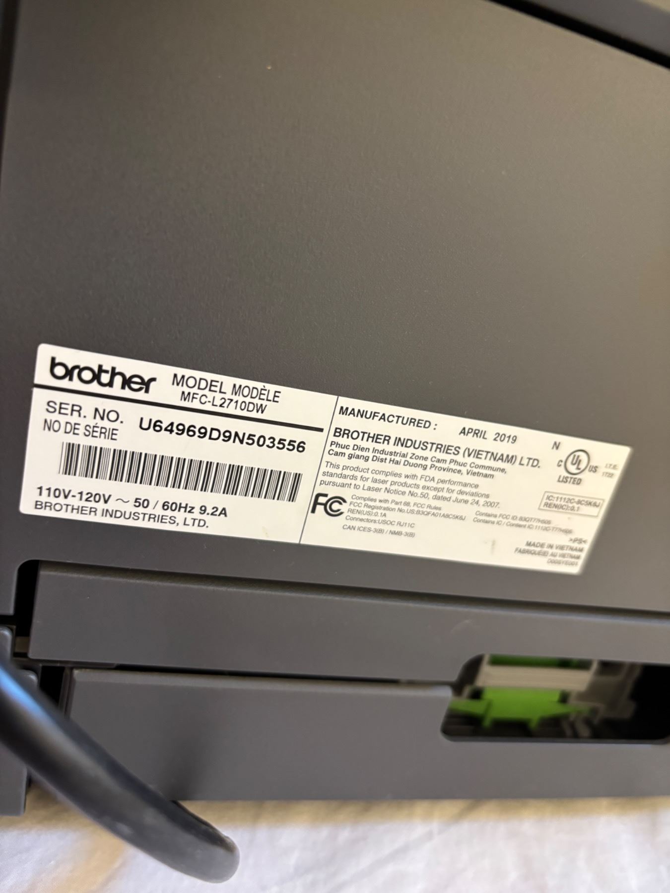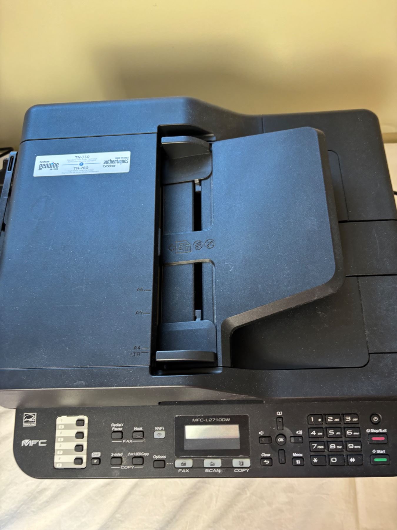 Brother MFC-L2710DW turns on, Desk lamp is in working condition