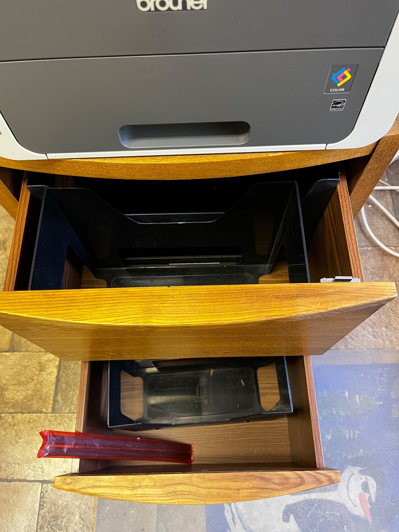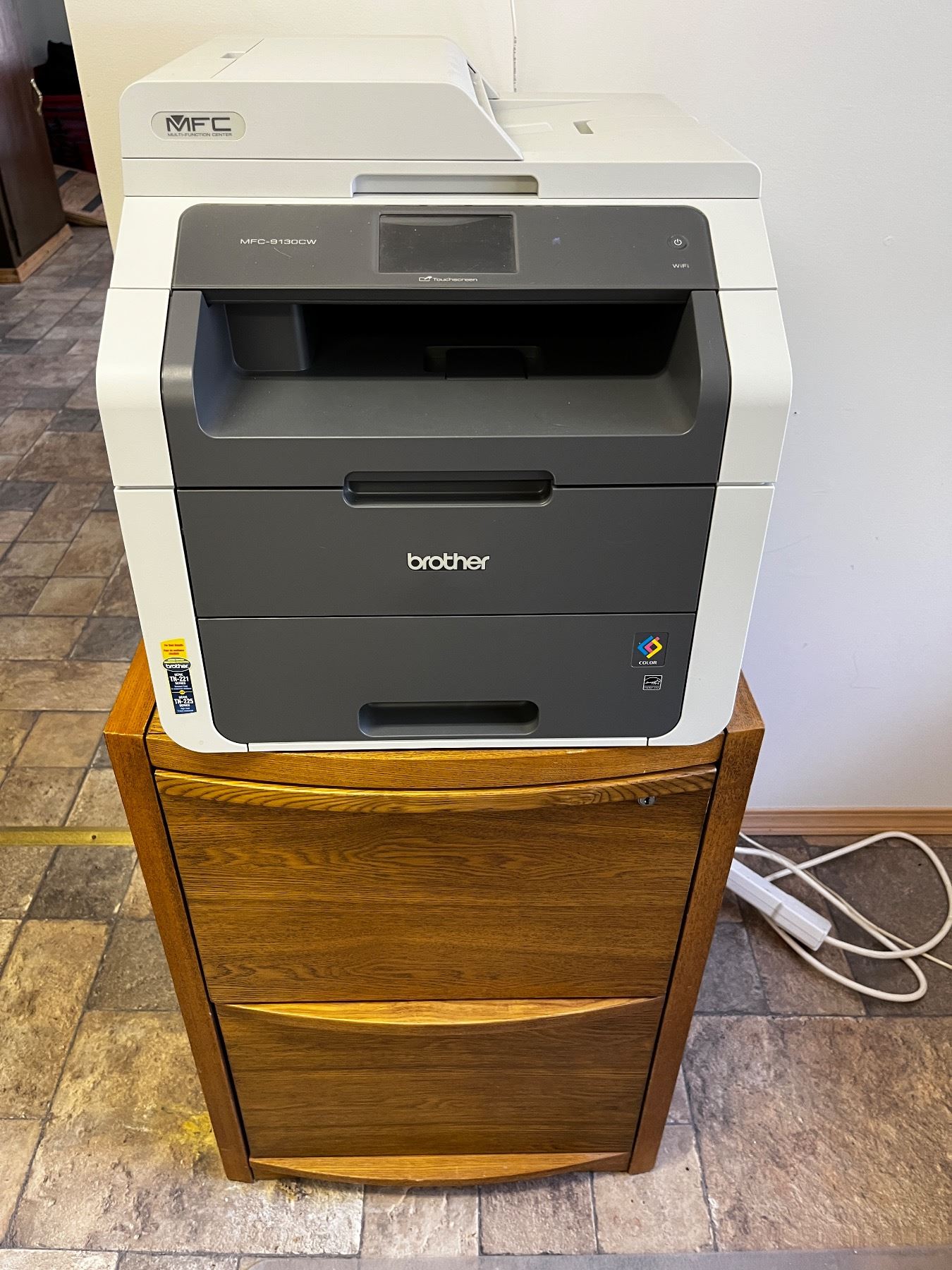Brother MFC-9130CW, works, Filing cabinet stand; 20"L x 17"W x 27.5"H