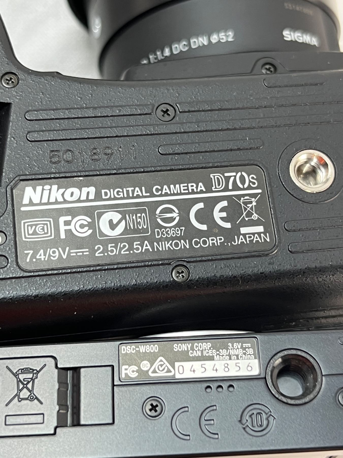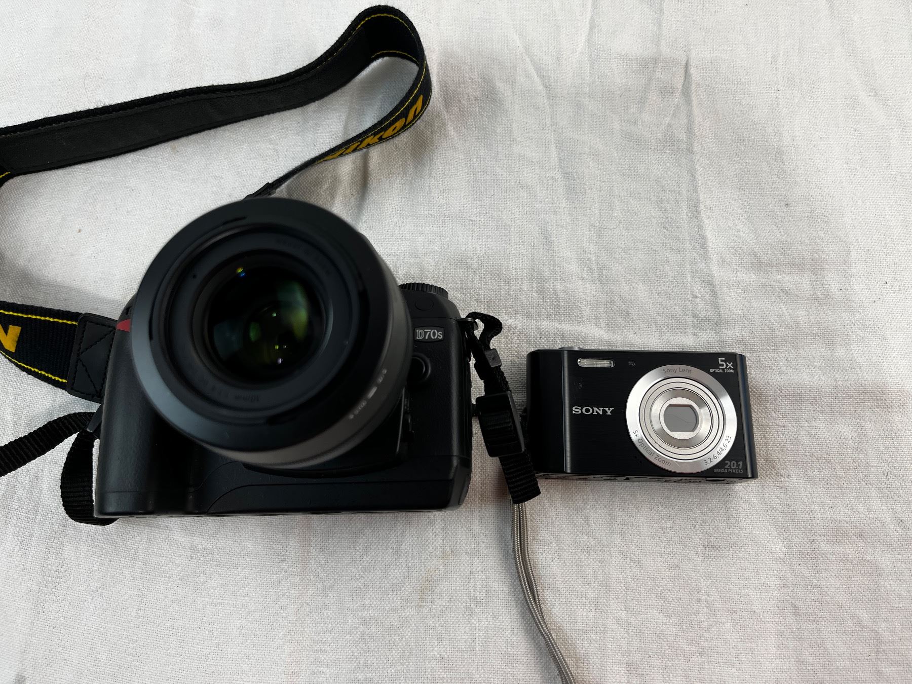 Including Sony Cybershot DSC-W800 (unknown working conditon) Nikon D70S (works) with Sigma 30mm 1 : 1.4 DC DN Lens, charger