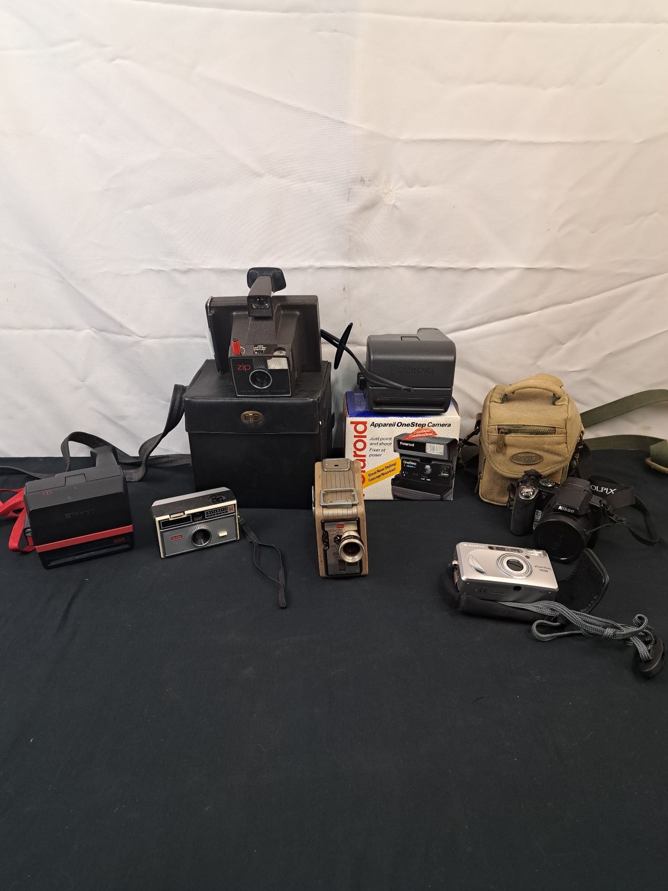 Includes, Polaroid One Step Camera, Nikon CoolPix, Kodak Instamatic 104, Kodak 8mm Brownie Movie Camera, Fijifilm Zoom Date 1000, etc.