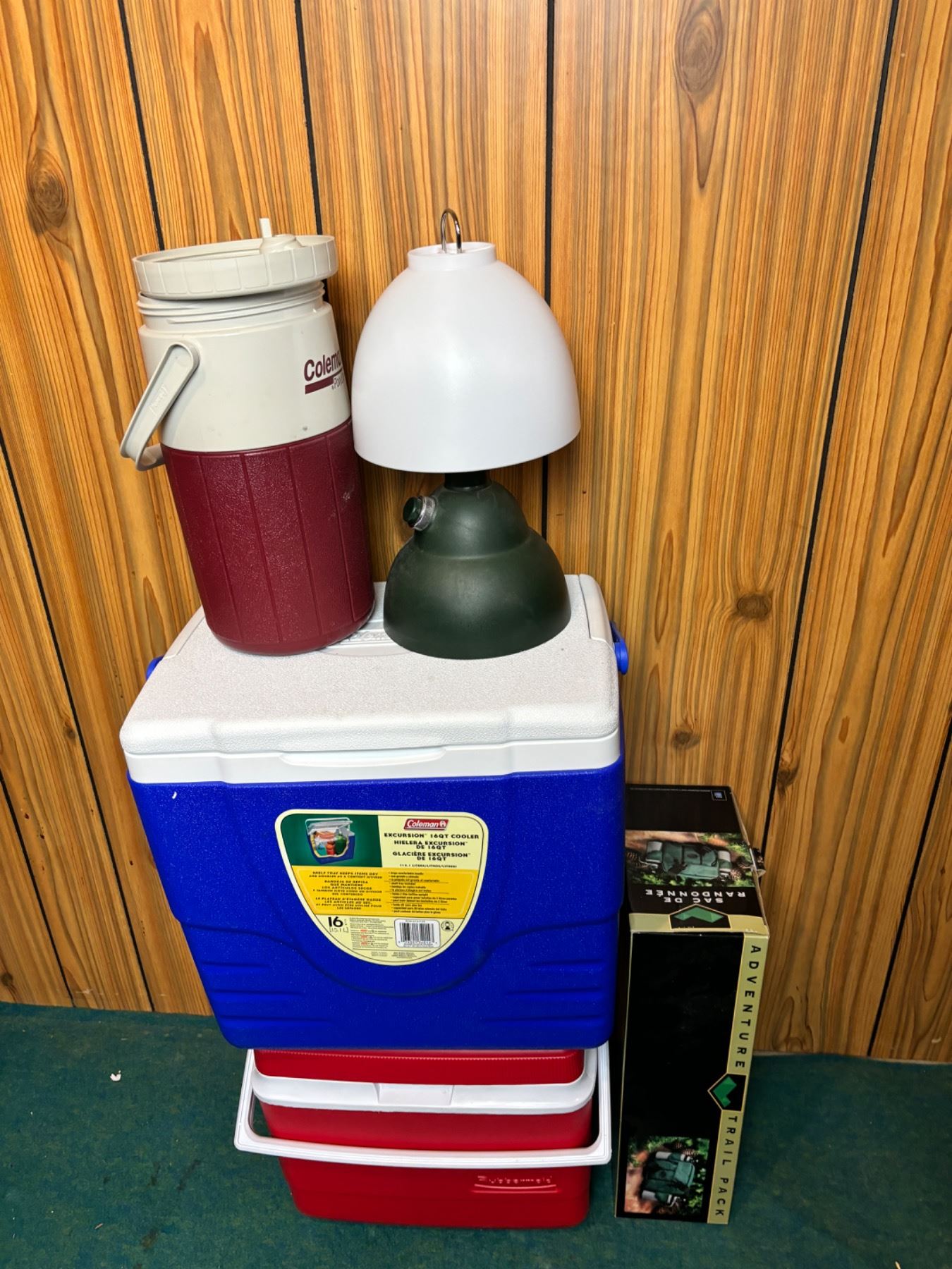 Includes, Rubbermaid & Coleman Cooler, Lantern (not tested), Etc.
