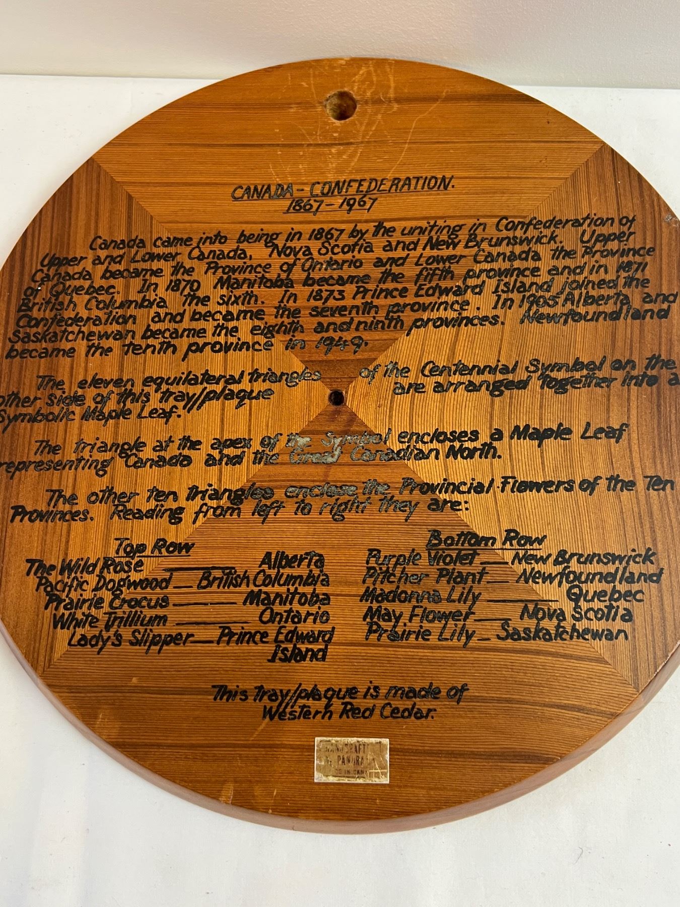 Includes wood Canada - Confederation tray/plaque has scuffs 12" diameter