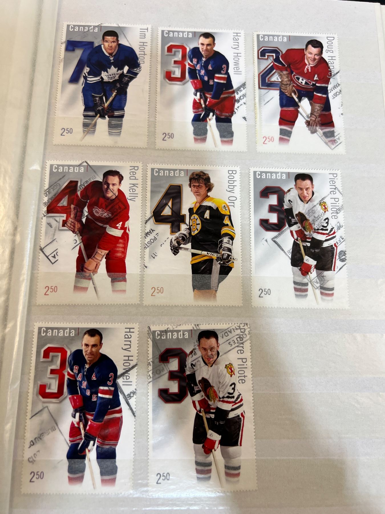 All Canadian Stamps, select pages of hockey cards, 2 books, years vary in addition to quality/wear - Not all pages filled in