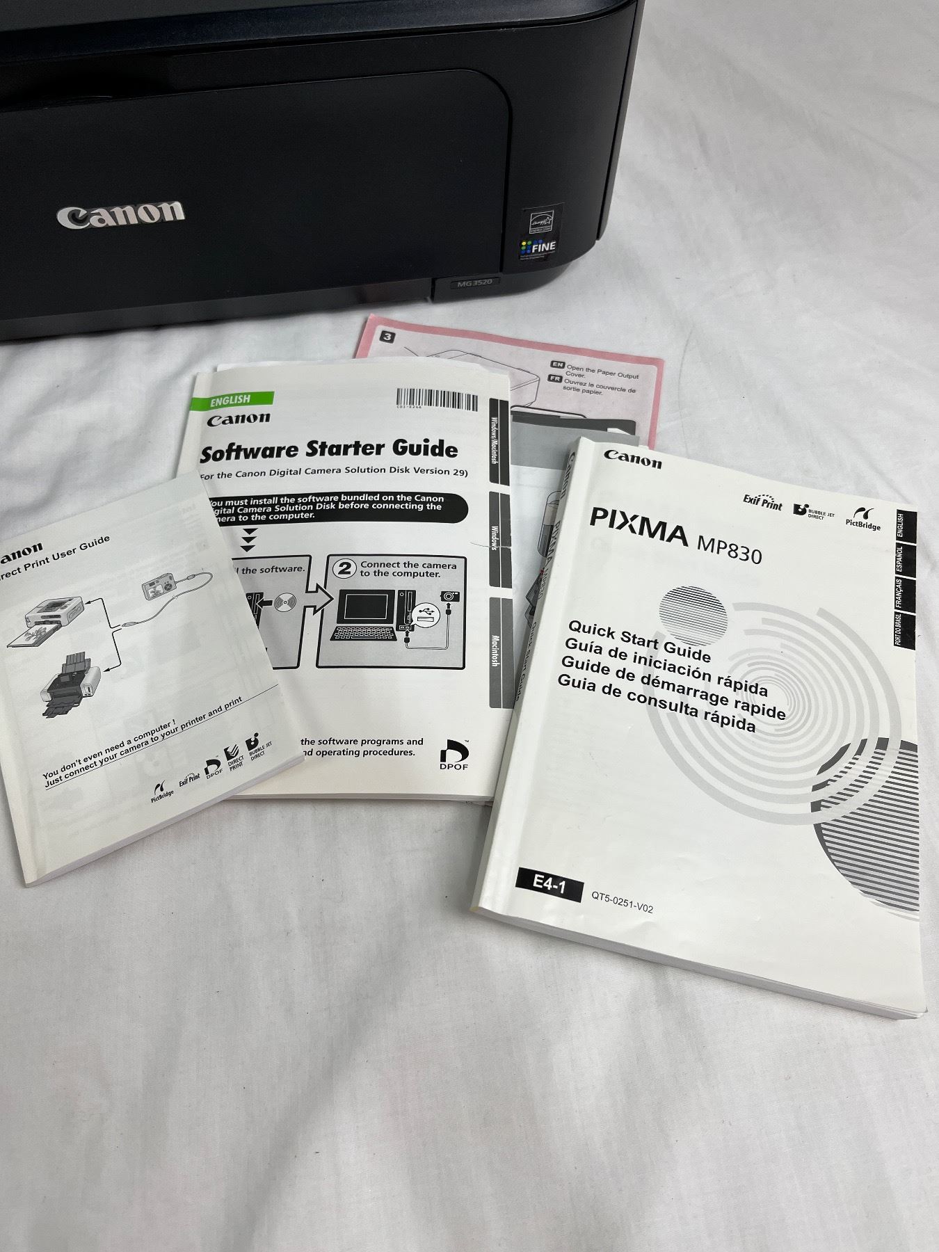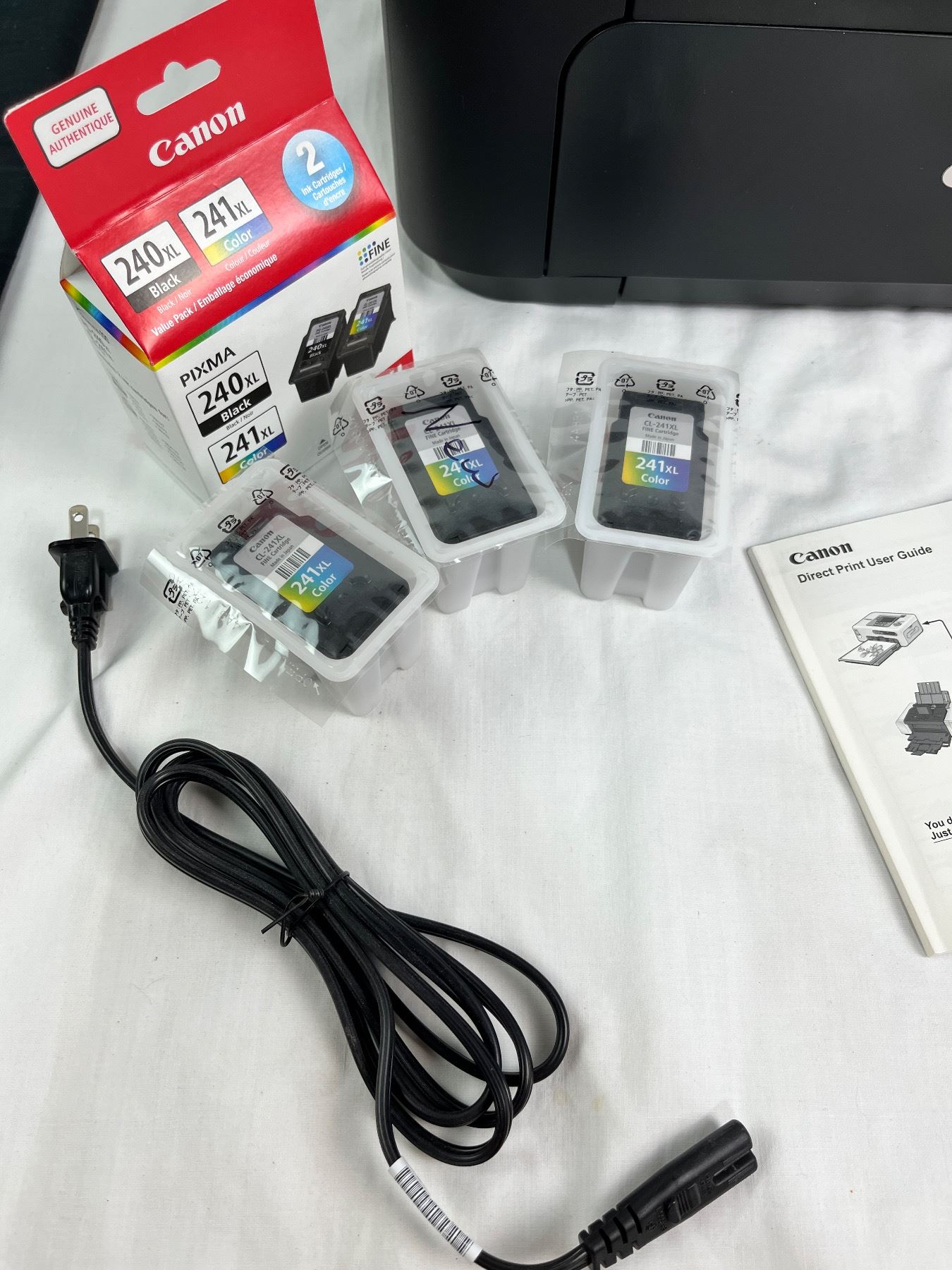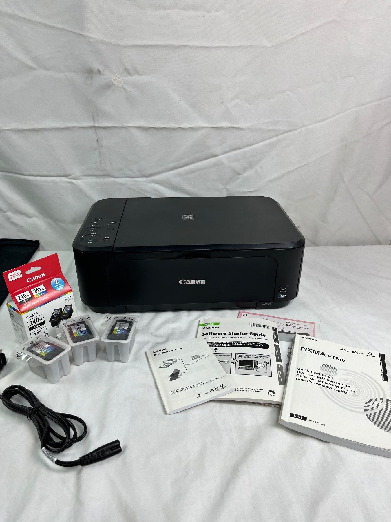 Canon Pixma MP830 Printer, turns on, includes 4 241XL colour and 1 240XL black ink cartridges.