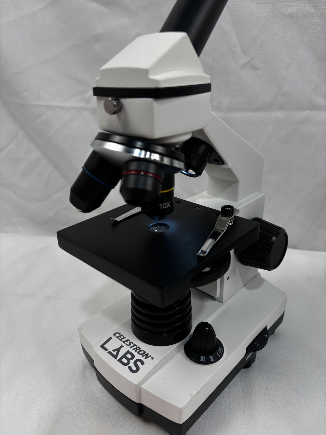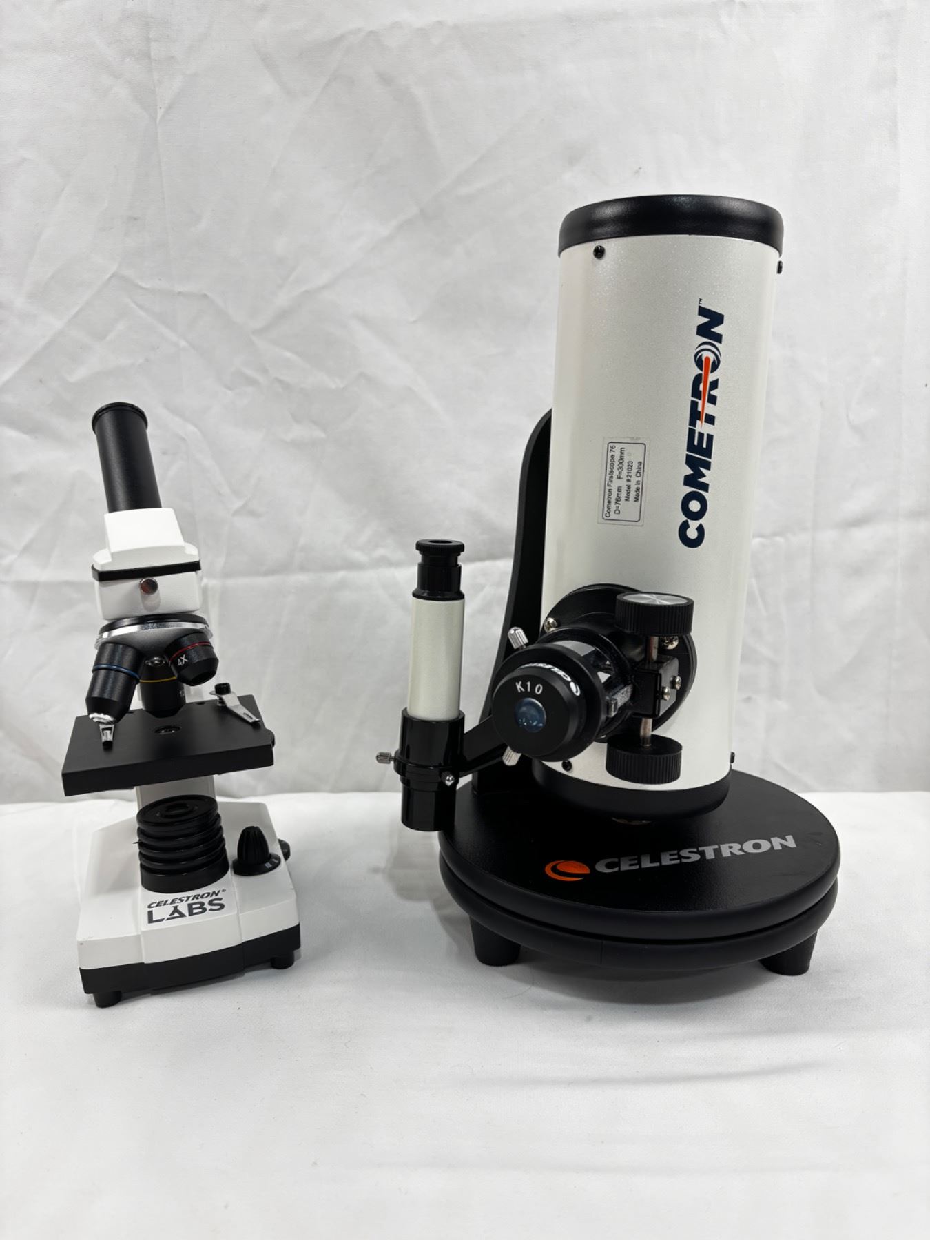 Large unit is approximately 13.5" tall. Missing power cord from small microscope.