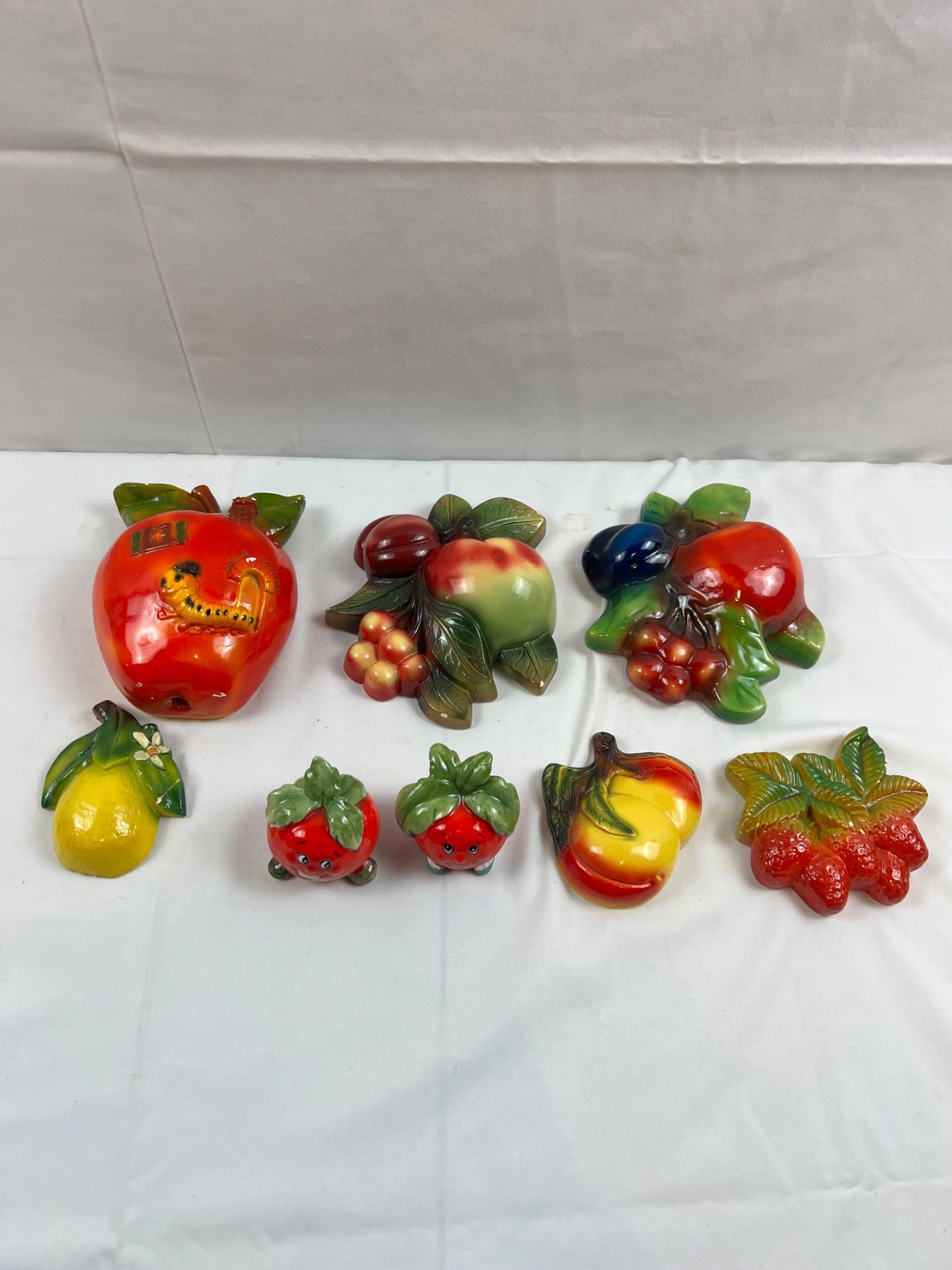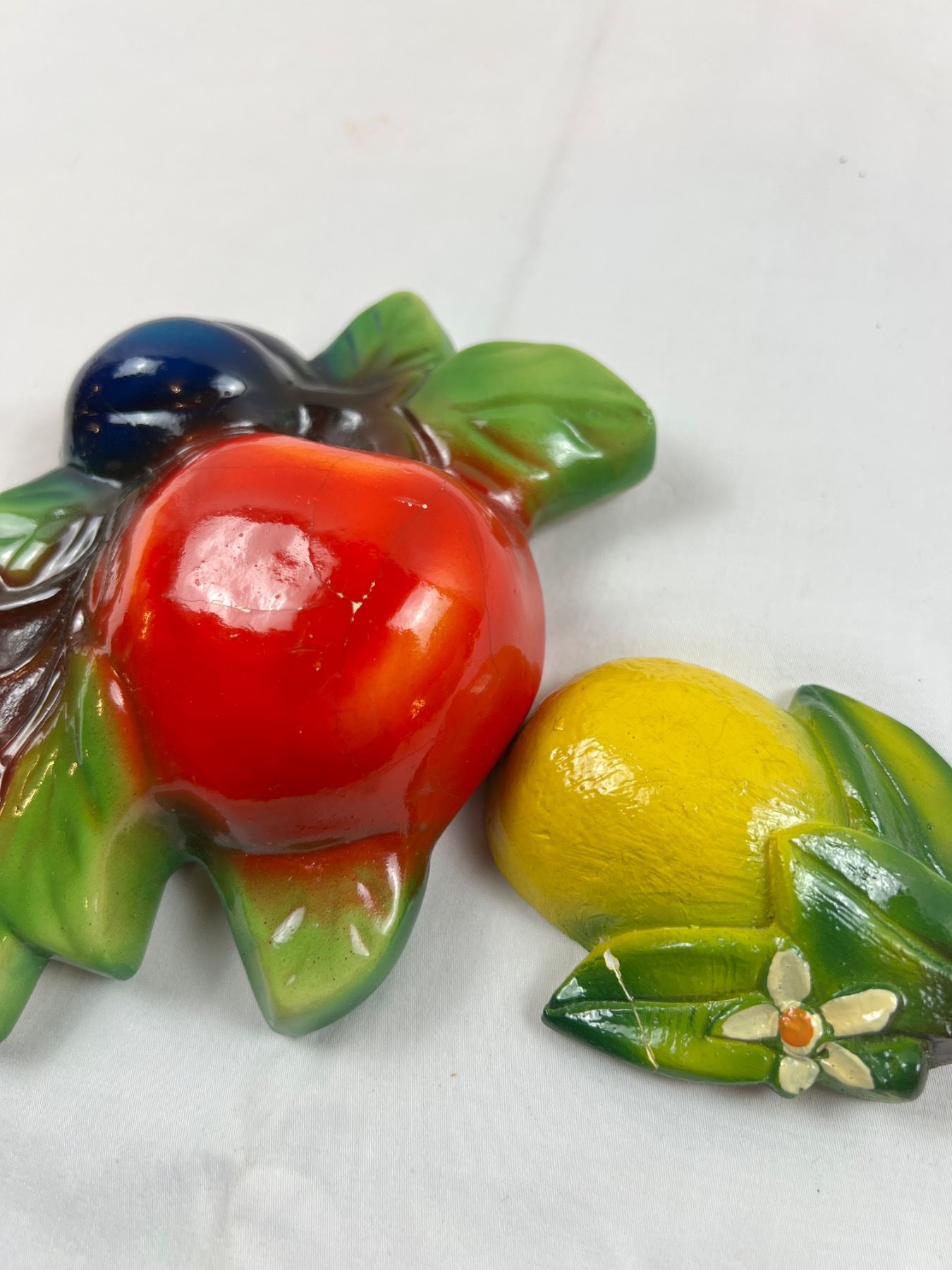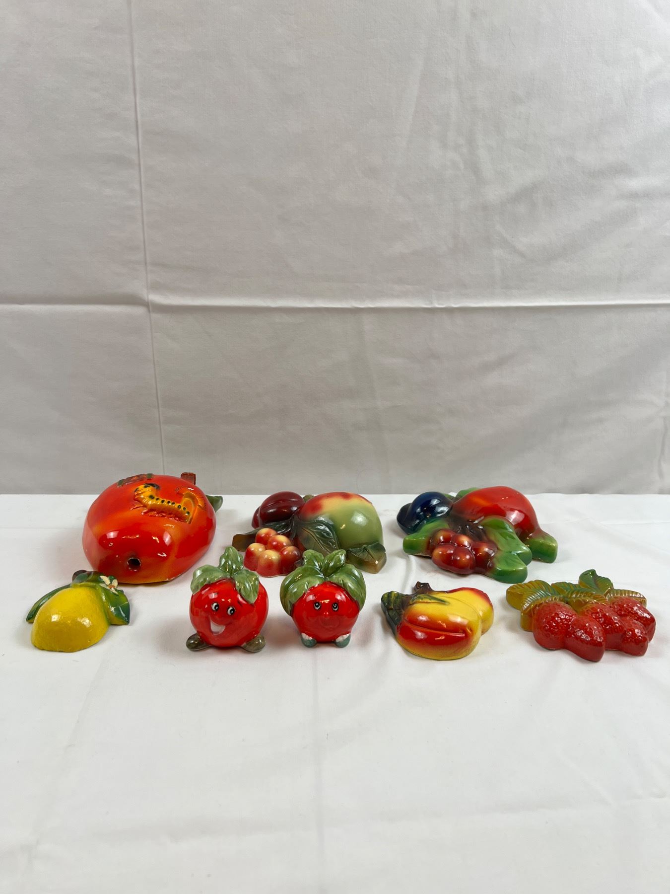 Includes tomato salt and pepper shaker. Damage to lemon and one of the bundles of fruit.