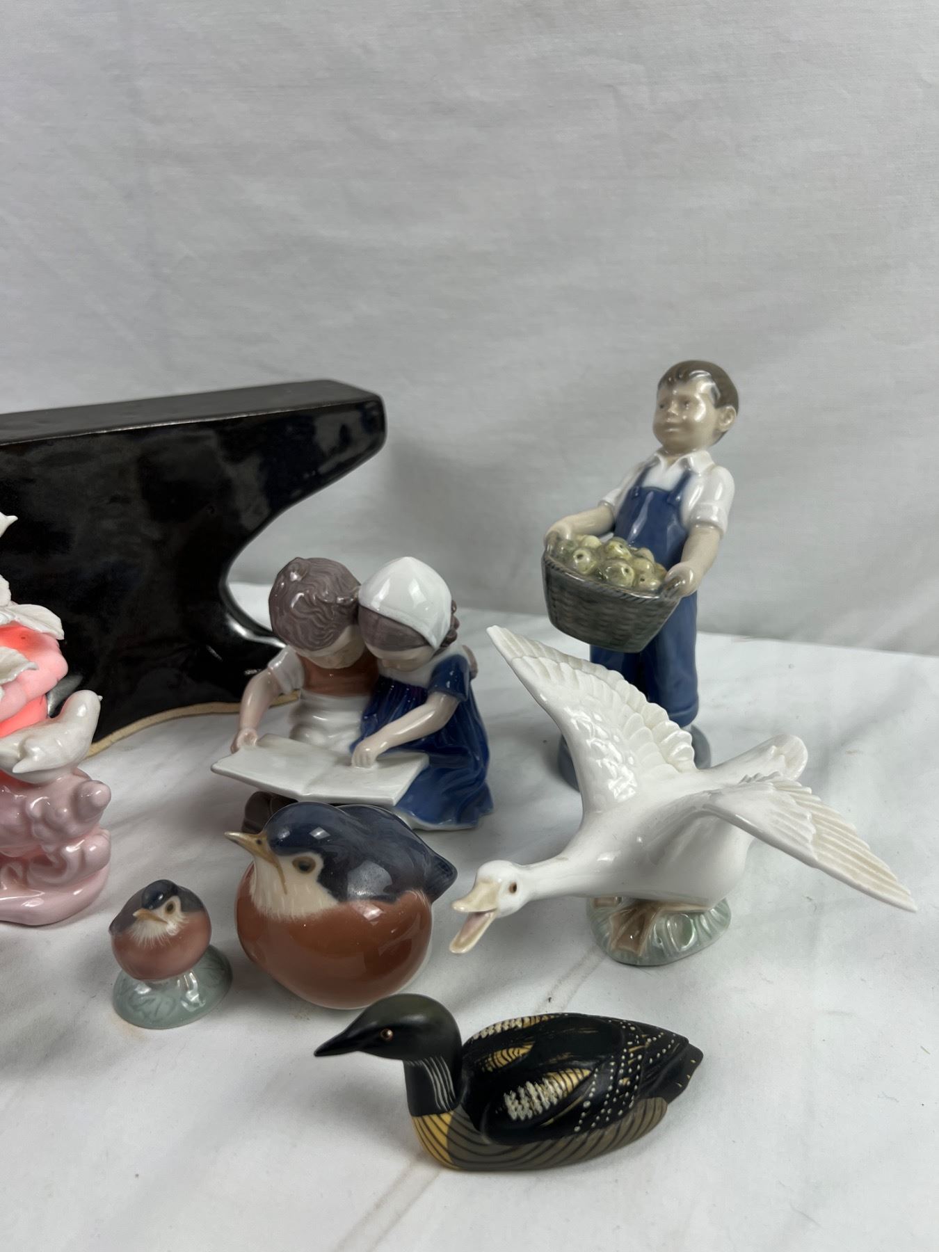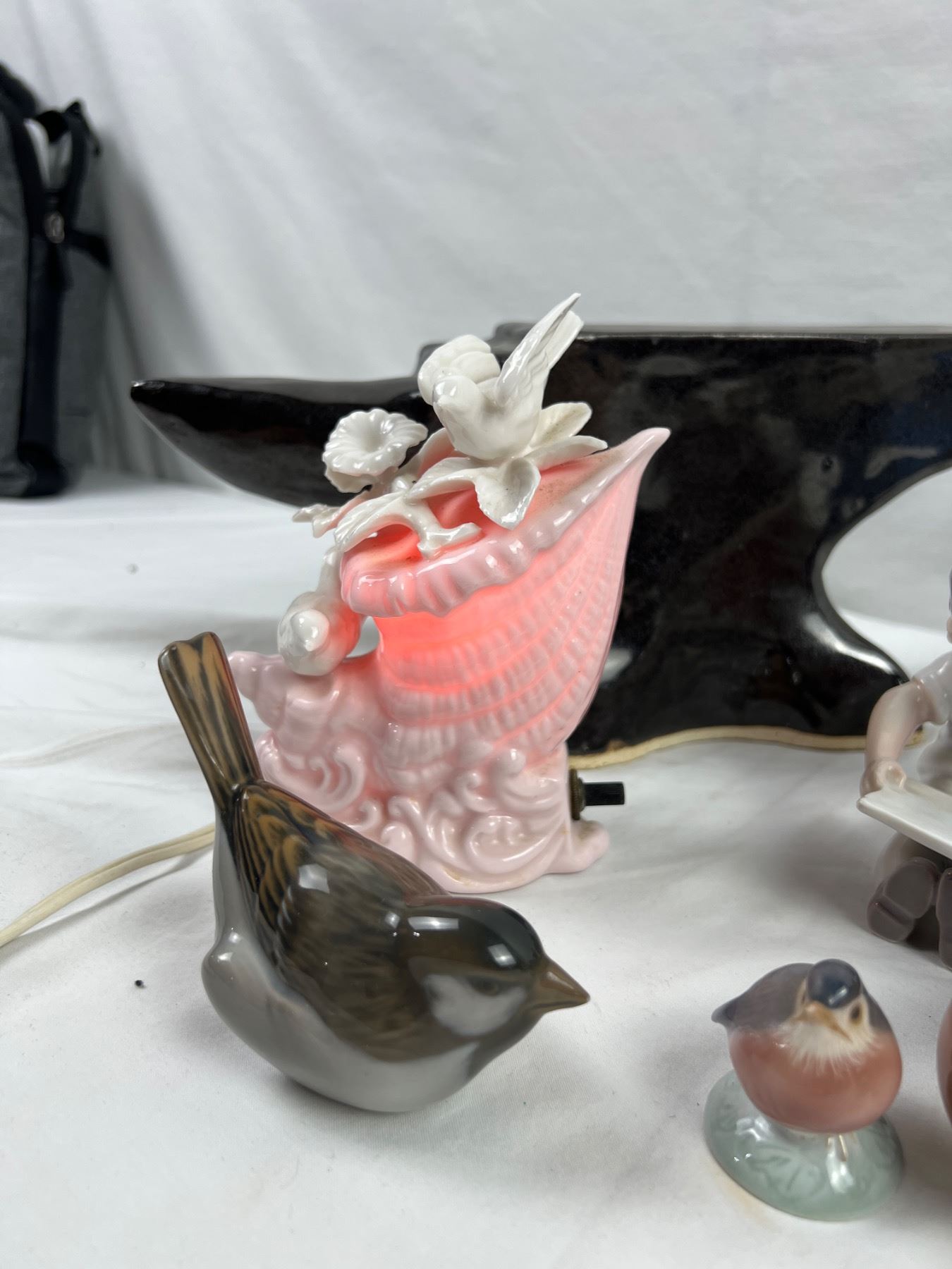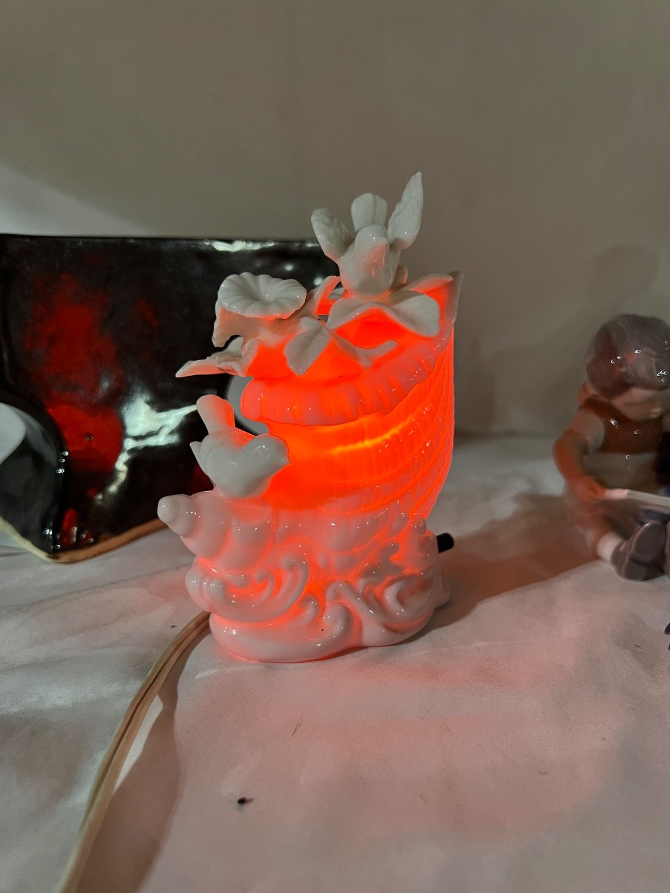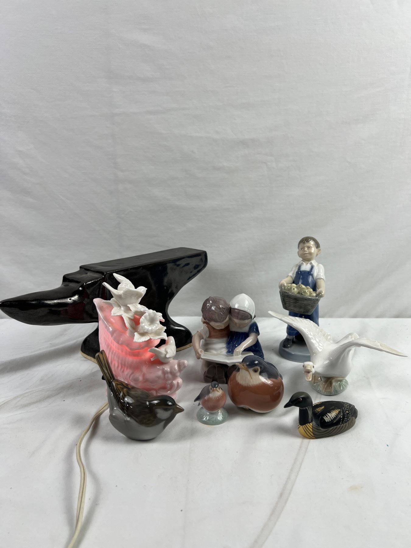 Anvil measures 12" in length. Nightlight powers on. Anvil is ceramic with glazing. Porcelain figurines are Royal Copenhagen.
