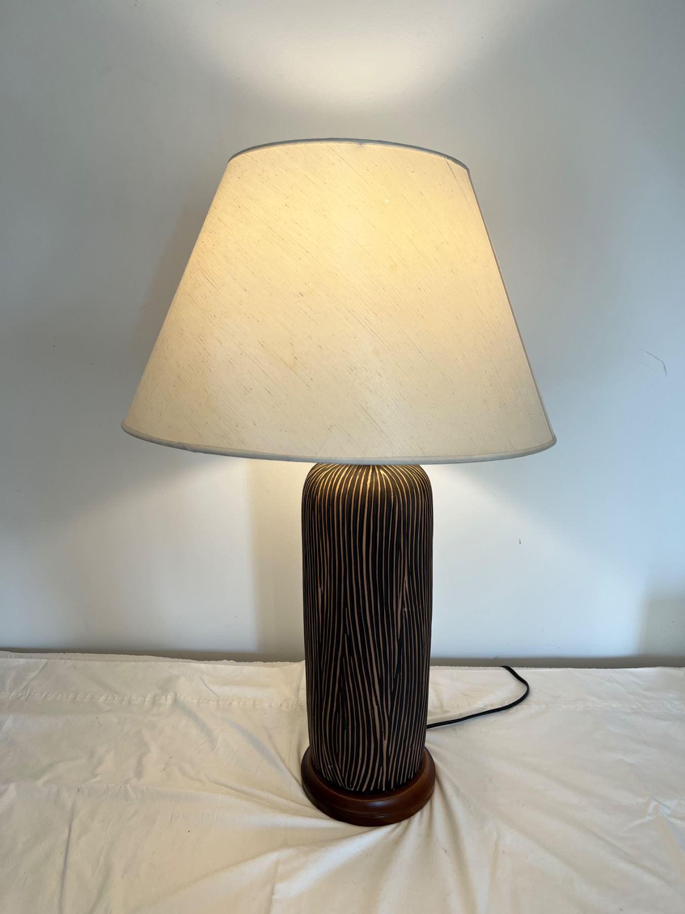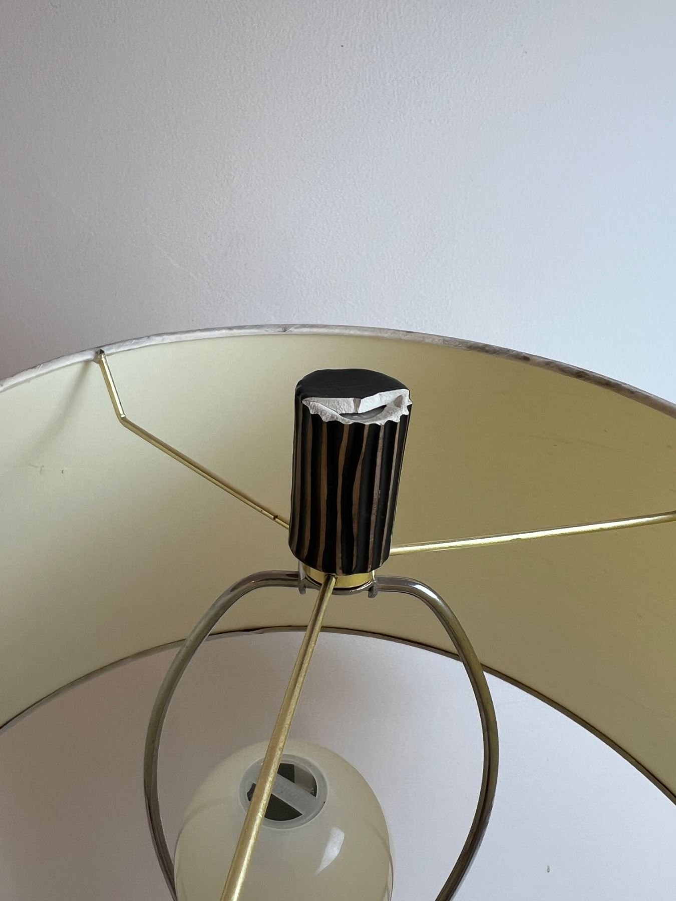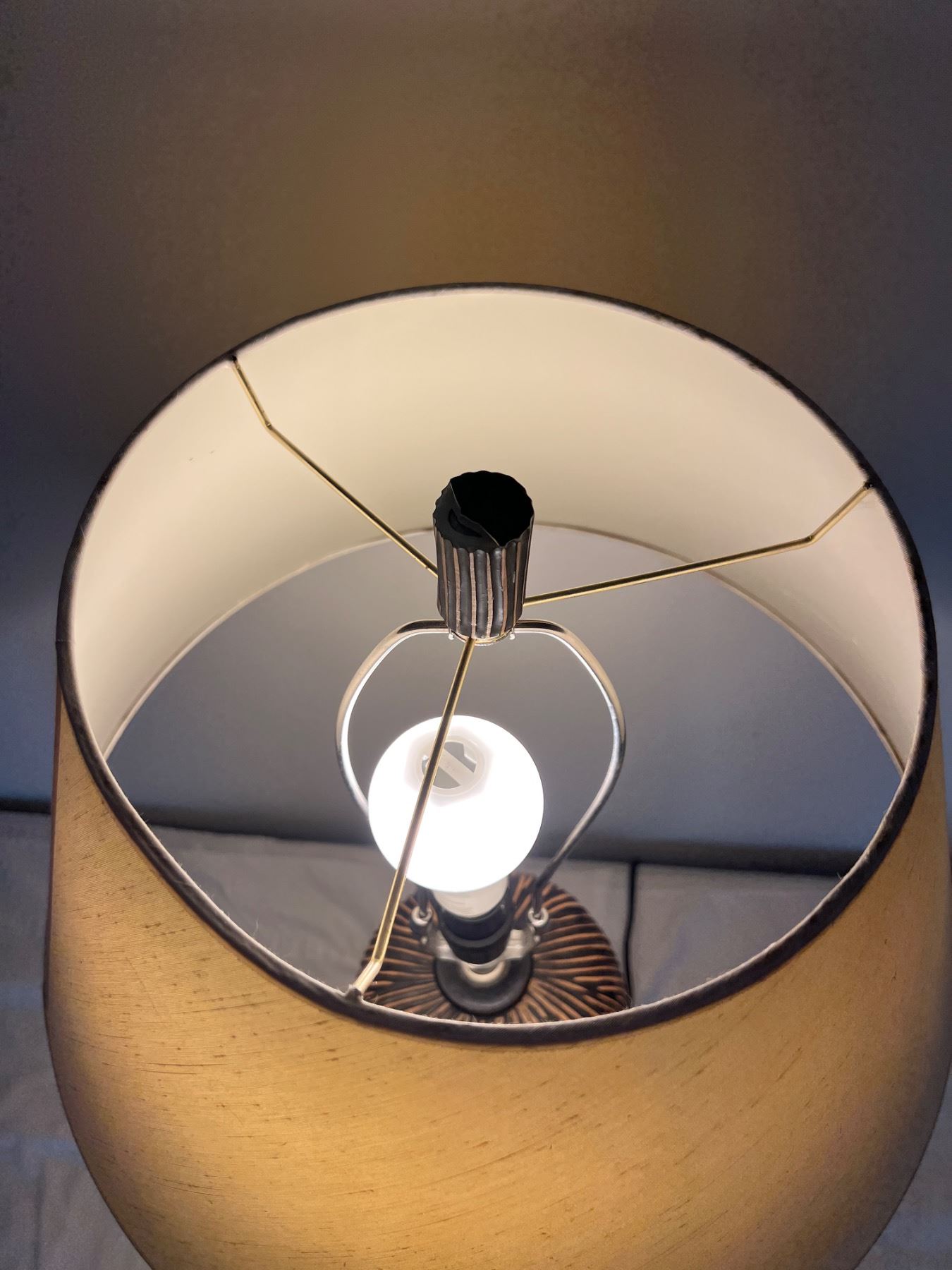 All 3 light levels power on and work. Top screw for shade is damaged.