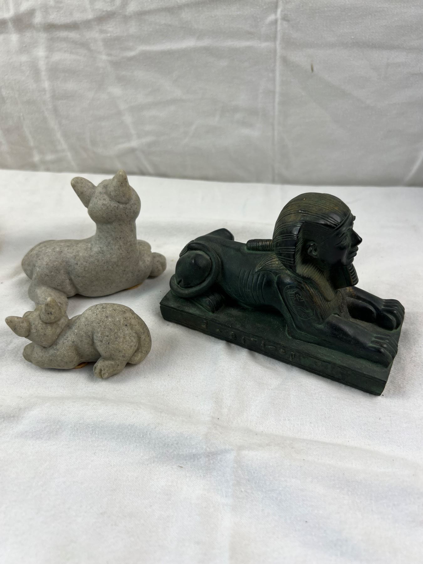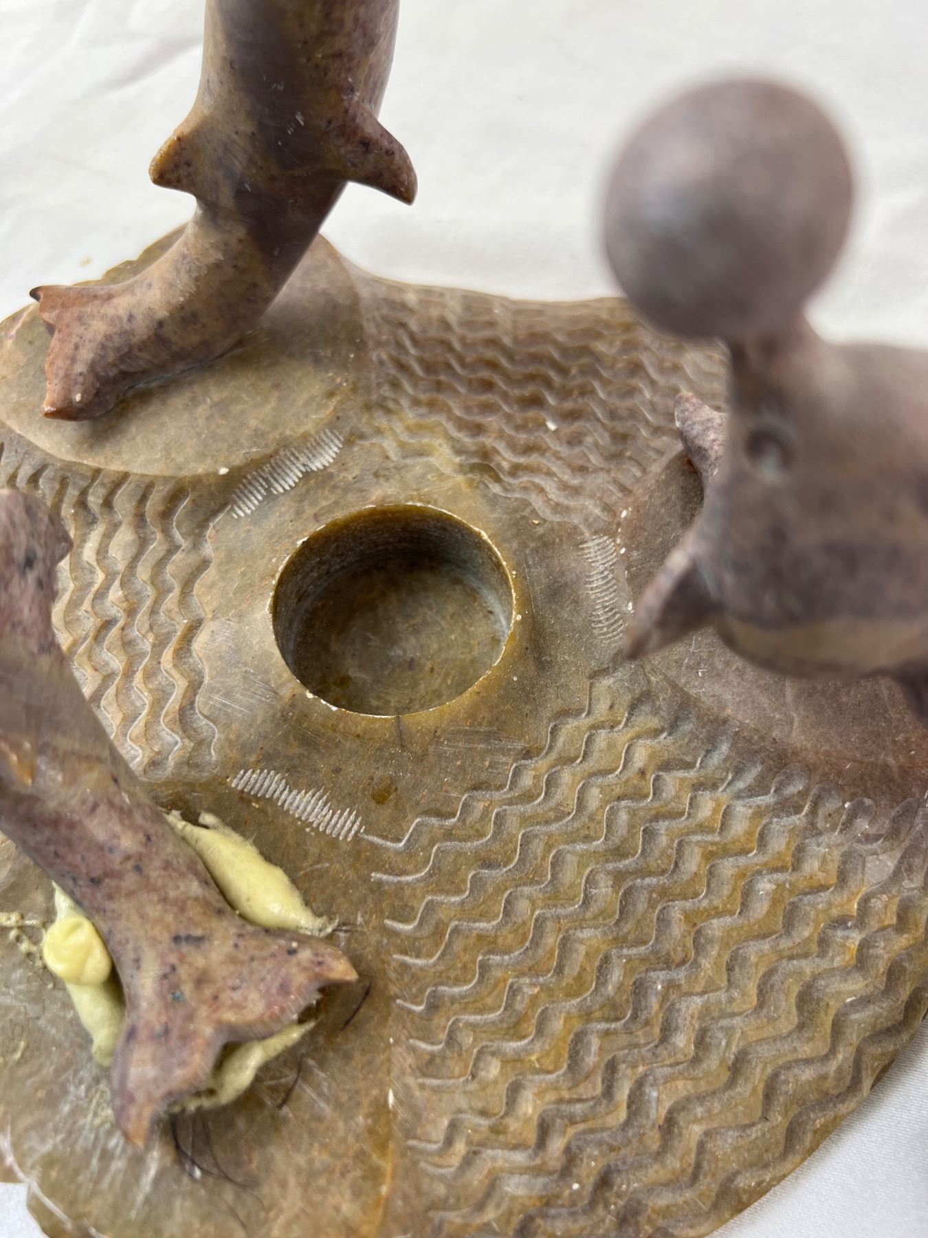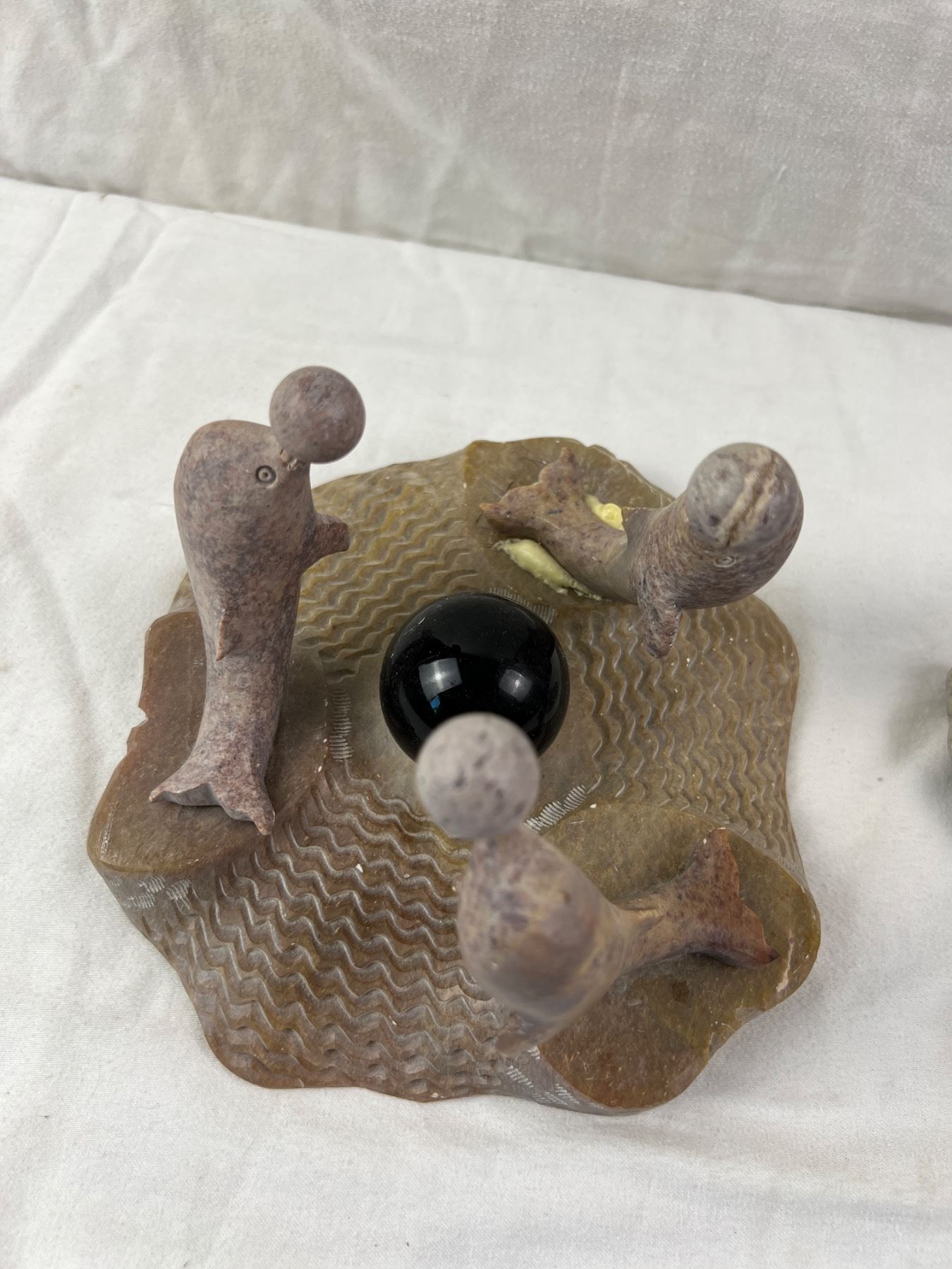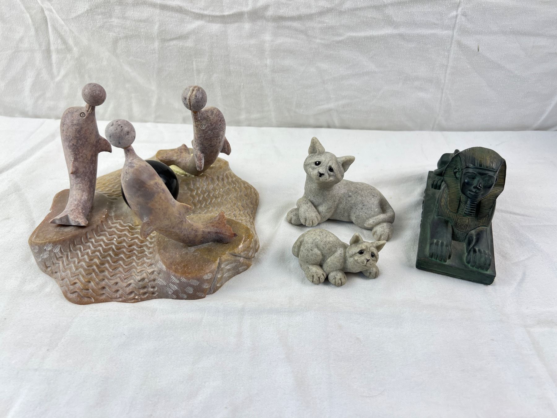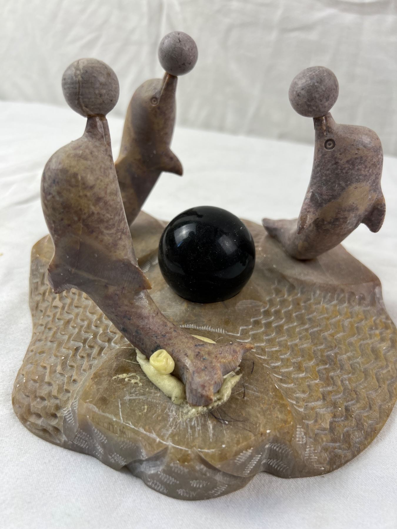 Includes a carved stone dolphin sculpture that is 8"W x 6"H (one dolphin has been re-glued on)