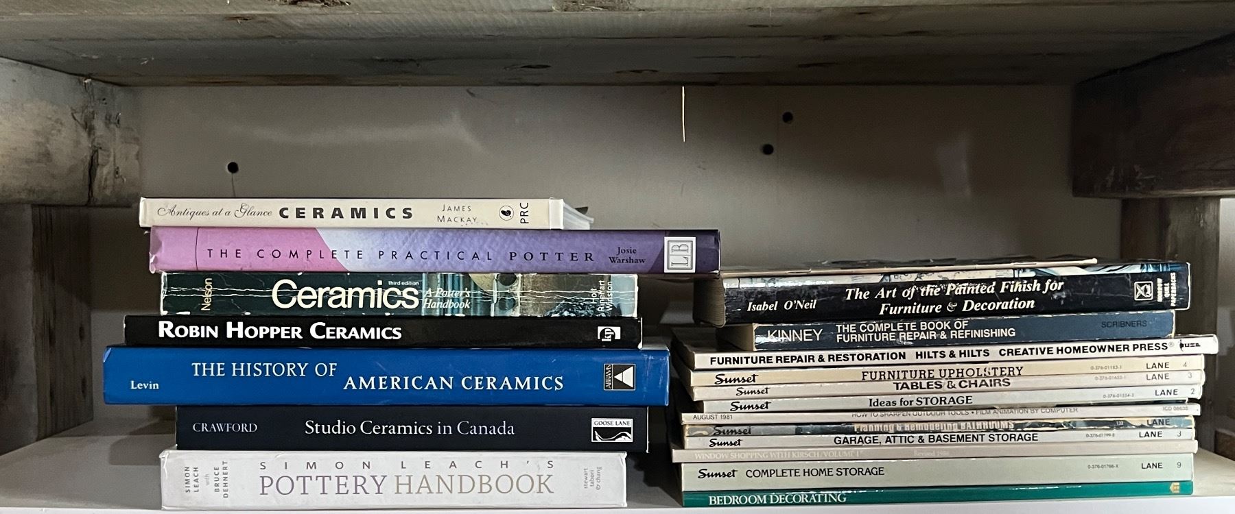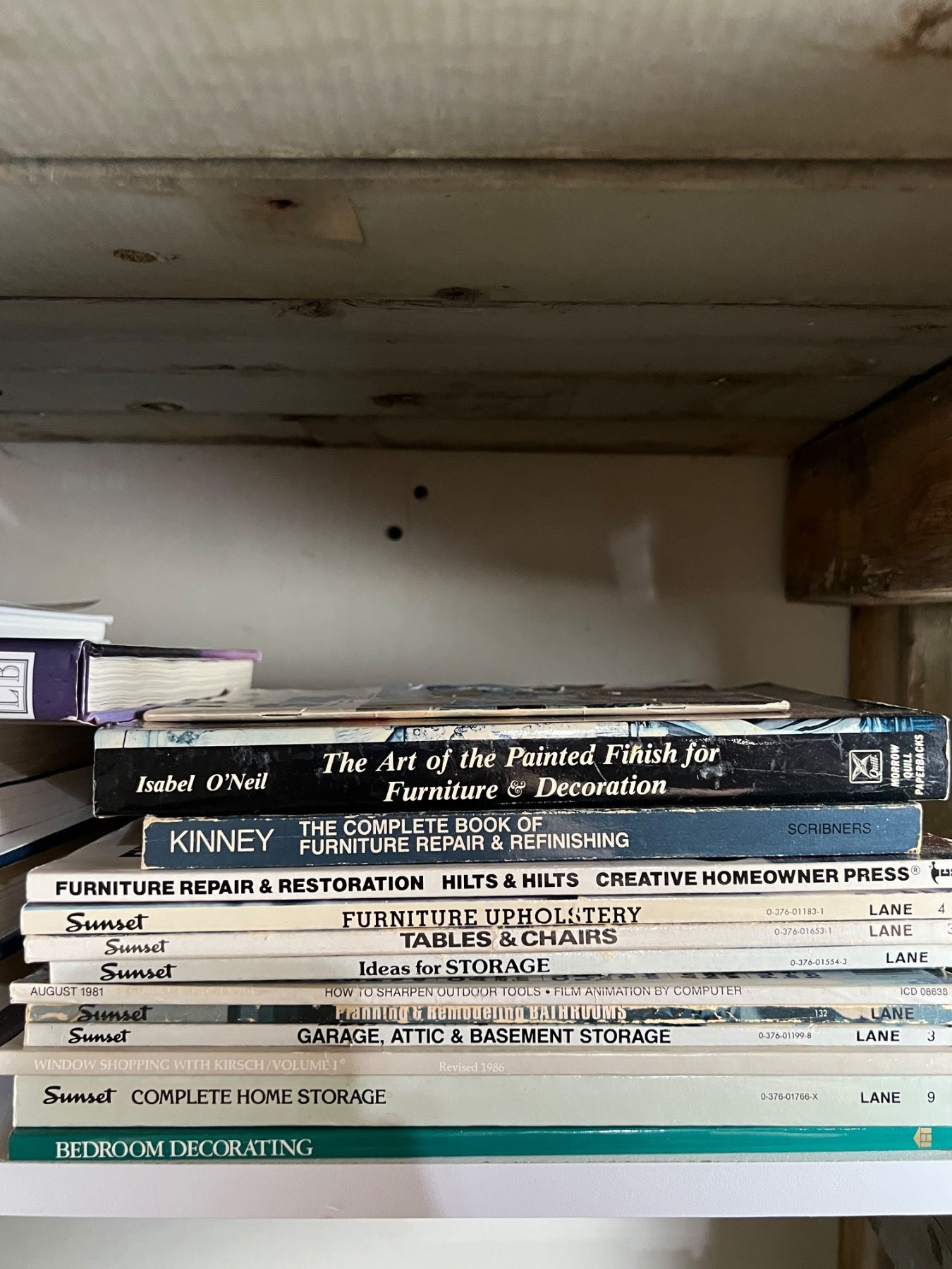 Includes variety of informational books including a Sunset catolaugoe on home hardware.