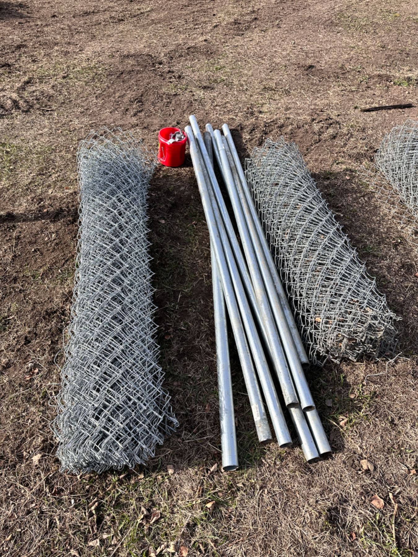 Includes chain link, 6' long poles, 2 gates that are 3' wide x 45" tall