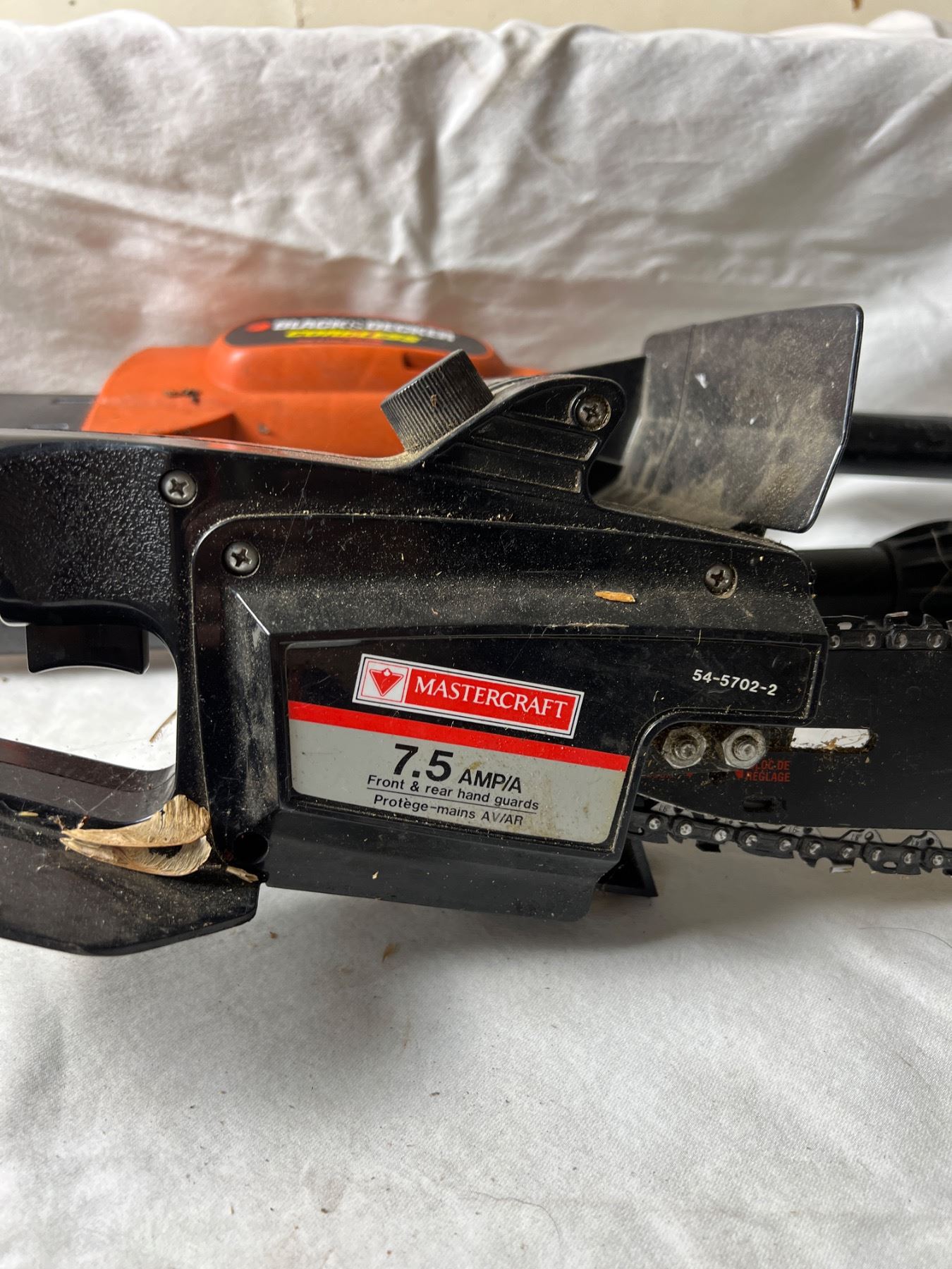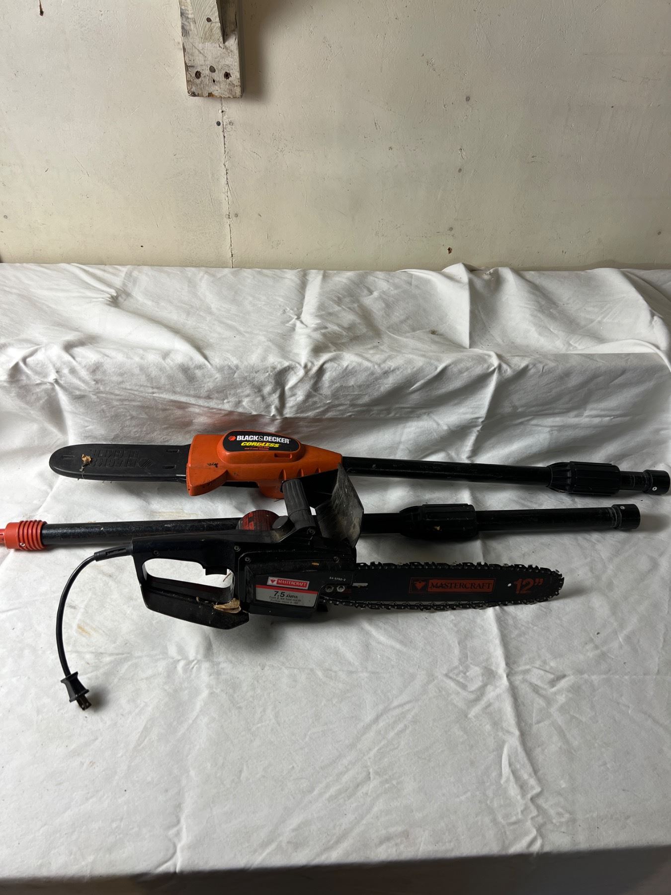 Unknown if pole saw works. Mastercraft saw fires up. Polesaw includes manual.