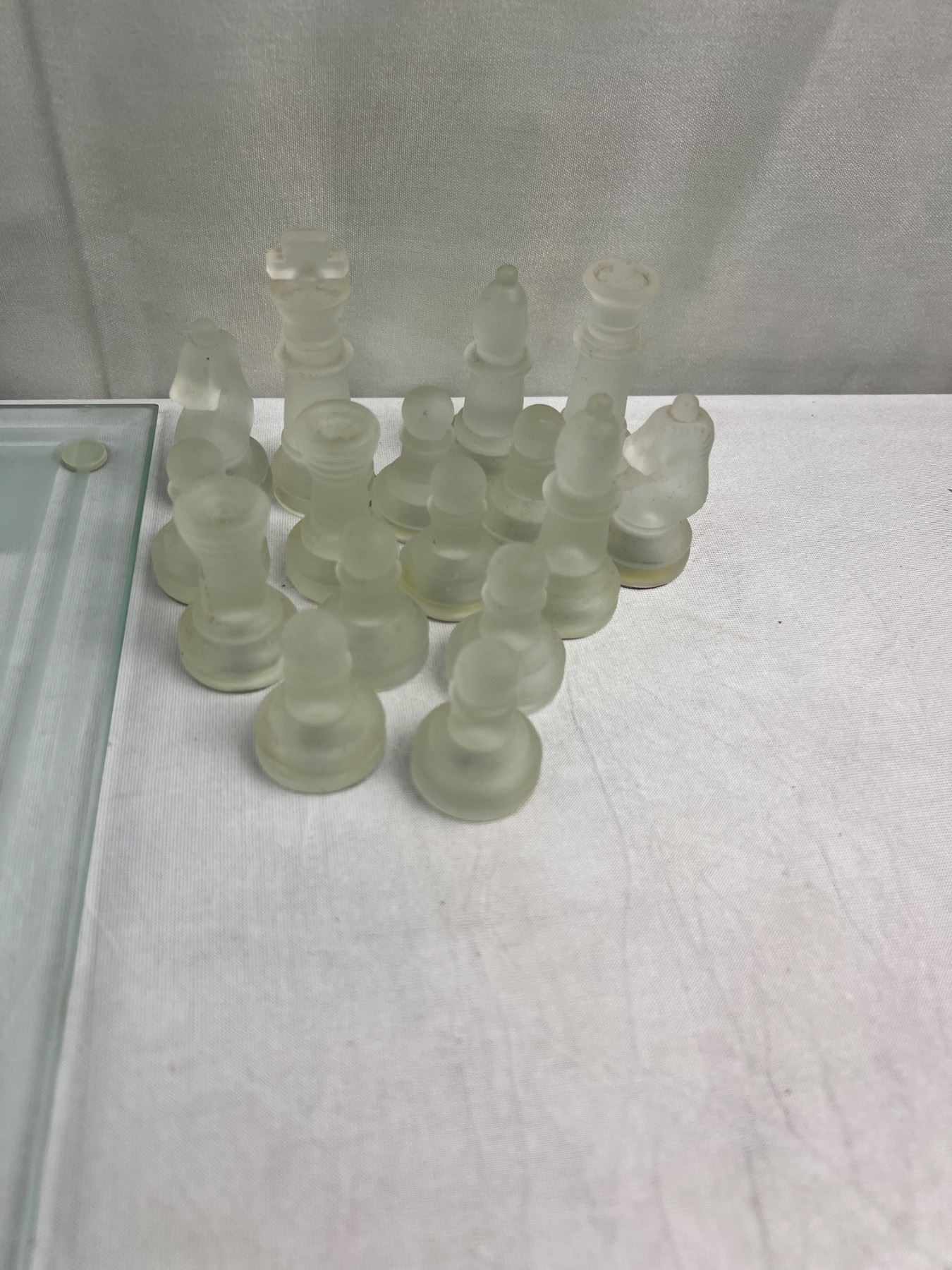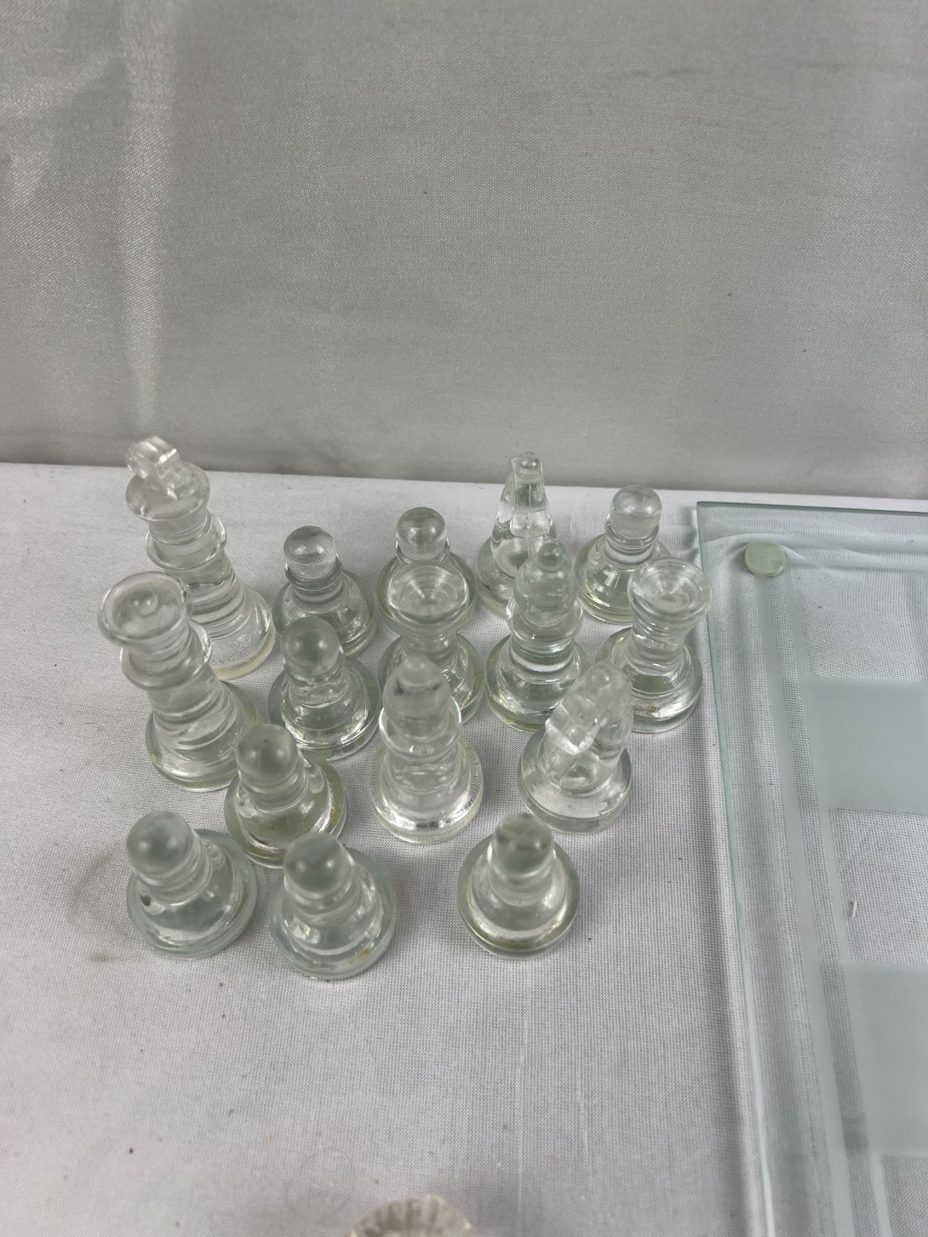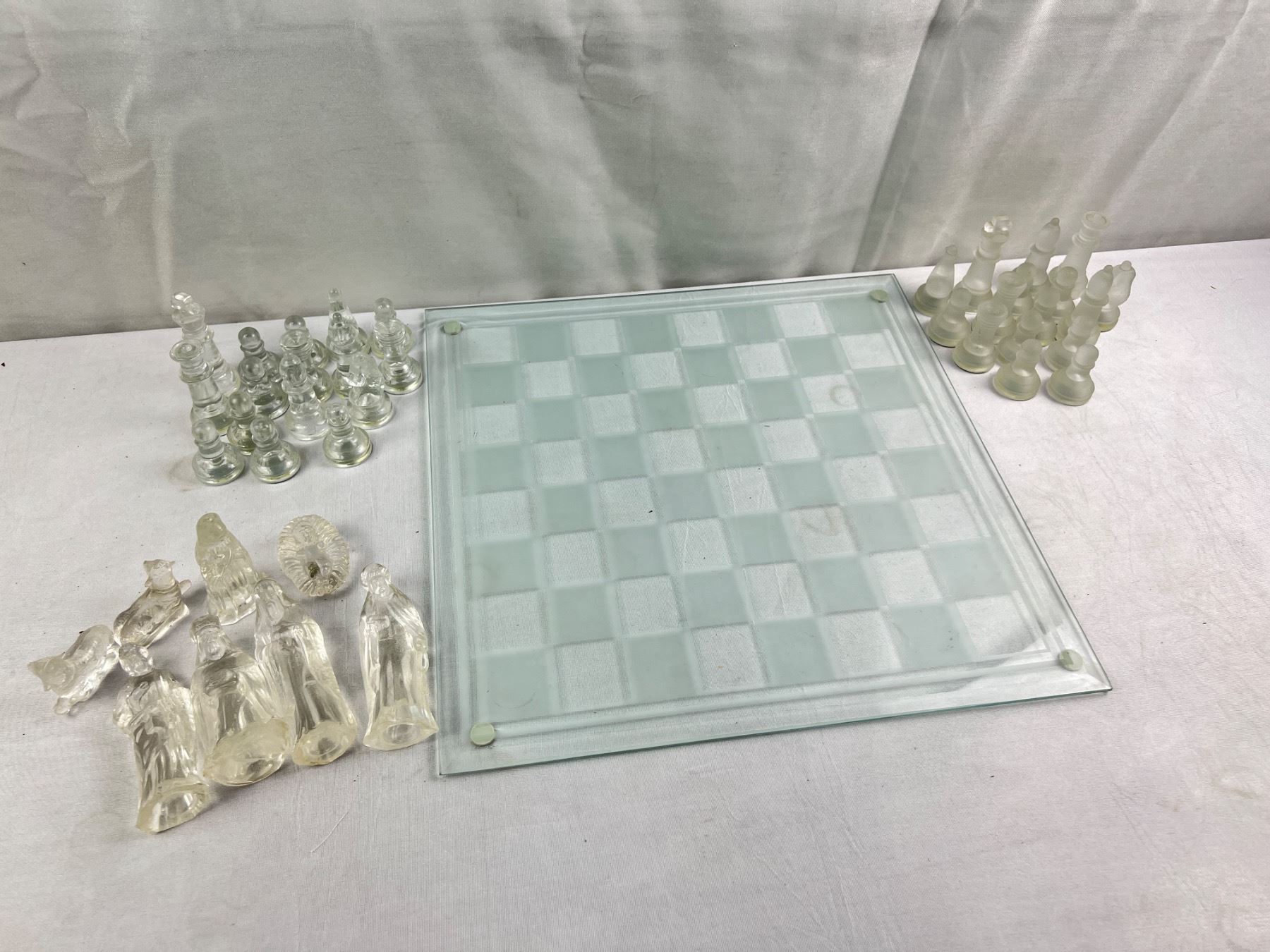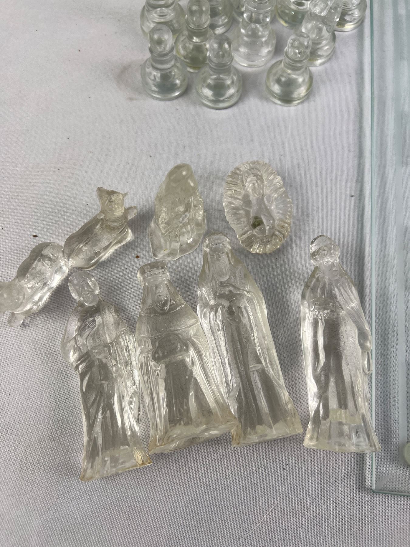 Glass Chess Set With Glass Board & Glass Nativity Set Aprox 4" Tall