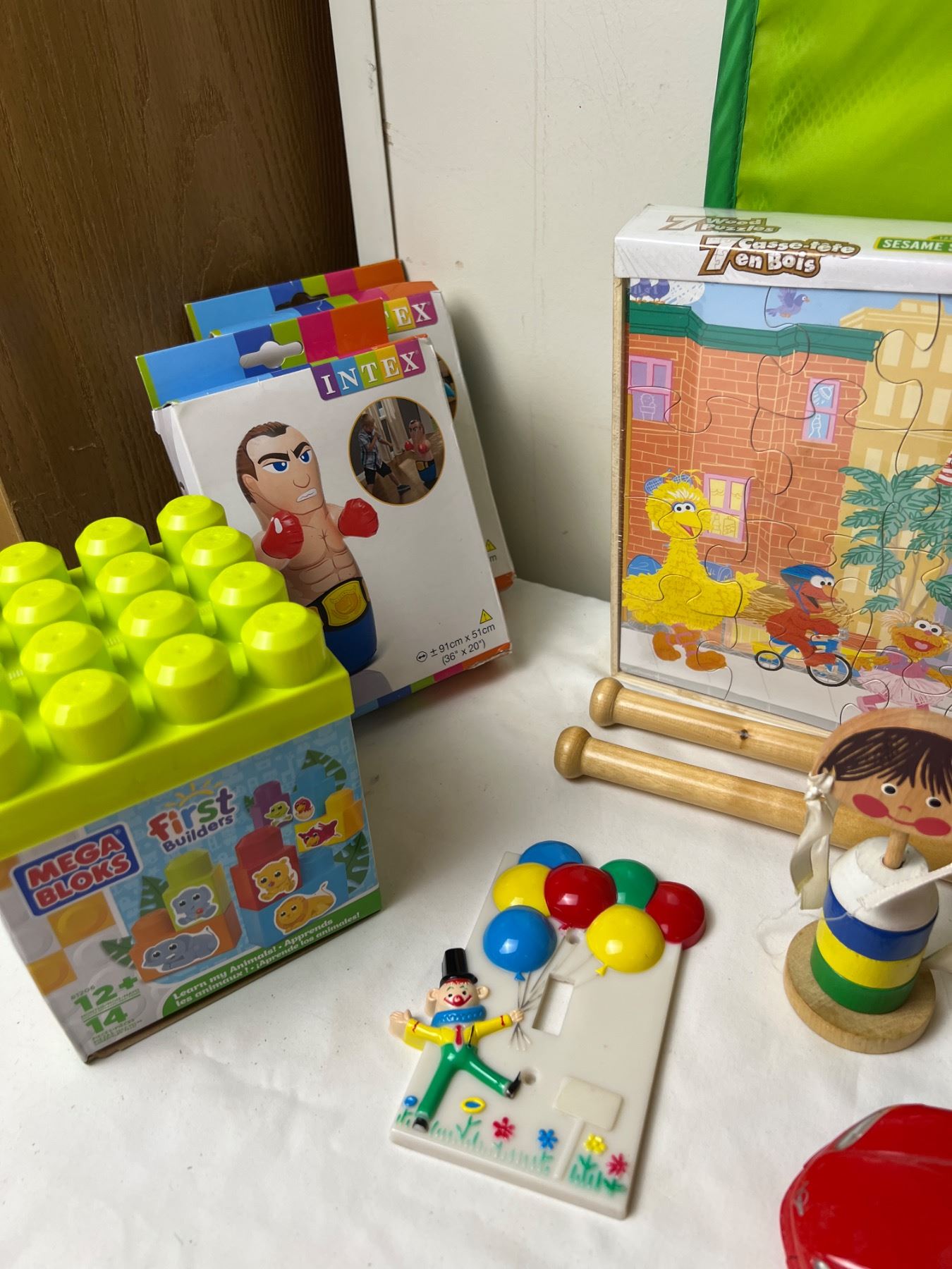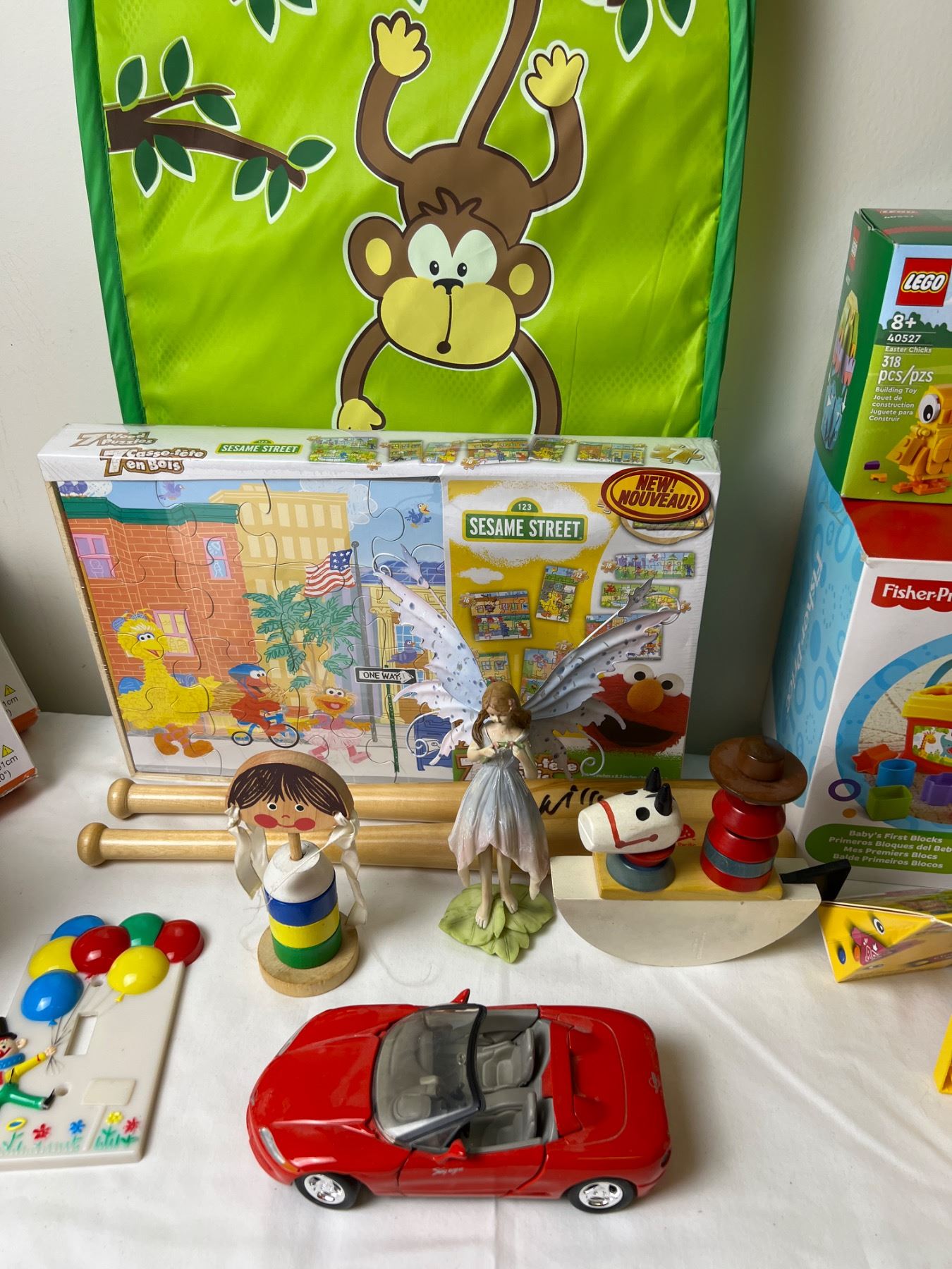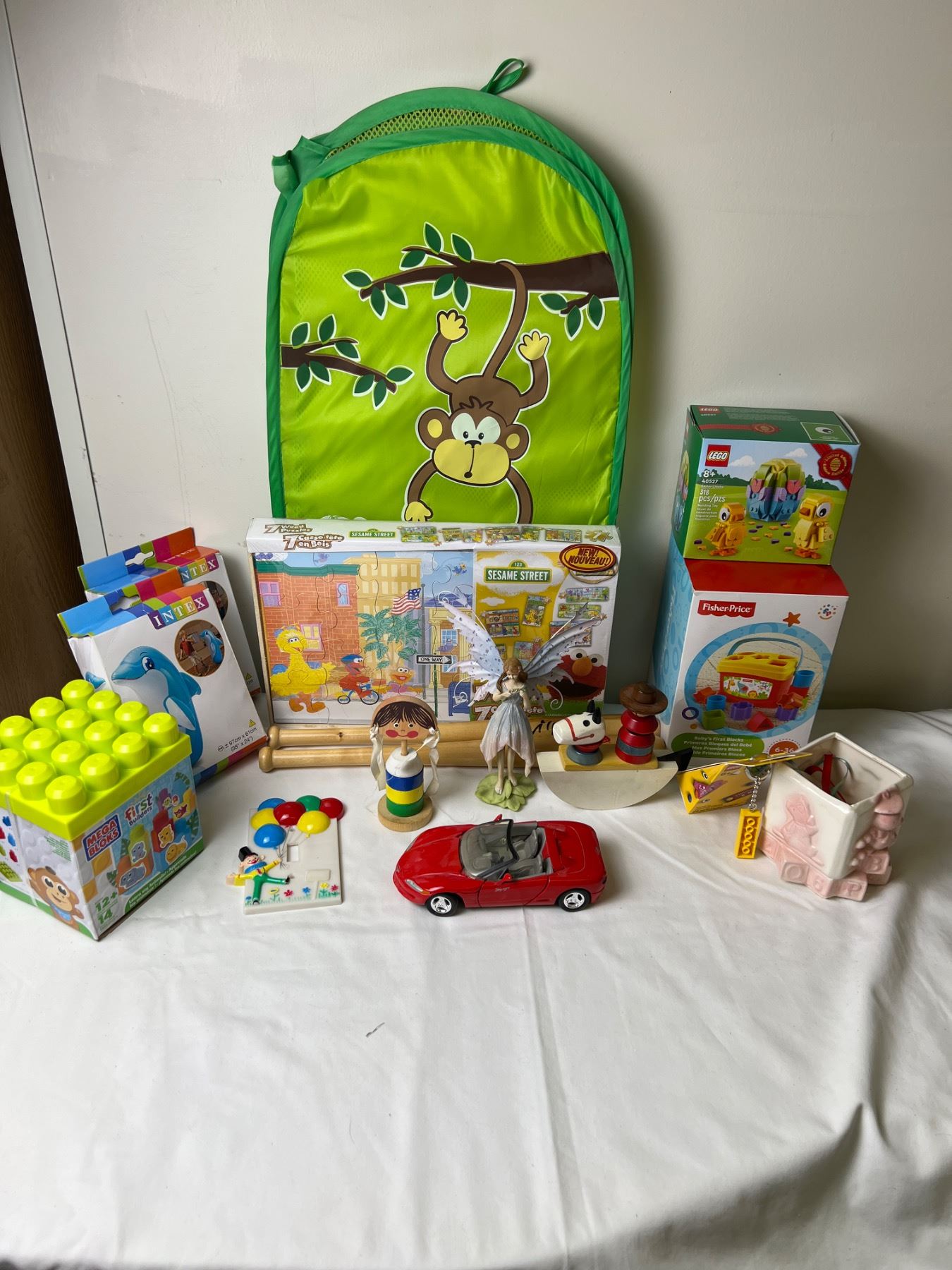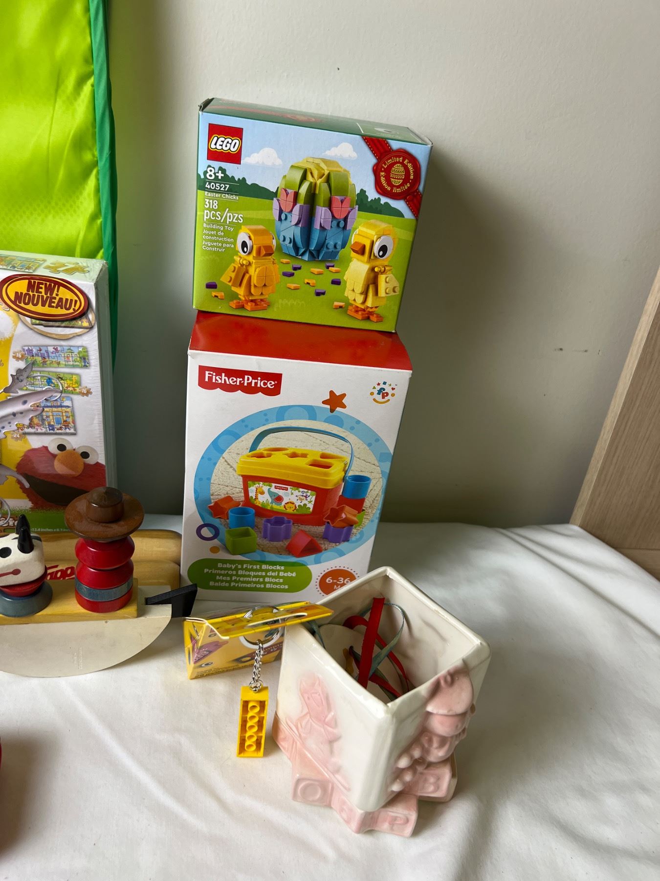 Includes Lego, Trappers miniature baseball bats, Sesame Street, and more