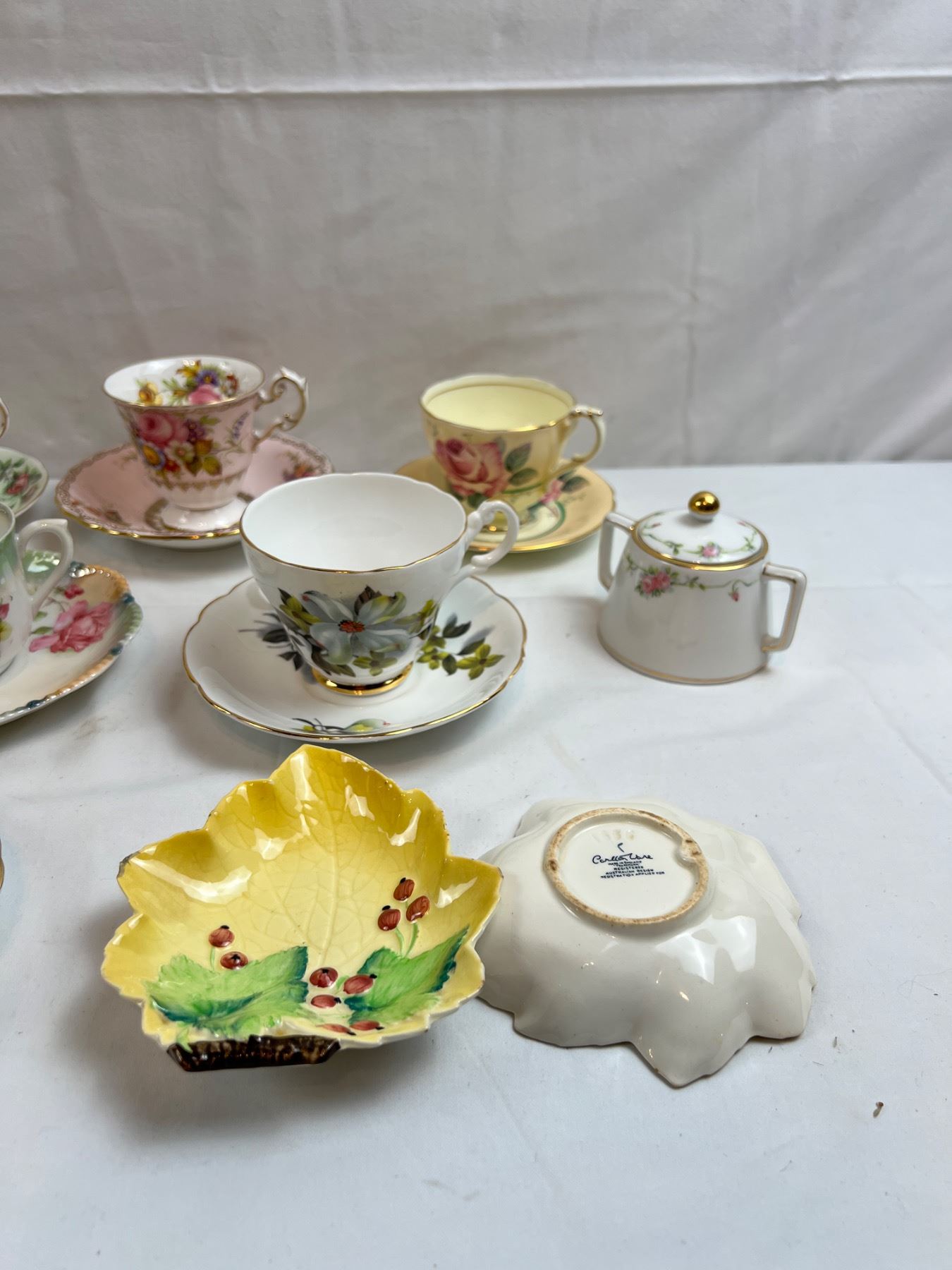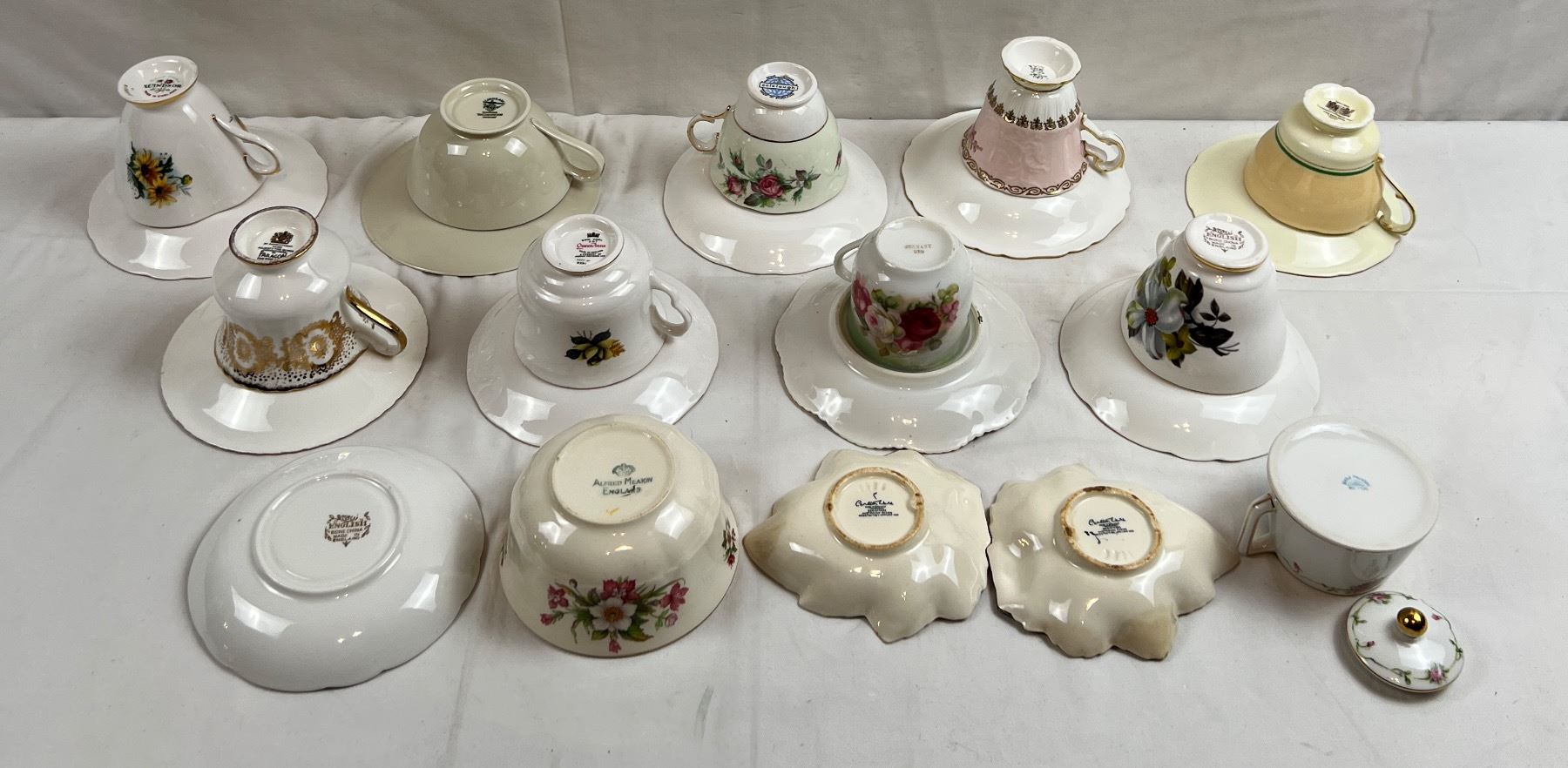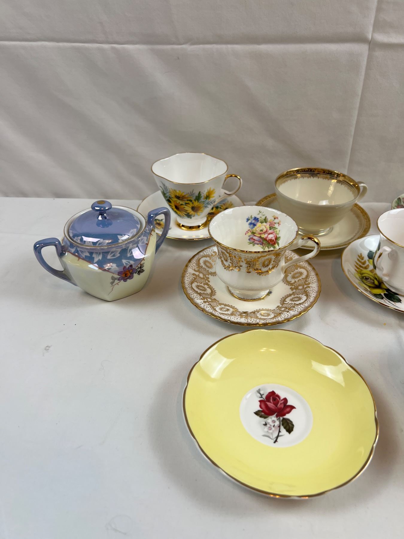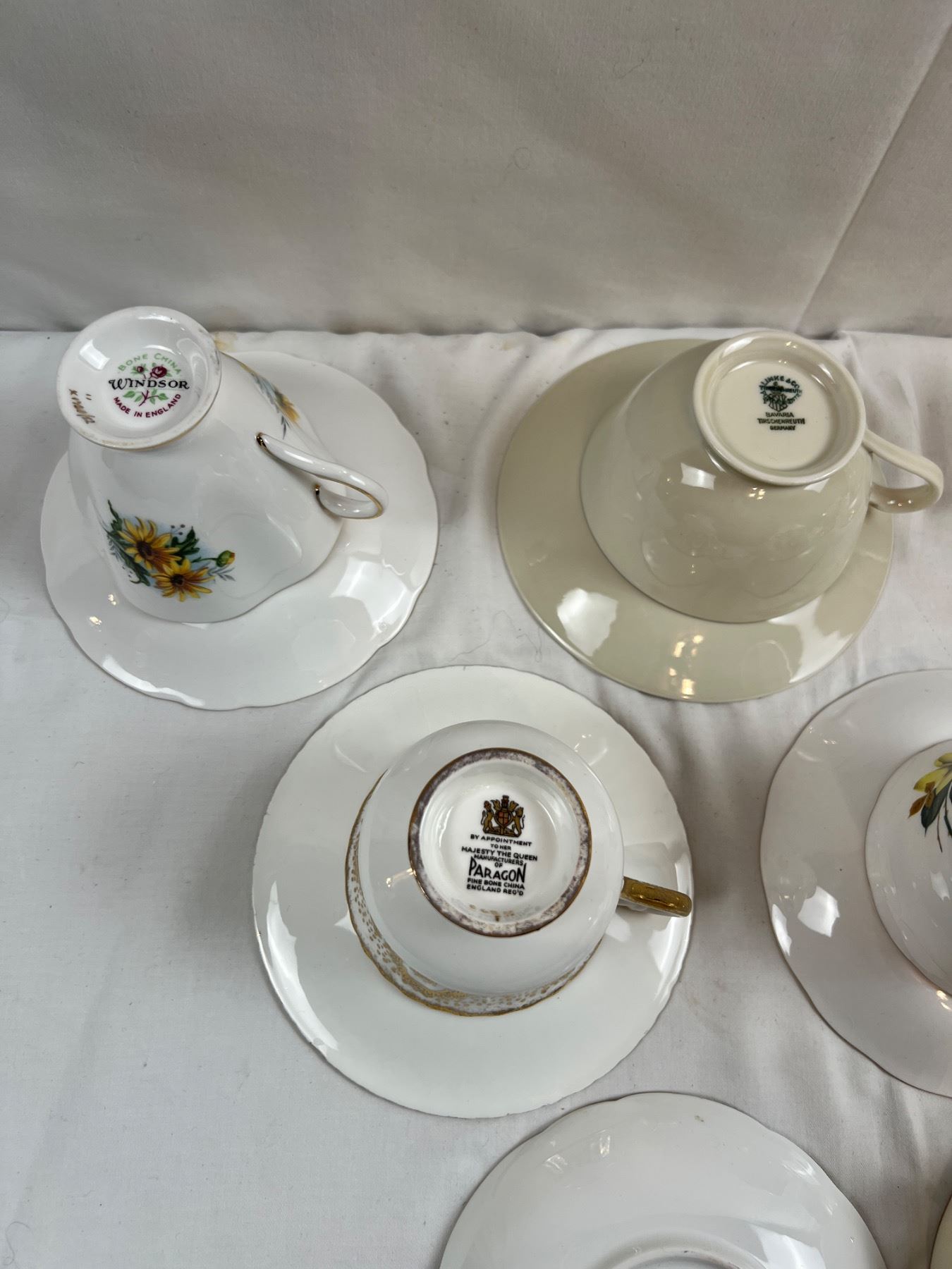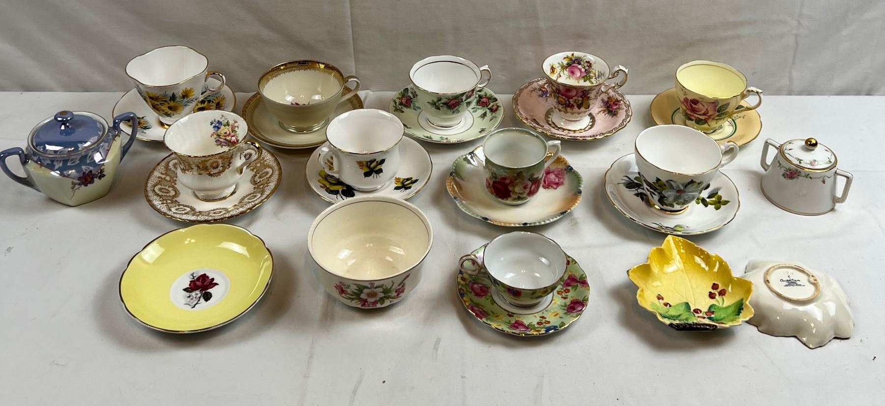 The green floral teacup is made in occupied Japan which makes it made between 1945-1952. Brands include Paragon, Windsor, Queen Anne and more!