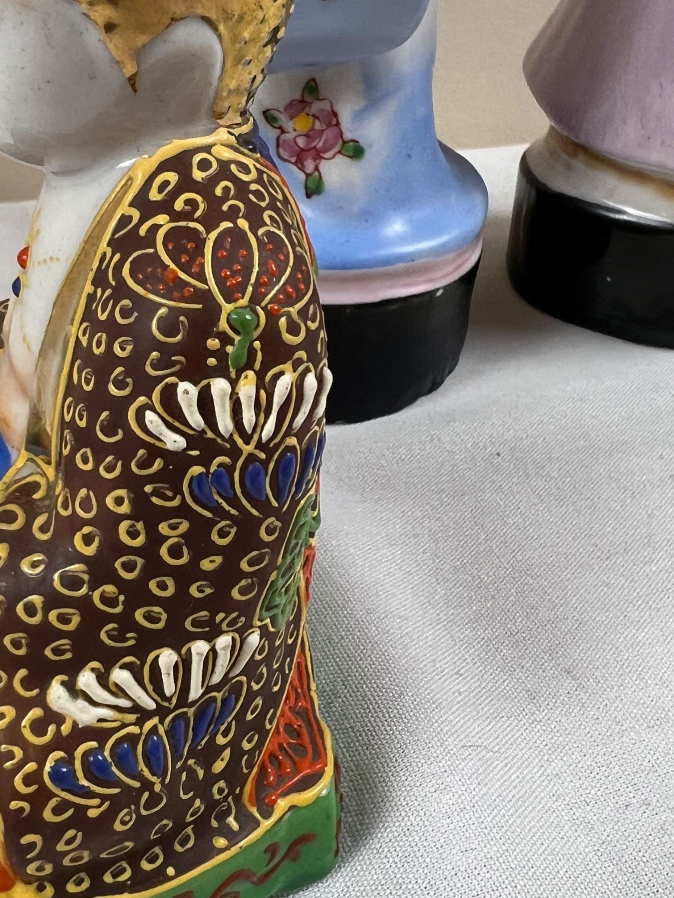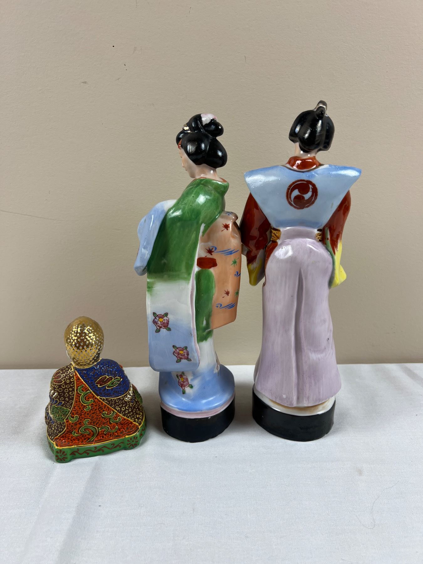 The two taller figures are 10"H, Made in Occupied Japan