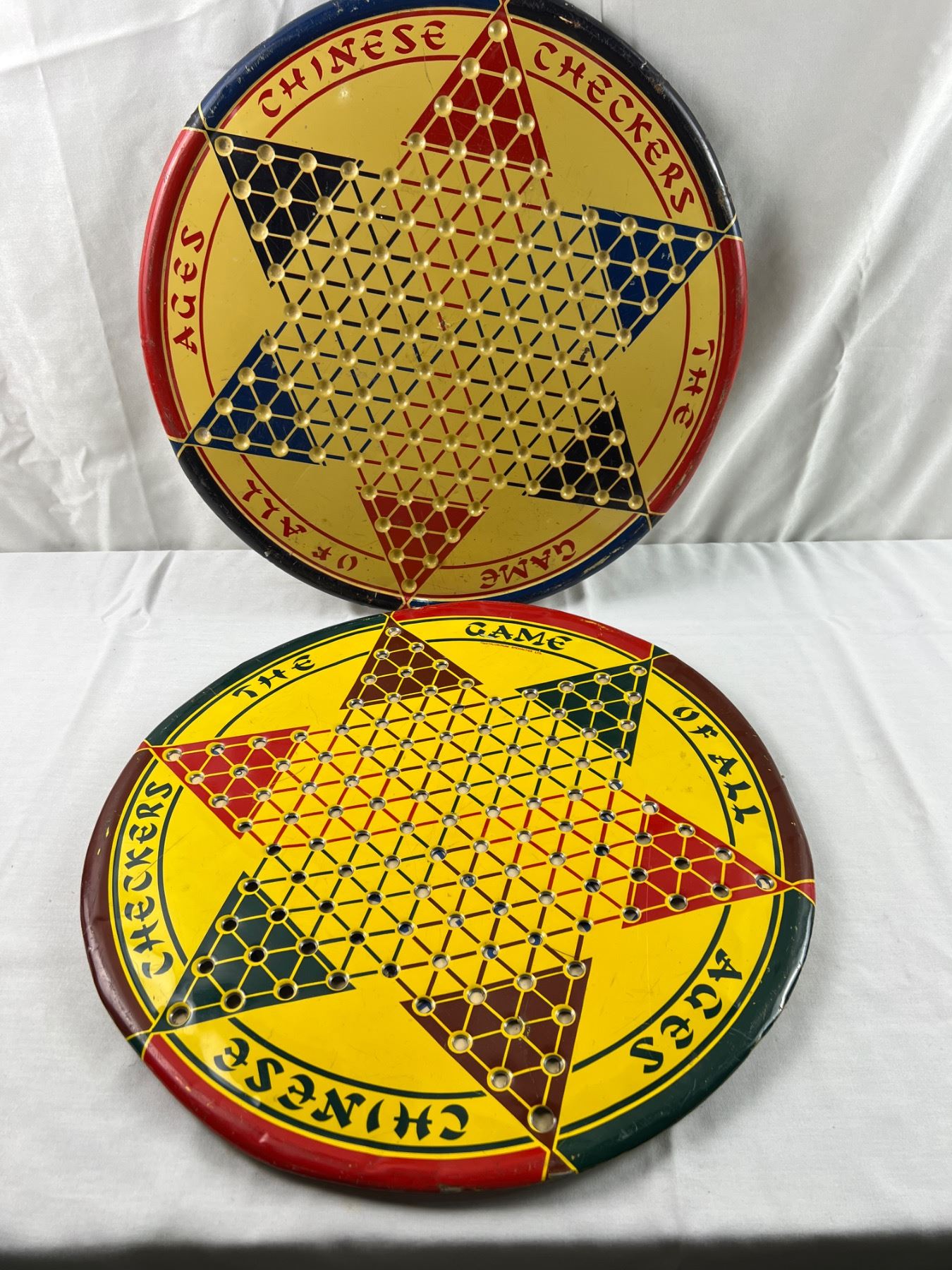 One is by Metaluminum Specalties, both are 19"diameter, some small dents and wear