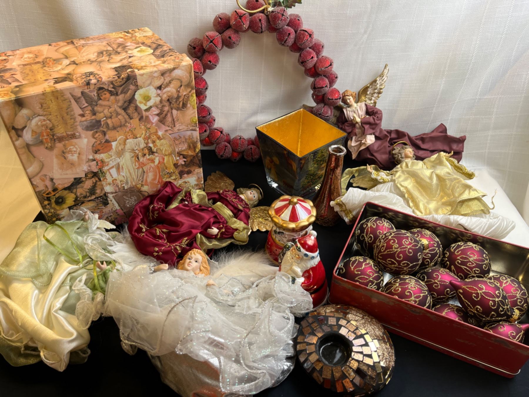 Includes Angel nesting boxes (largest 10.5" x 10.5" x 7"), vases, angels, etc.