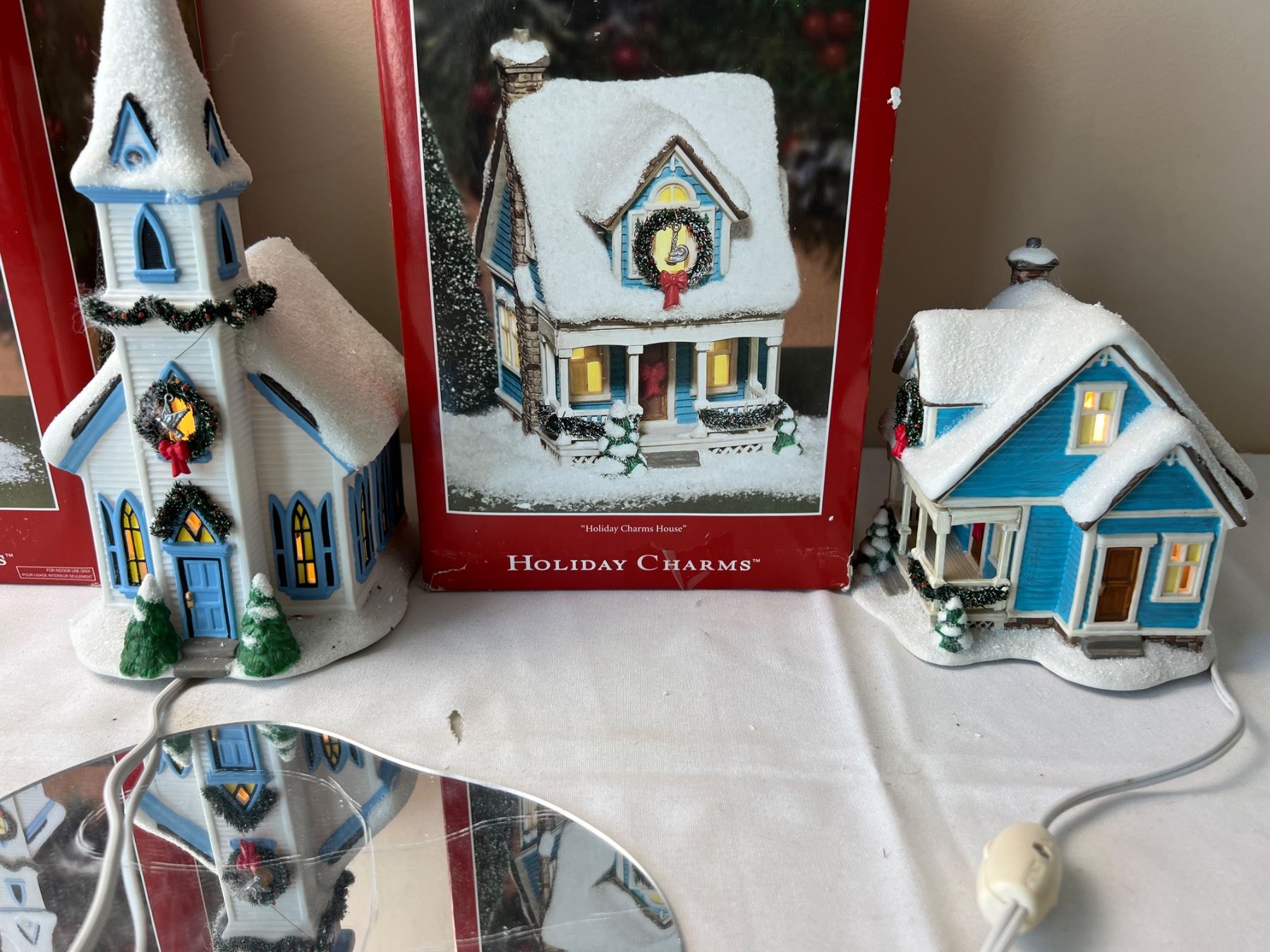 Includes Simple Traditions Holiday Charms houses (smaller house is 6"H) and both lights work