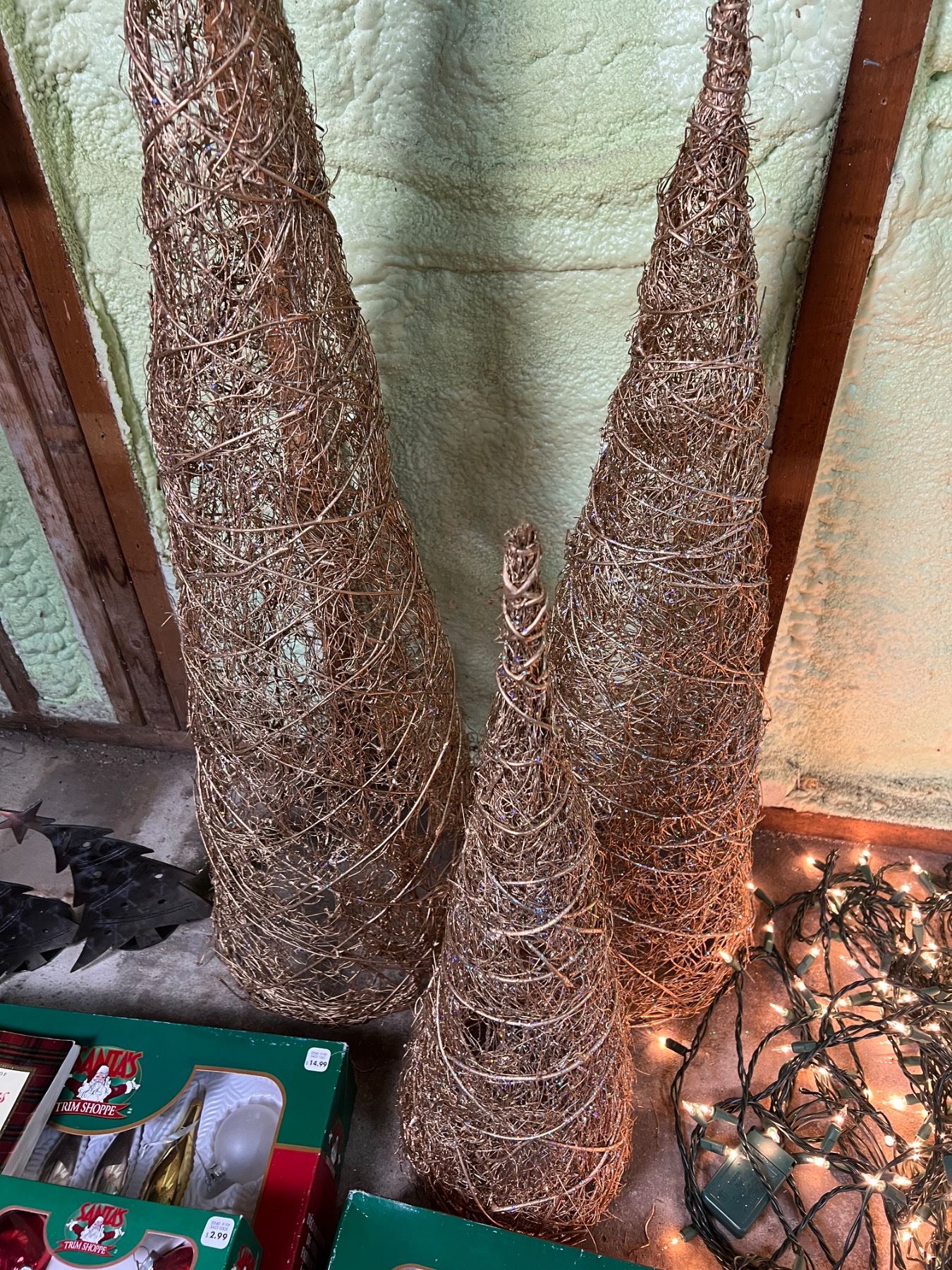 Tallest tree is 40" tall. Includes ornaments, skirt and more!