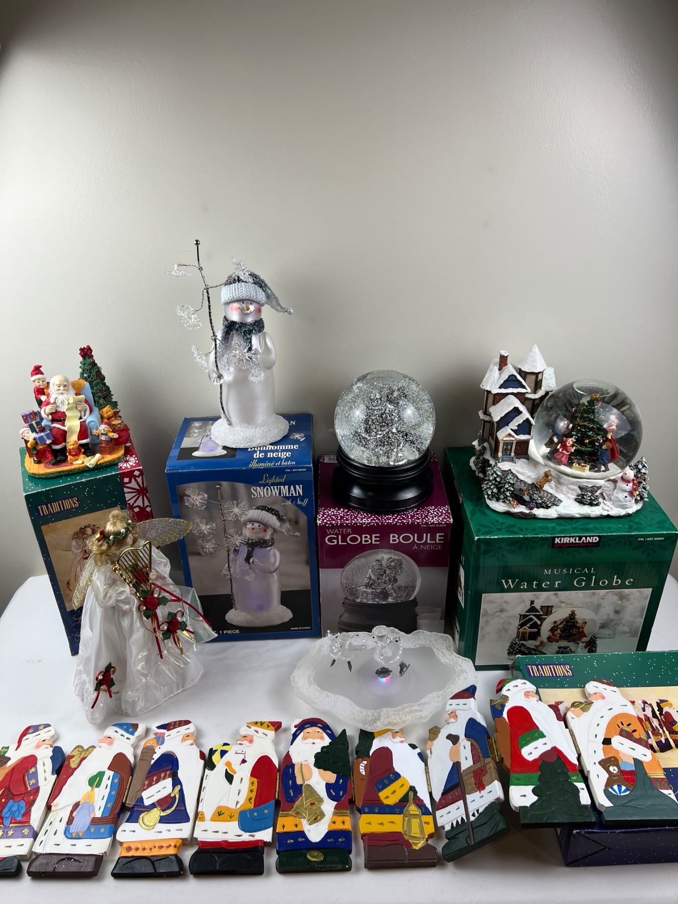 Includes Lighted Snowman with staff, Musical Water Globe, Traditions tree topper, and more,