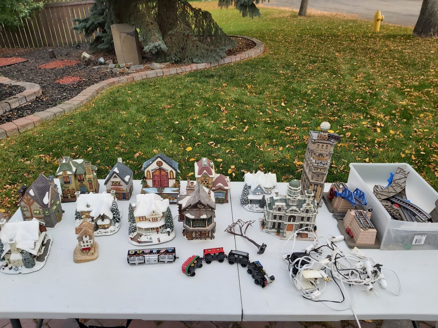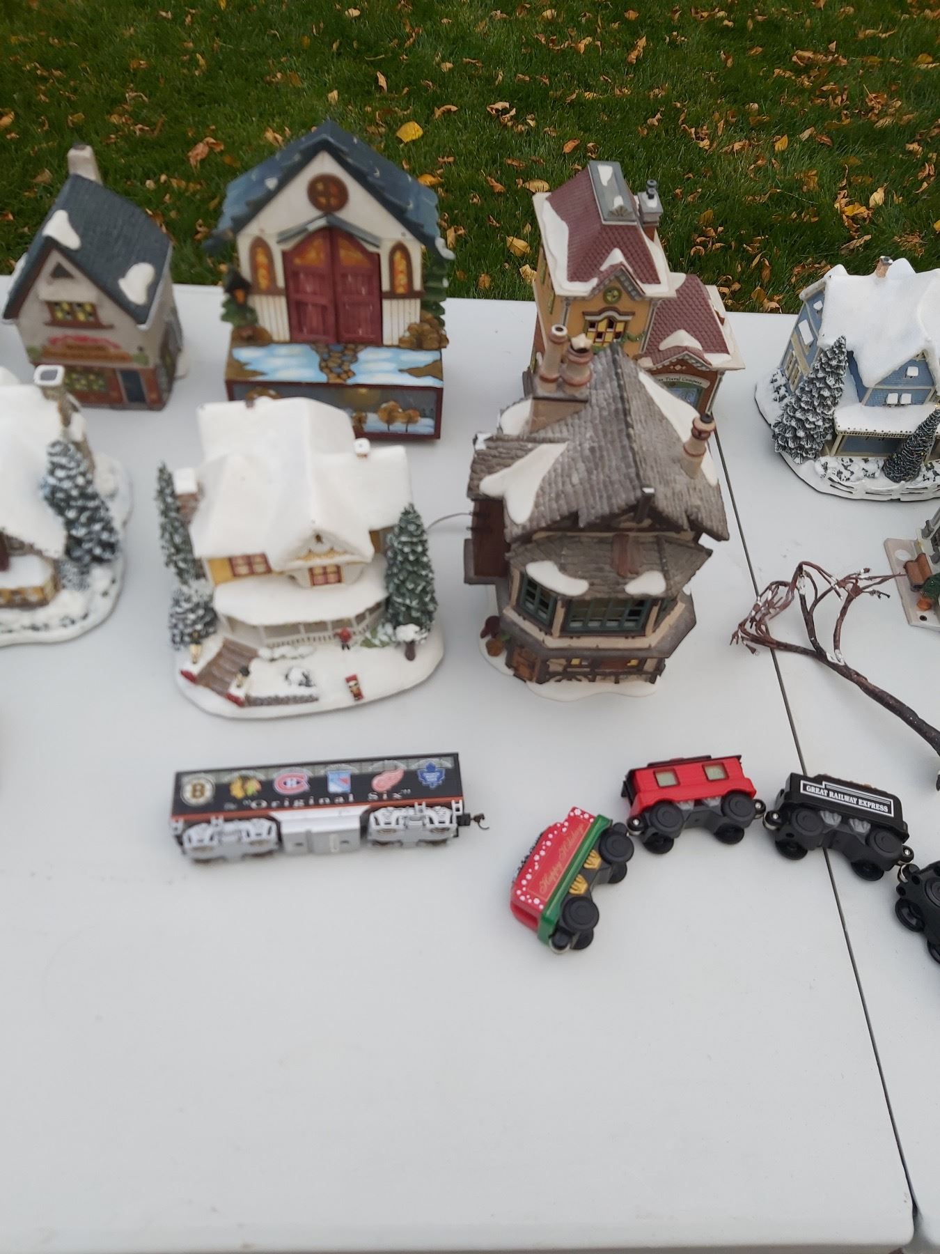 Includes, Hawthorne Village, Dickens Village, Department 1999, etc. Lights in unknown working condition, some chips and cracks