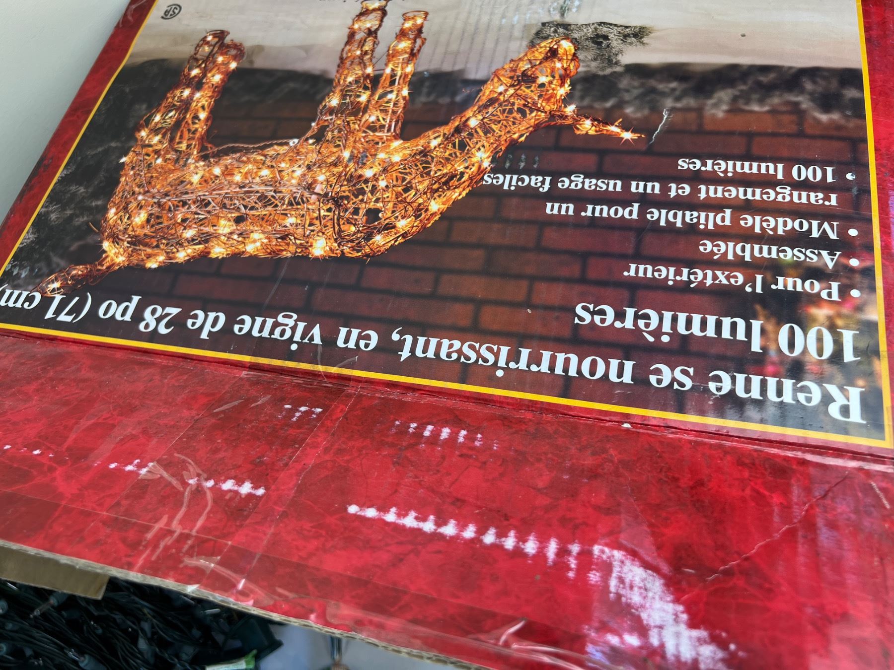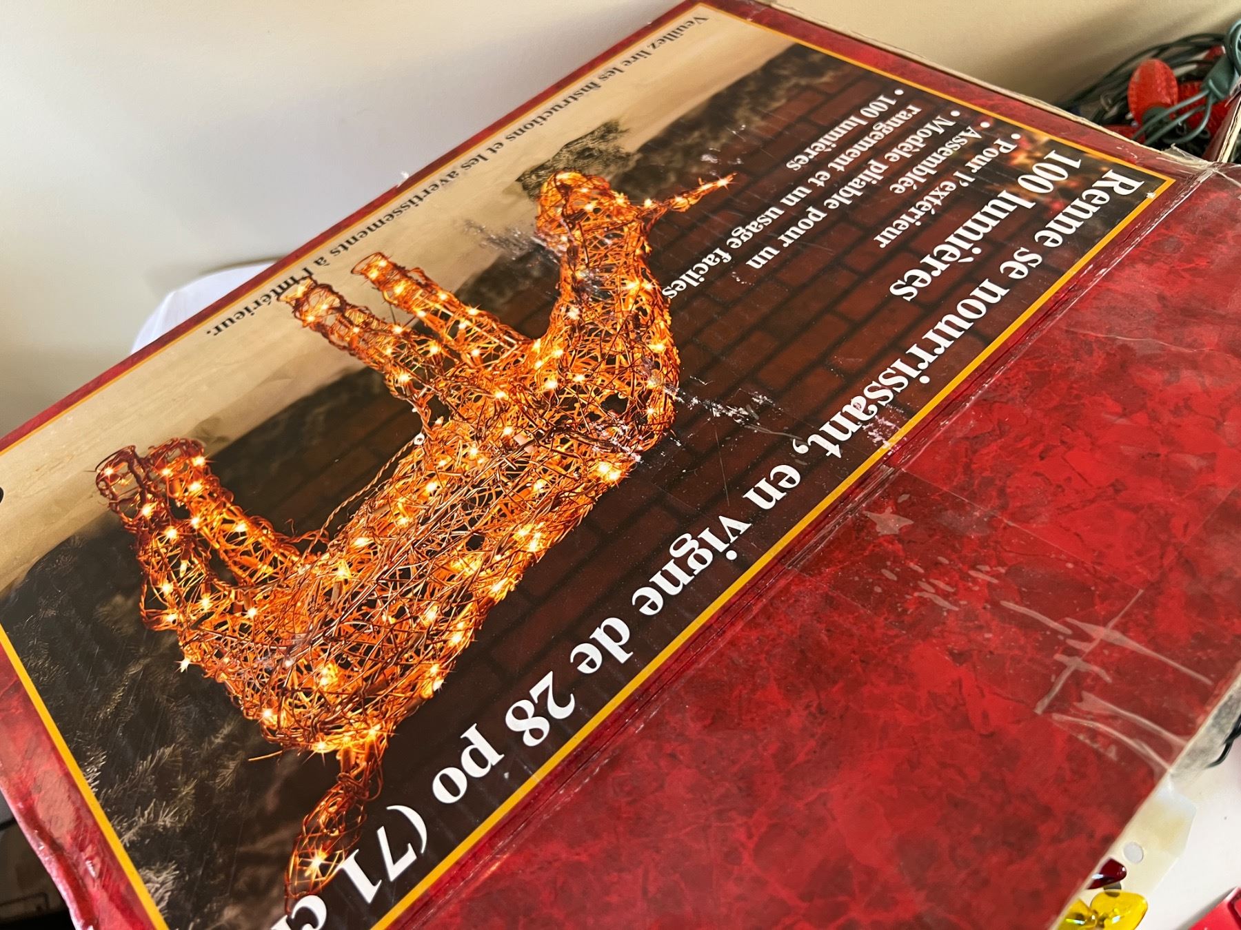 Includes two lighted reindeer figures 17 3/4" x 8 1/4" x 10 5/8" (open boxes), Lights not tested