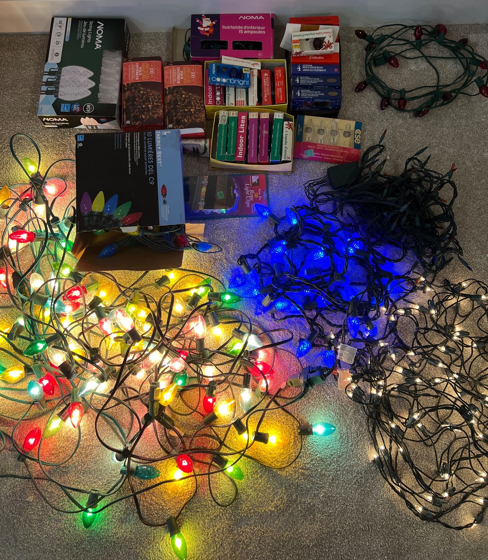 All of the string lights are tested except for battery operated lights that need new batteries, includes various lengths as well as indoor/outdoor