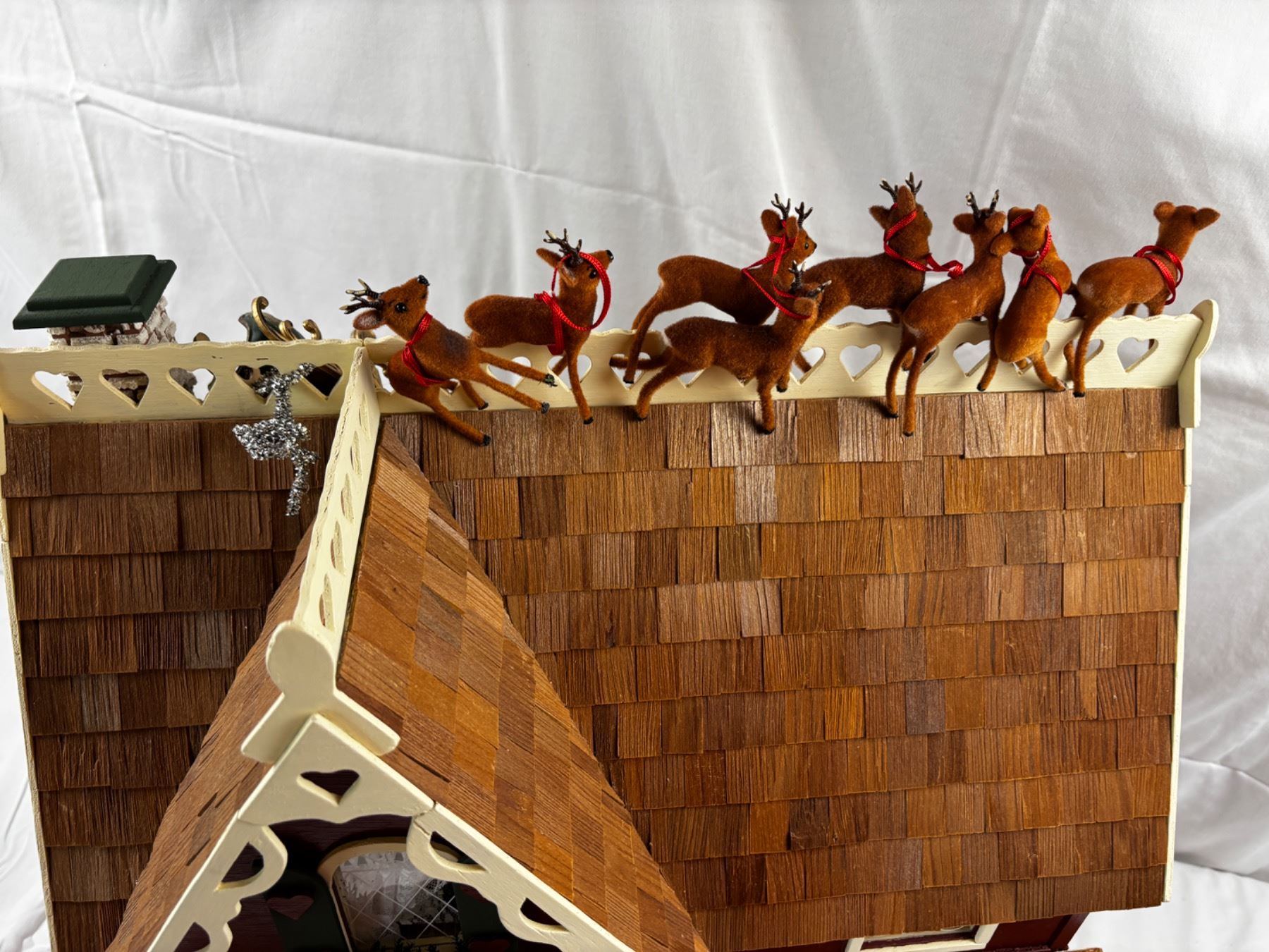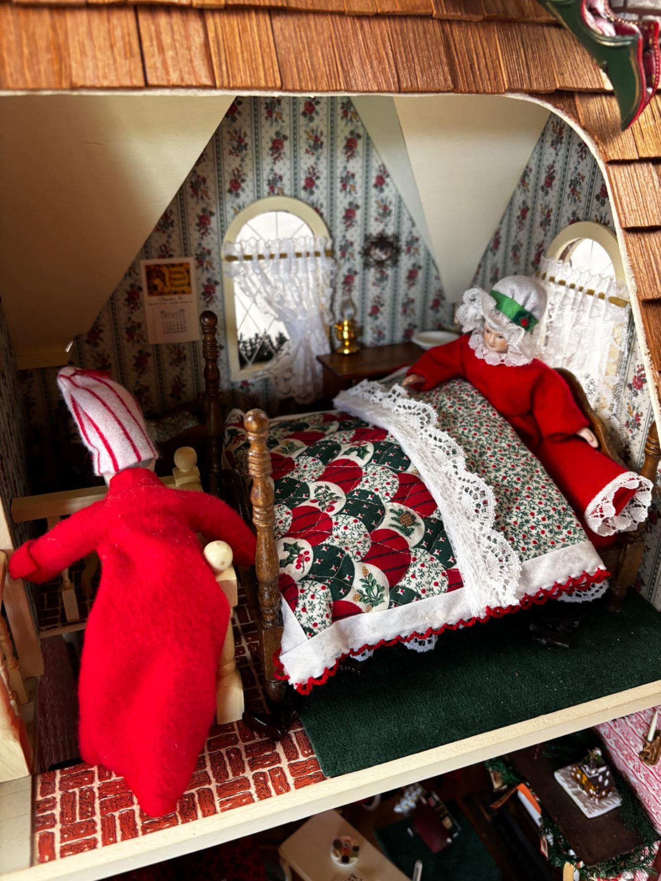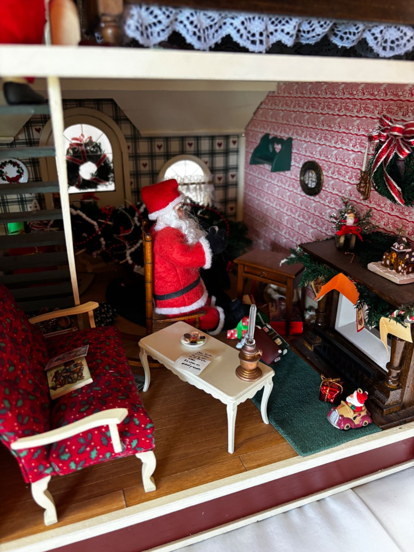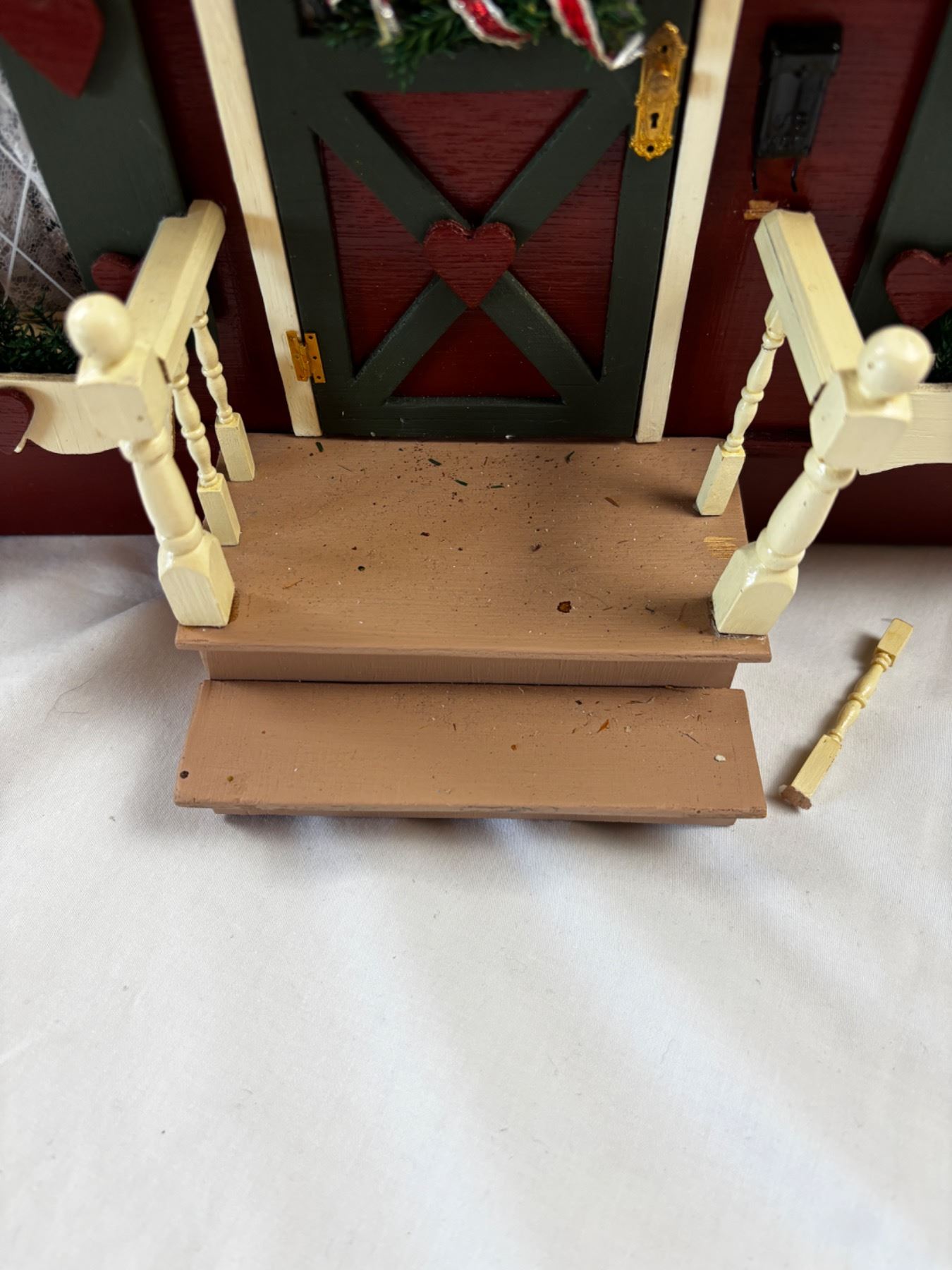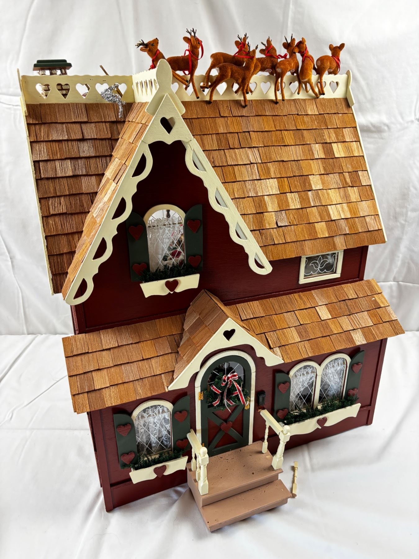 Includes all of the miniature dollhouse furnishings and characters, some wooden pieces have been broken off or may be loose, 21"L x 14"W x 23"H