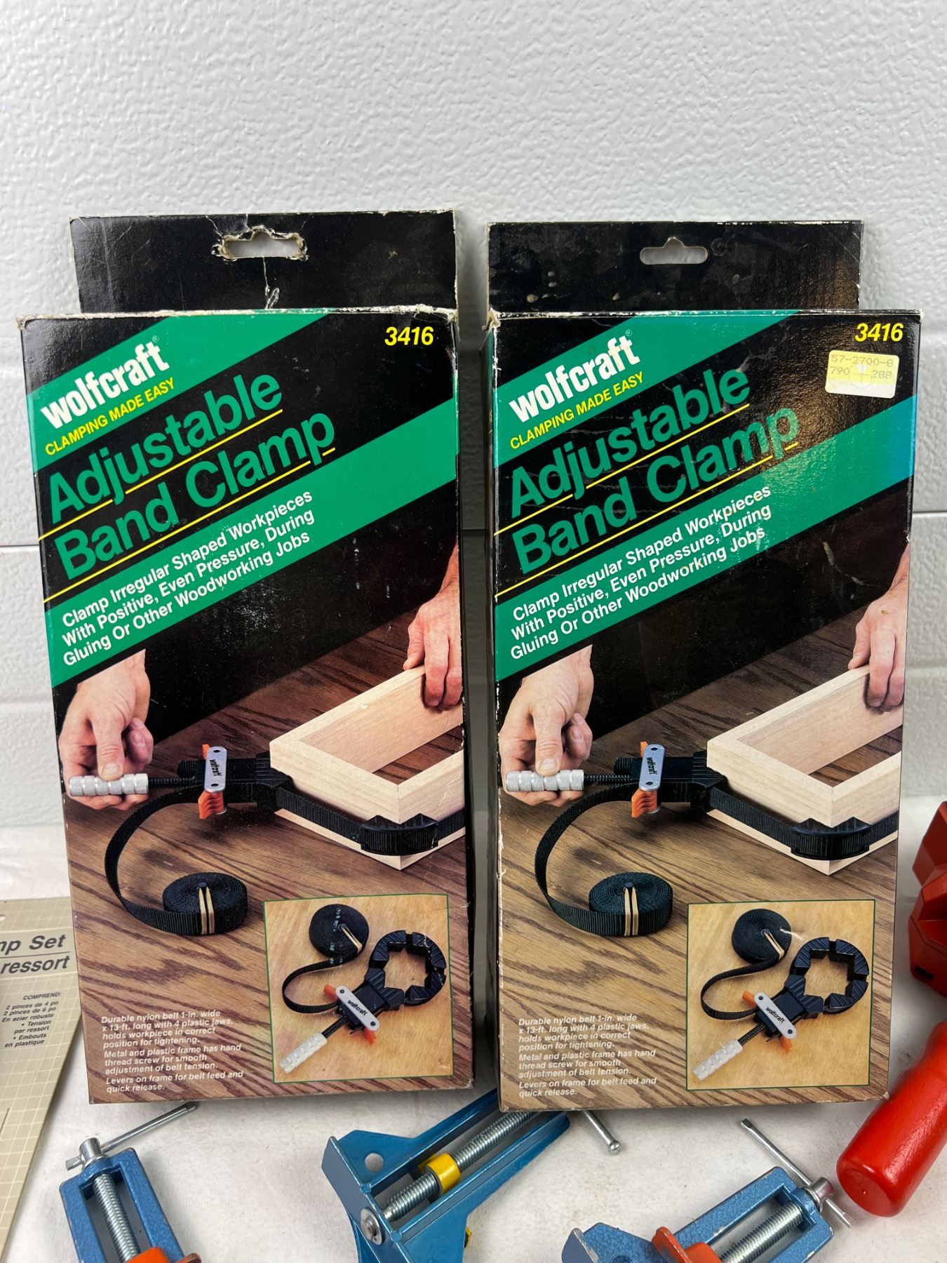 Includes, Wolfcraft Adjustable Band Clamps, Spring Clamps, and more