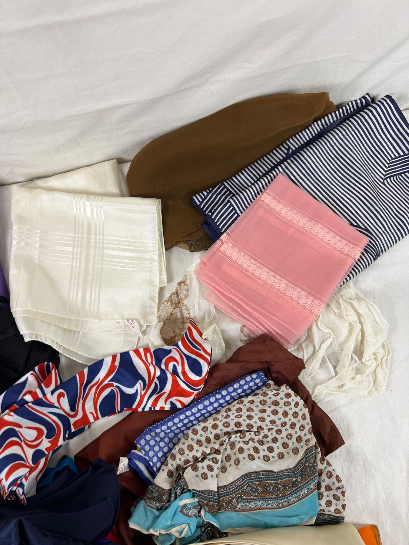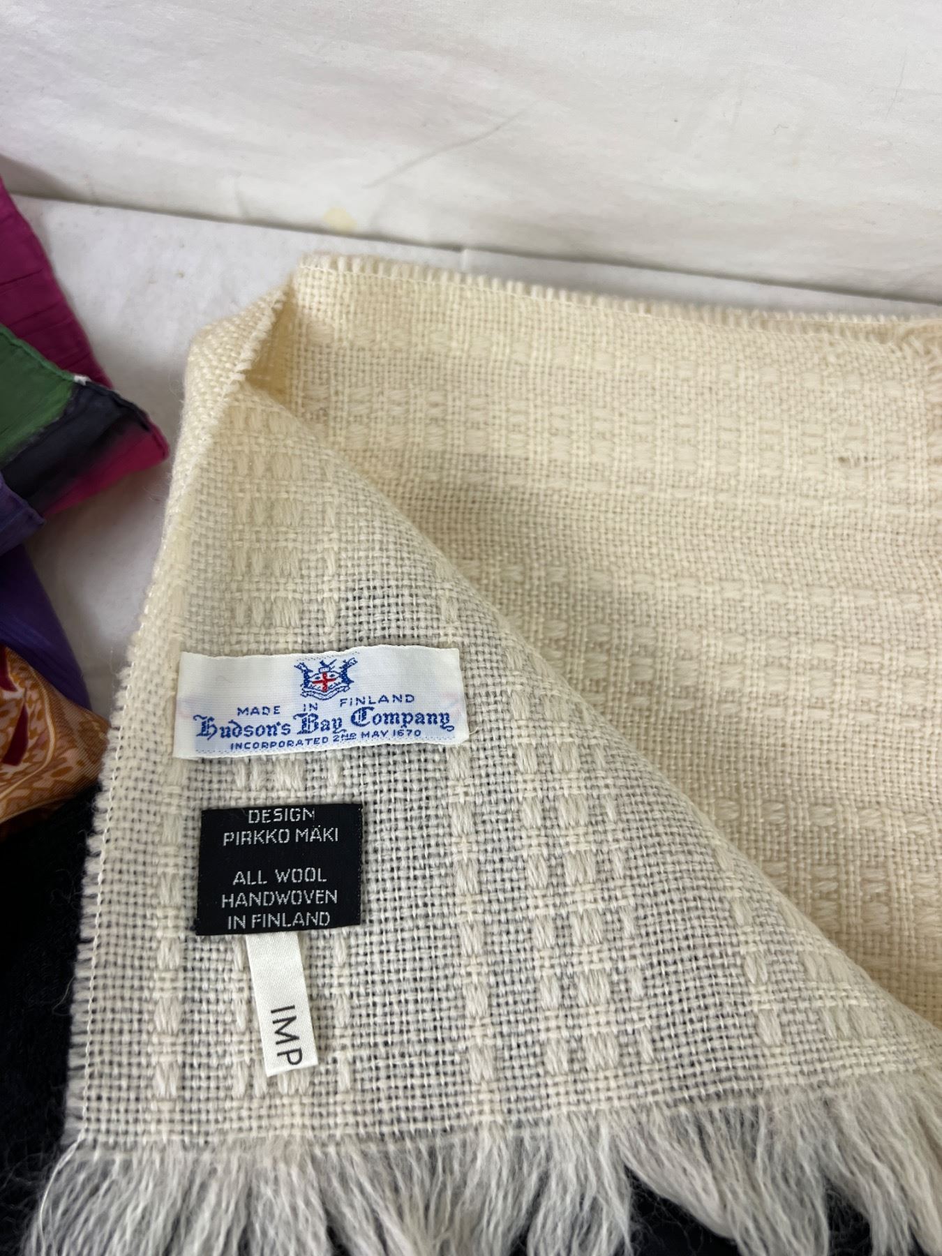 Variety of shapes in sizes. Highlight is Hudson's Bay Wool Piece from Finland. Some pieces made in Italy, many of the tags were too crumpled for good photos.