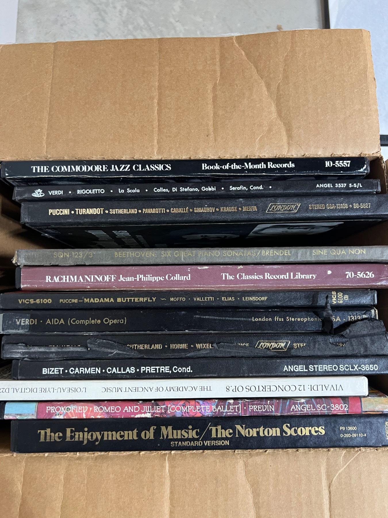 Includes multiple notable classical artists such as Bach, Mozart, Tchaikovsky and more! Various levels of wear to boxes.