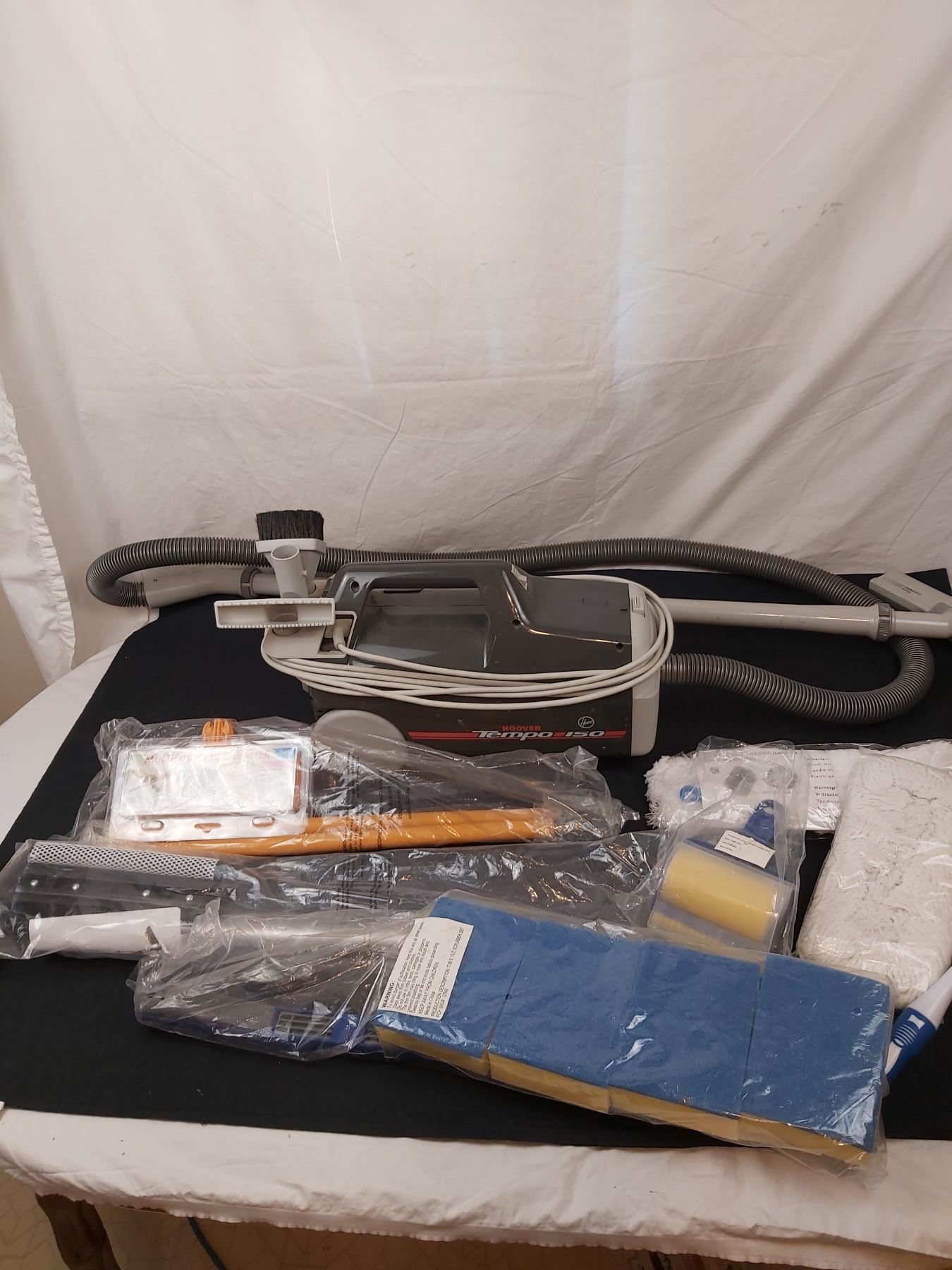 Includes, Hoover Tempo 150 (works) needs vacuum bags, Dusters, Multipurpose cleaner, Mop and sponge attatchments, etc.