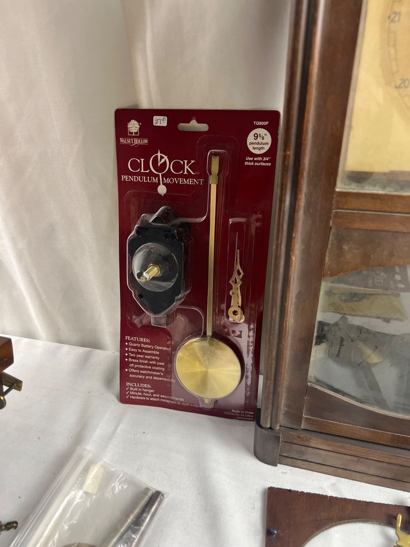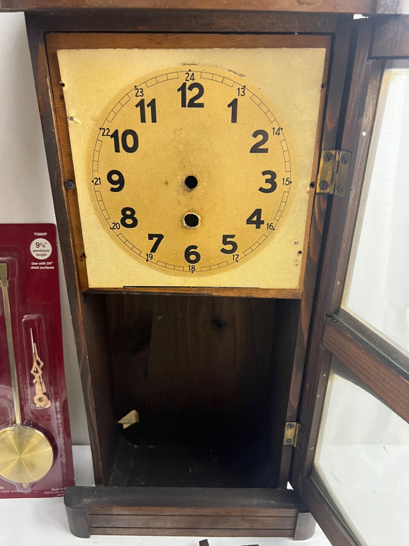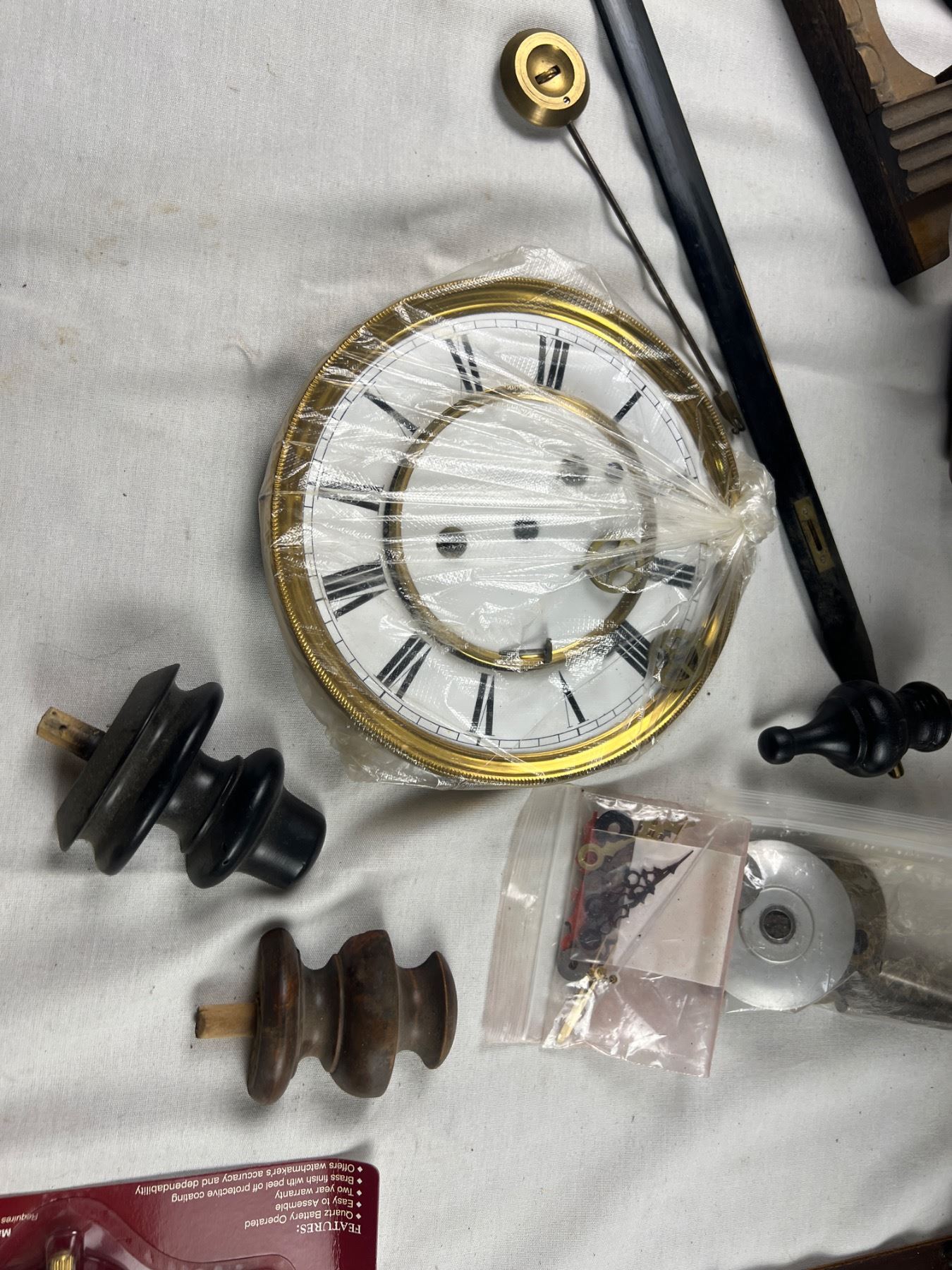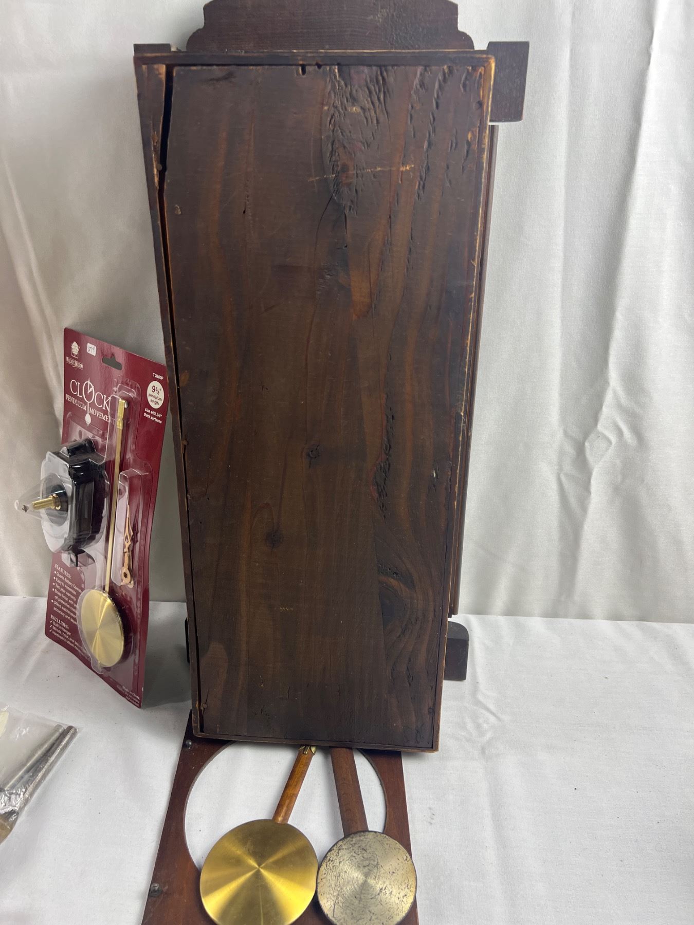 Includes two clock pieces (12x36" & 10x23"), The larger one is missing the glass and both are missing the mechanical components, comes with various parts such as two new Clock Pendulum Movement sets