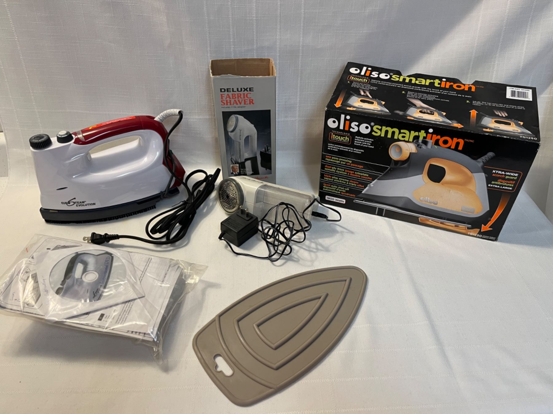 Includes Oliso Smart Iron (new in open box), Euro Steam Evolution, Deluxe Fabric Shaver - all turn on