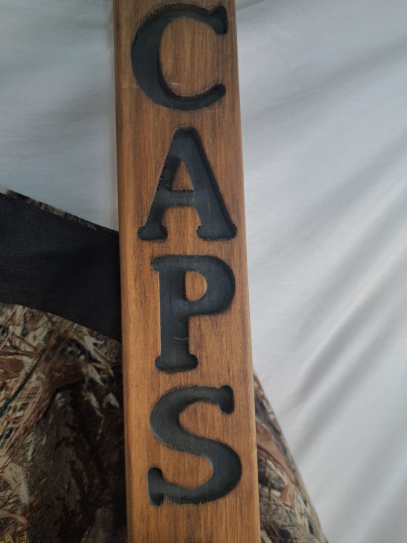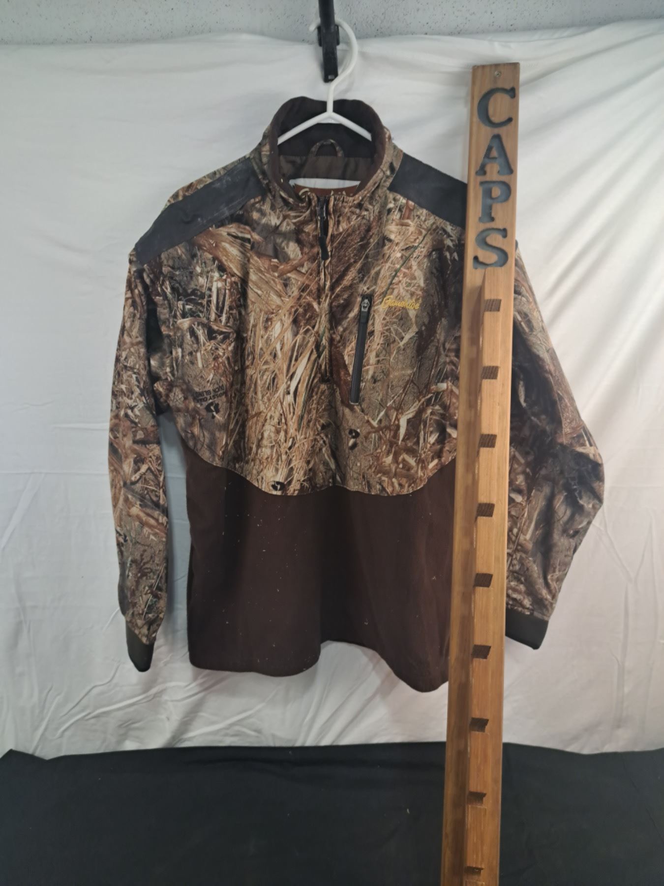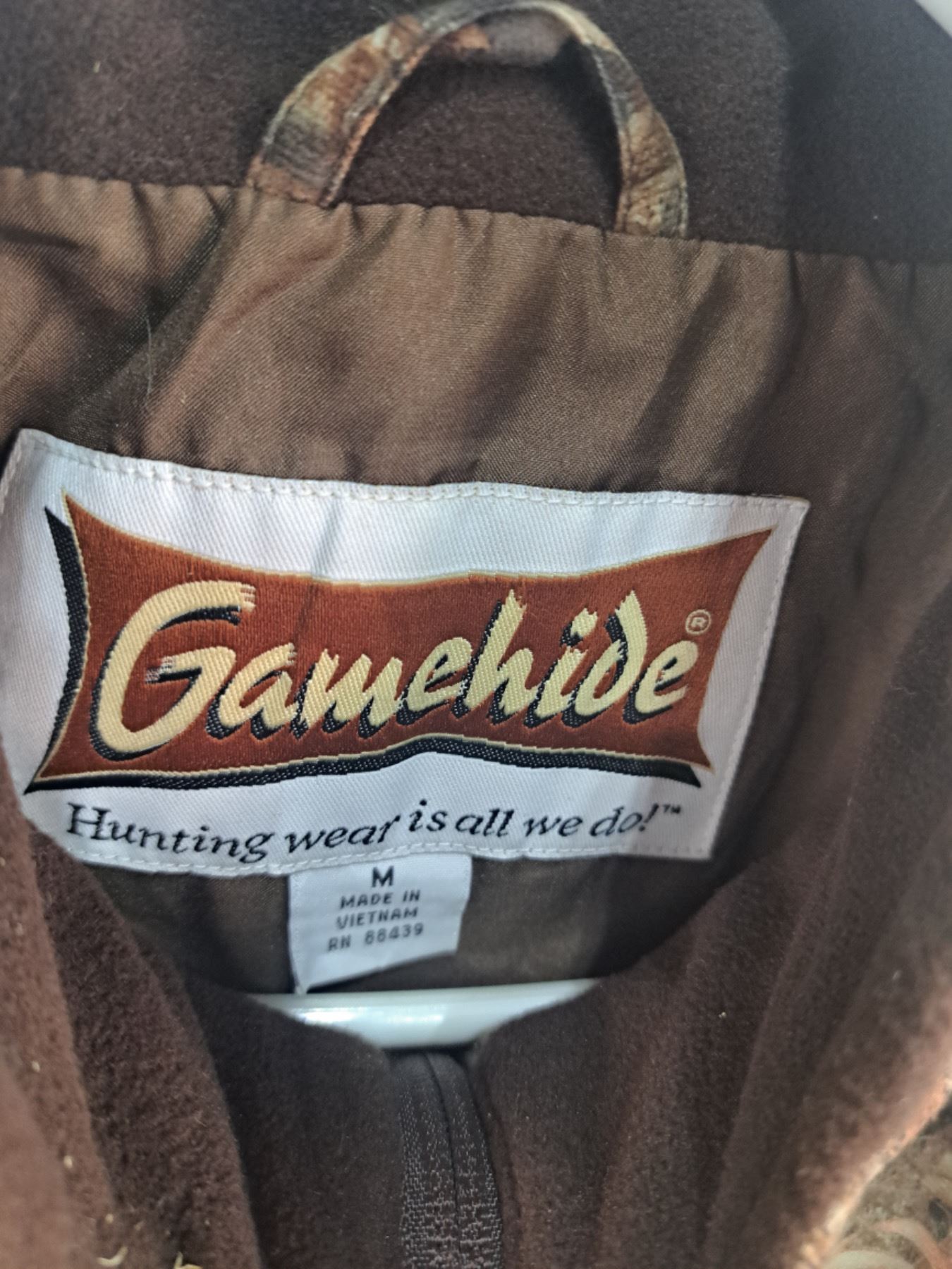Includes, Game Hide Mossy Oak size Md jacket, Wooden Cap Rack (44"L)