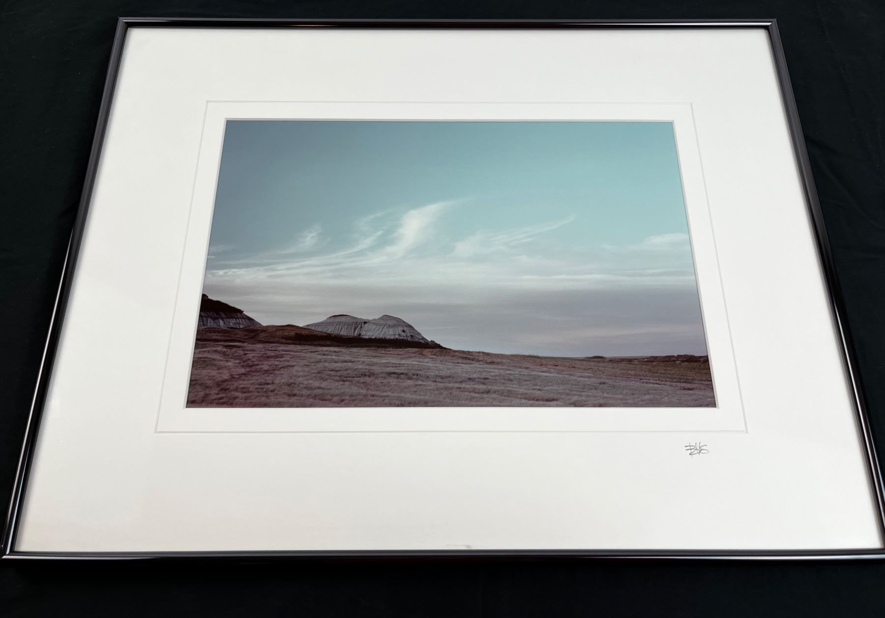Original Alberta Landscape Photographs by Brian Van Sickle - Cloud Over Badlands (Image 32 x 21 cm - Frame 50 x 39 cm) - Color Cibachrome - Black metal frame and archival mat - Signed