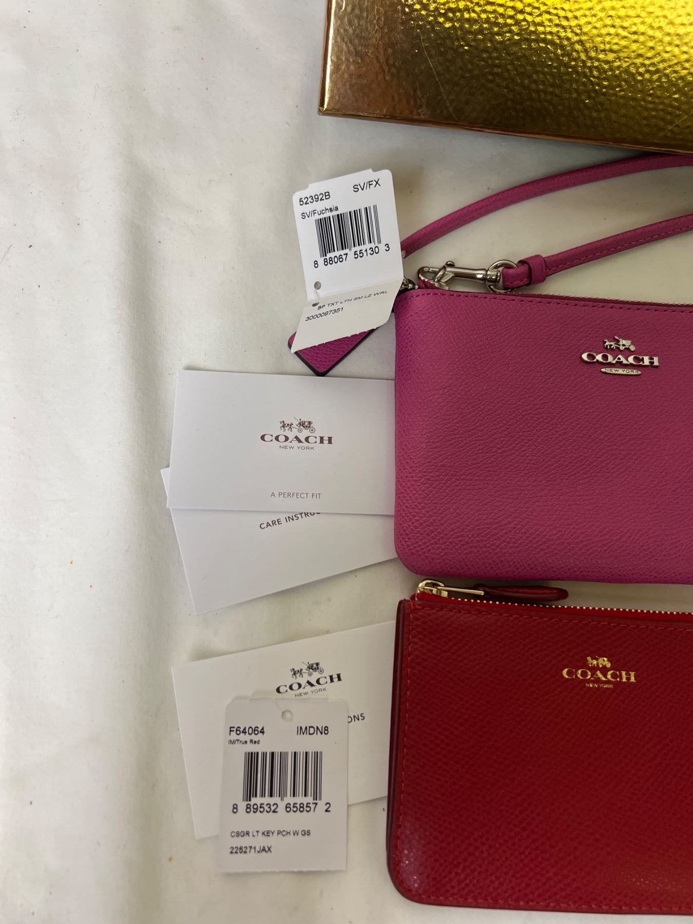 Both have original tags on them and the Fushcia wallet has a gift receipt from the Bay.