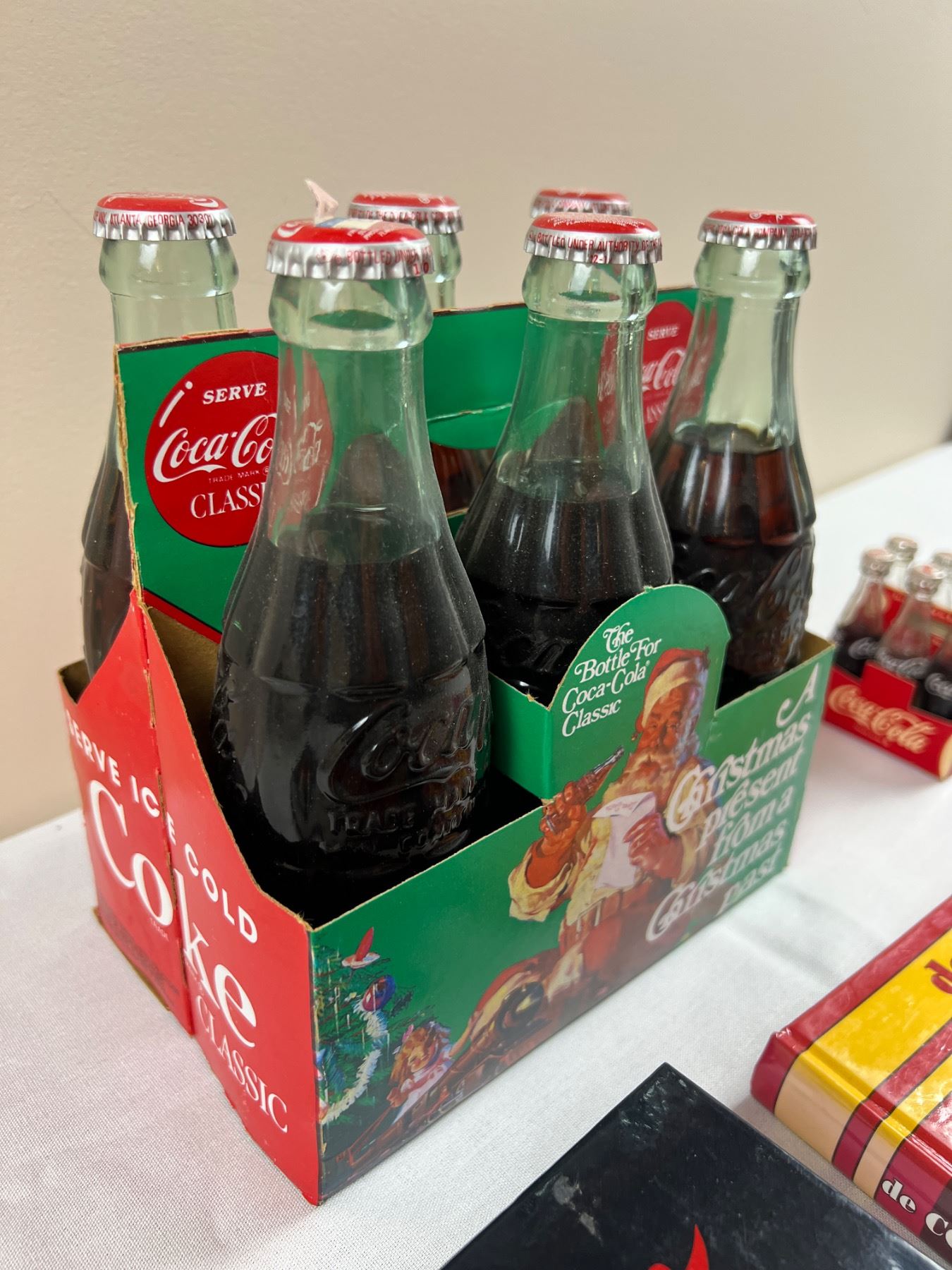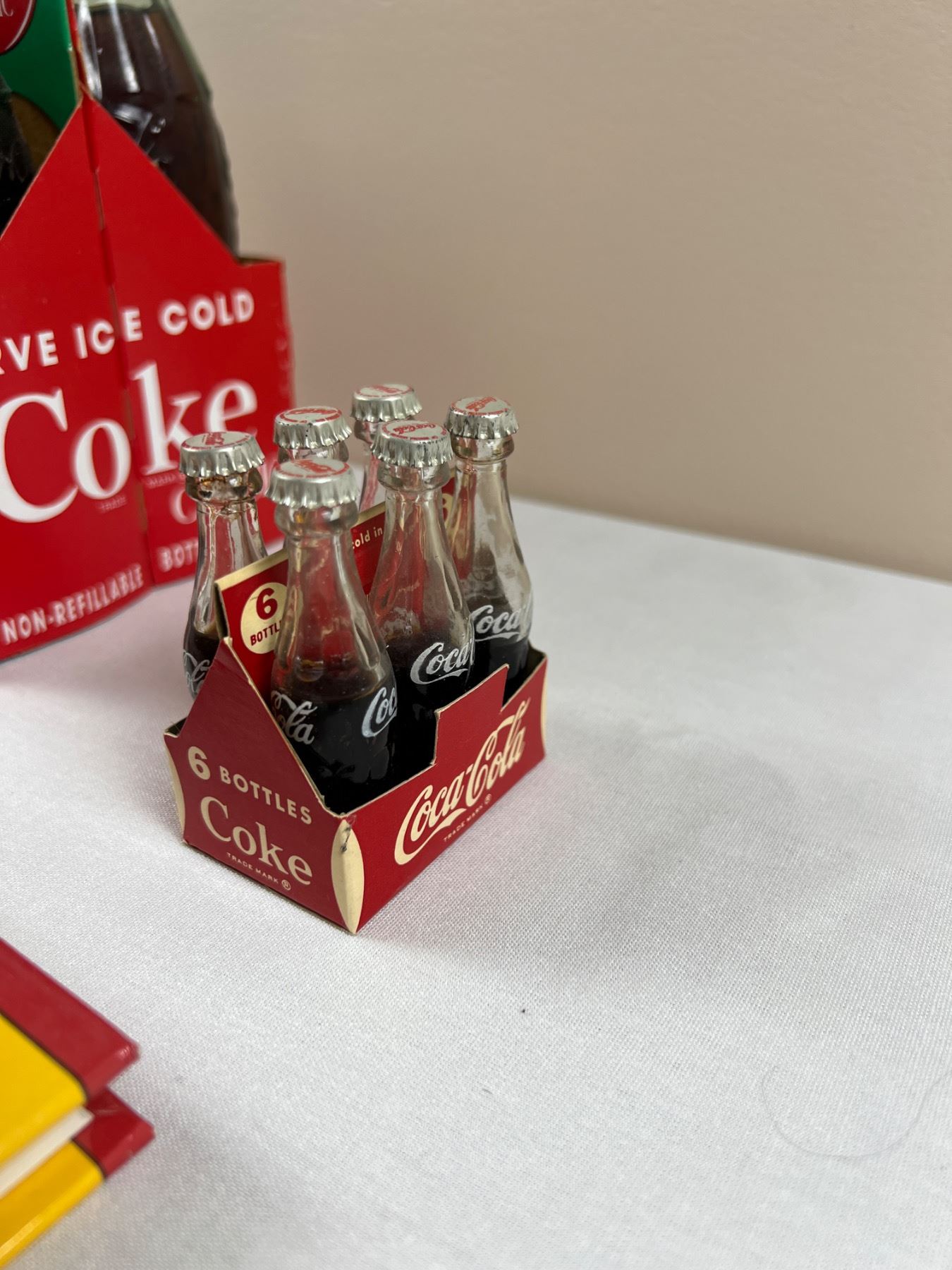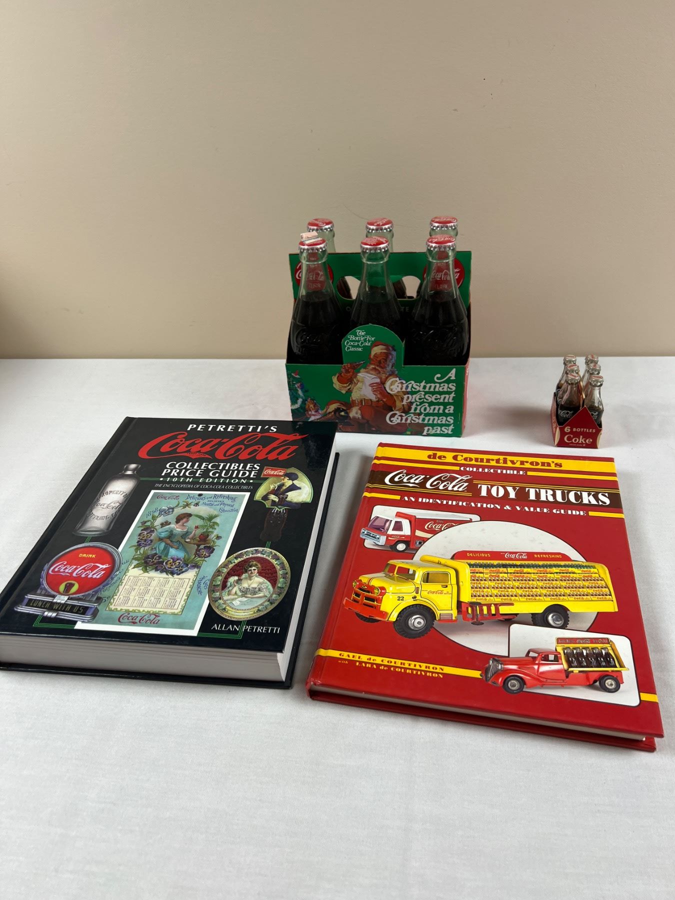Includes two books, Miniature bottles, and six Christmas Coke bottles (unopened)