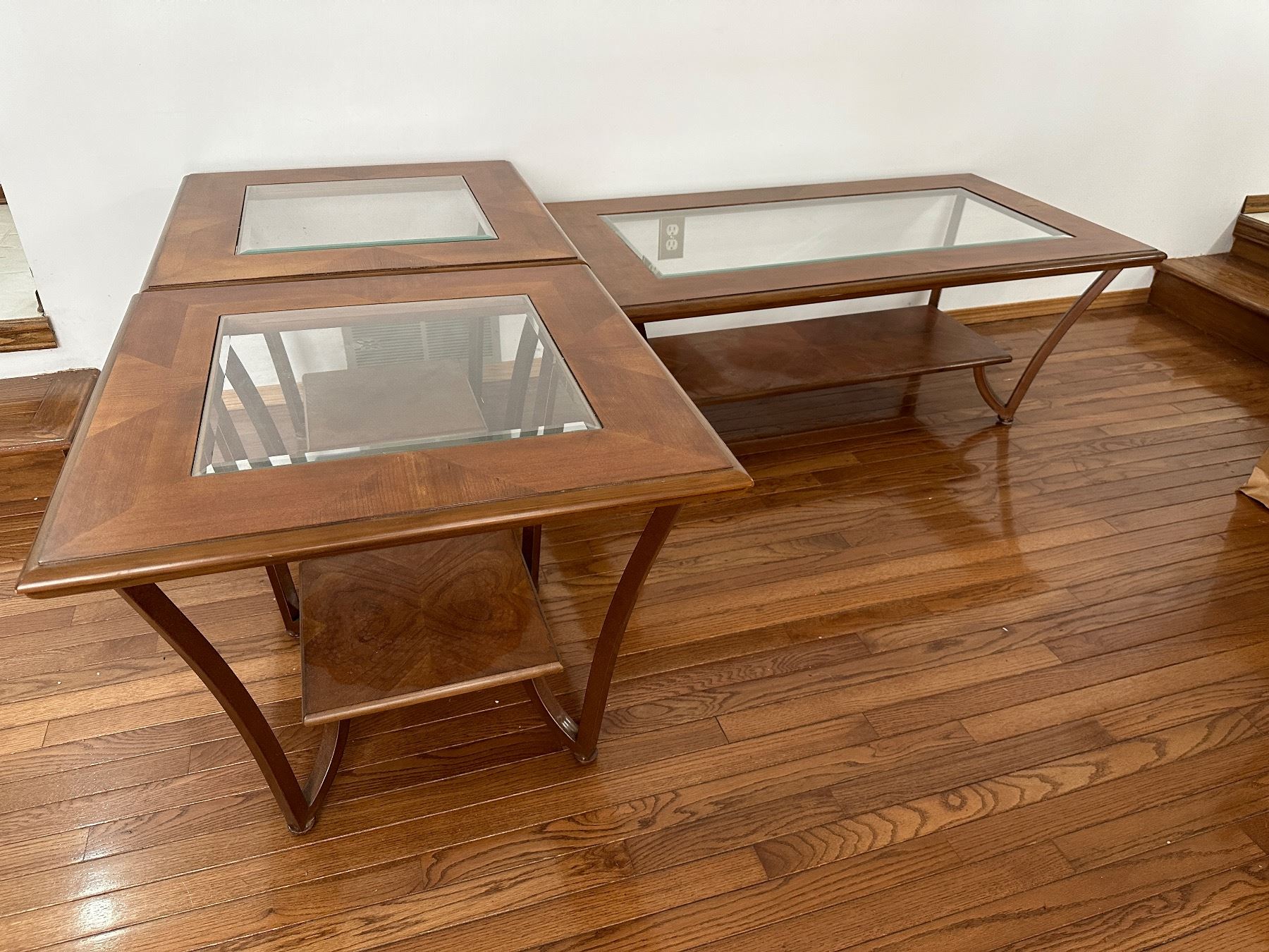 Coffee table 50" long x 27.5" wide x 18" tall - End Tables 28" x 28" x 23" tall