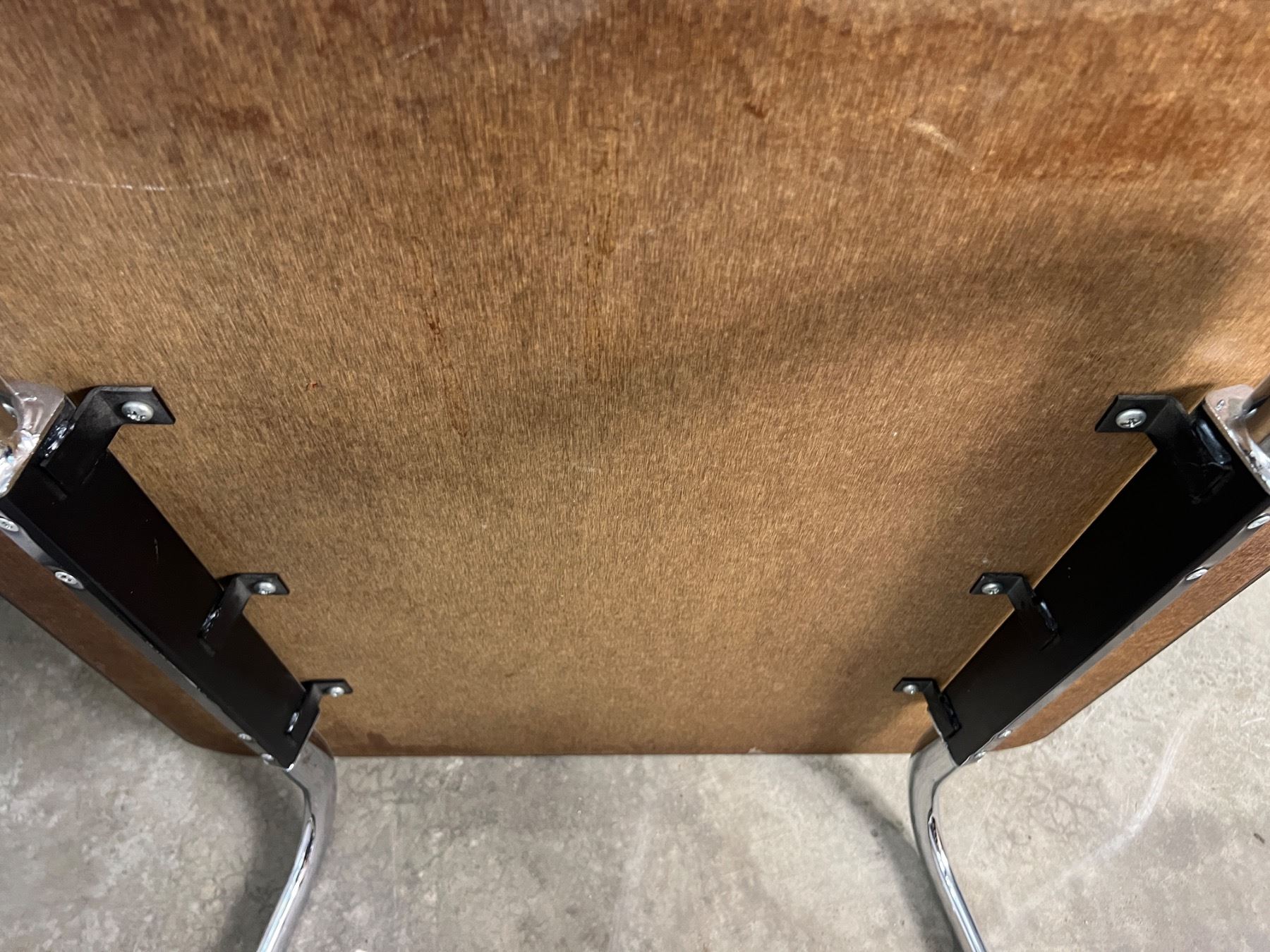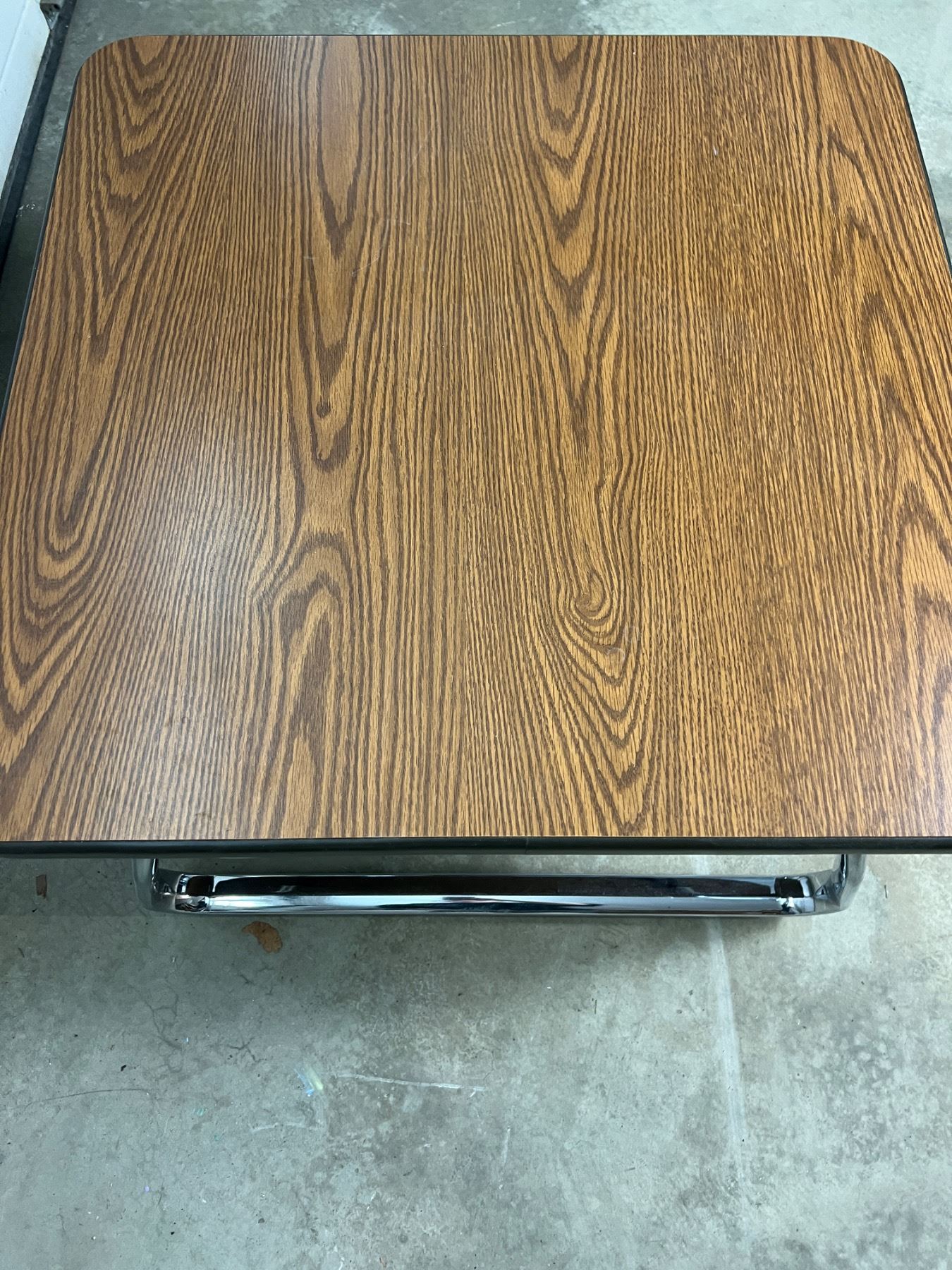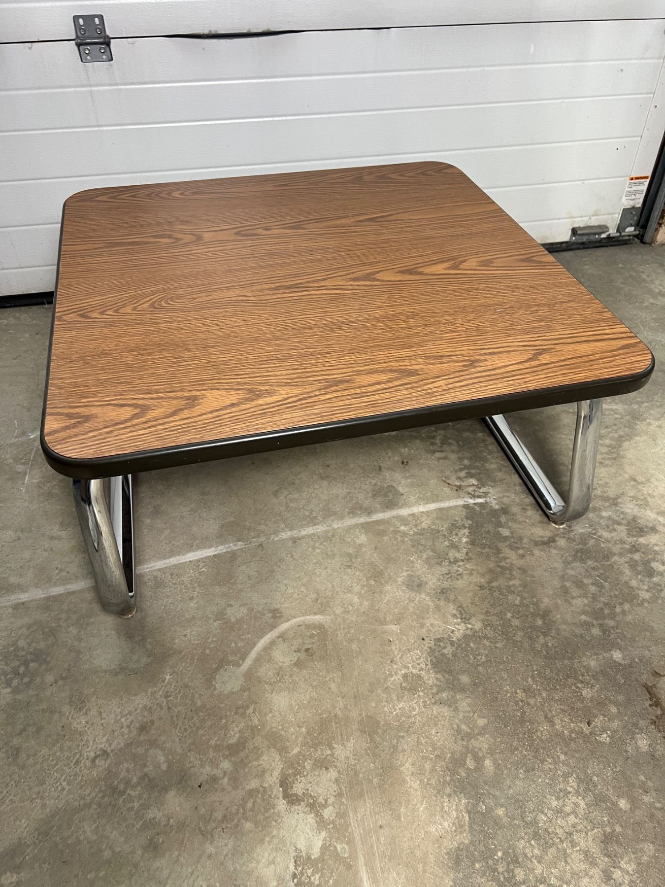 Has some scratches on the table top, 30"L x 30"W x 15"H