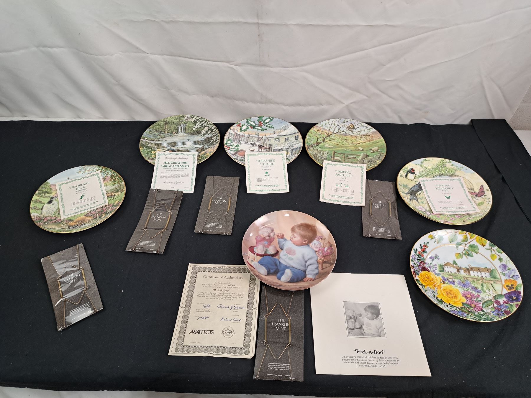 Includes designs by, Peter Barret, Rosanne Sanders, MaGo, 7 Plates Total with Certificates and 6 Hangers