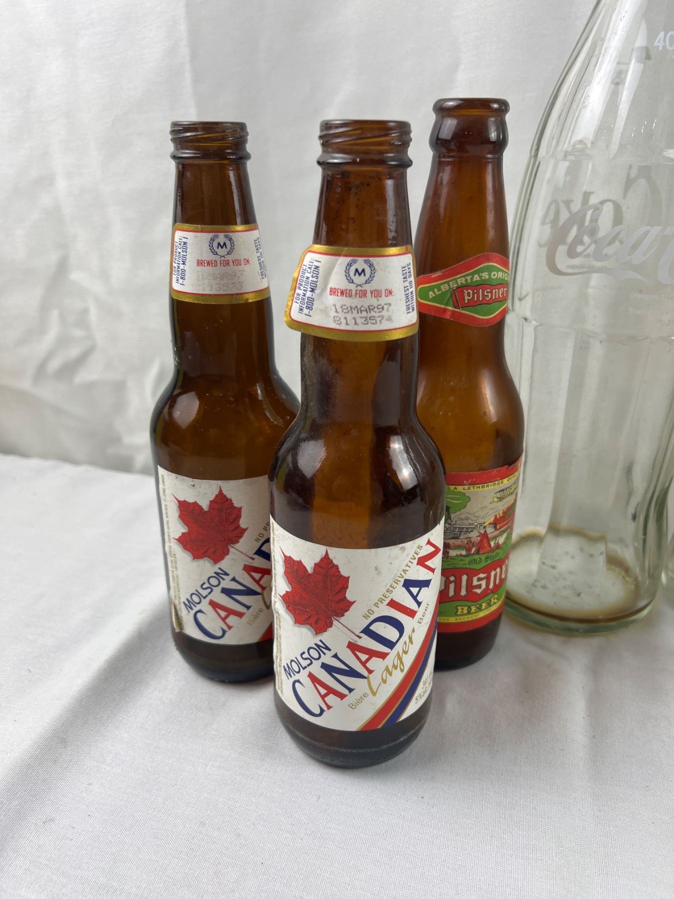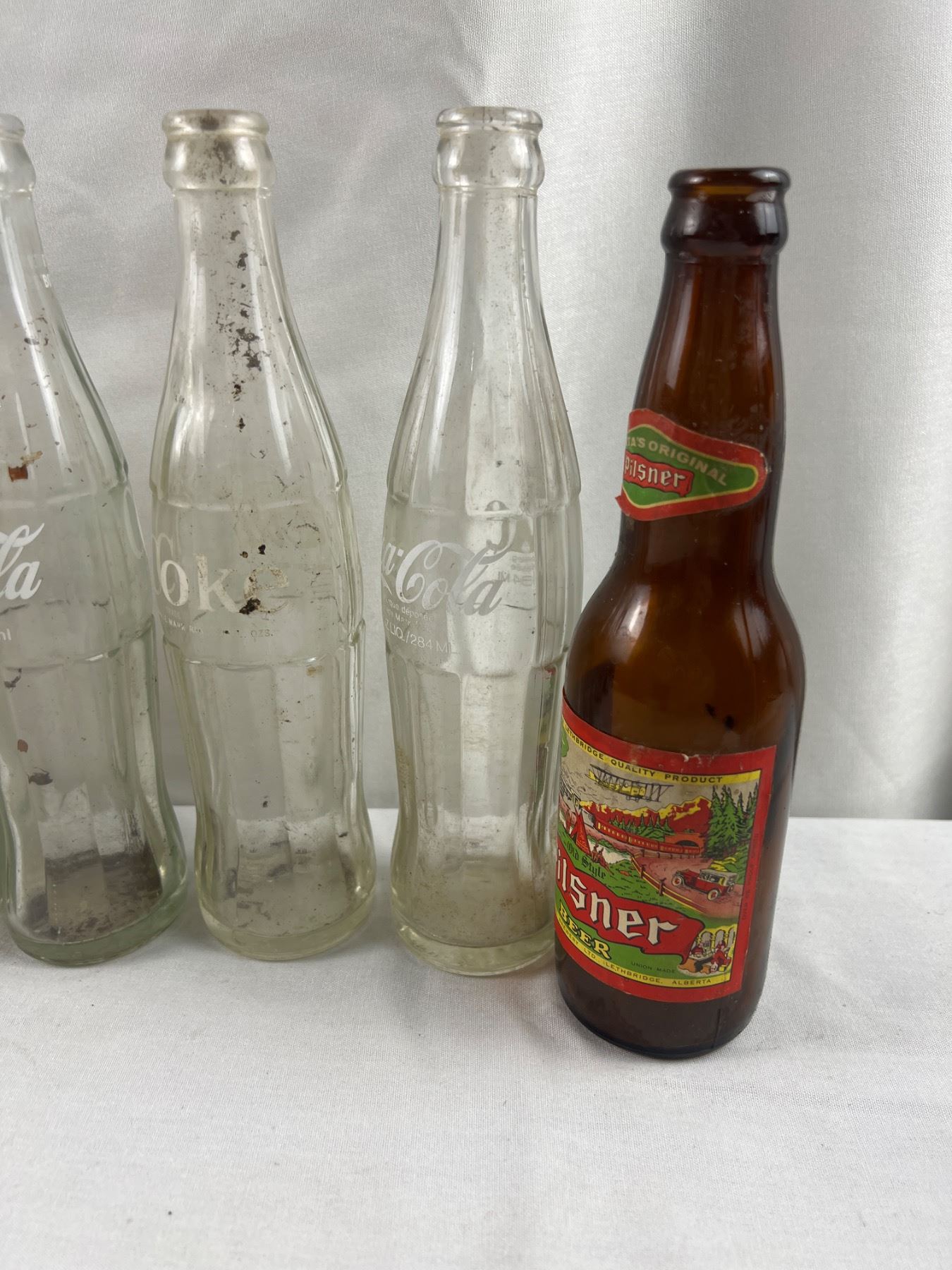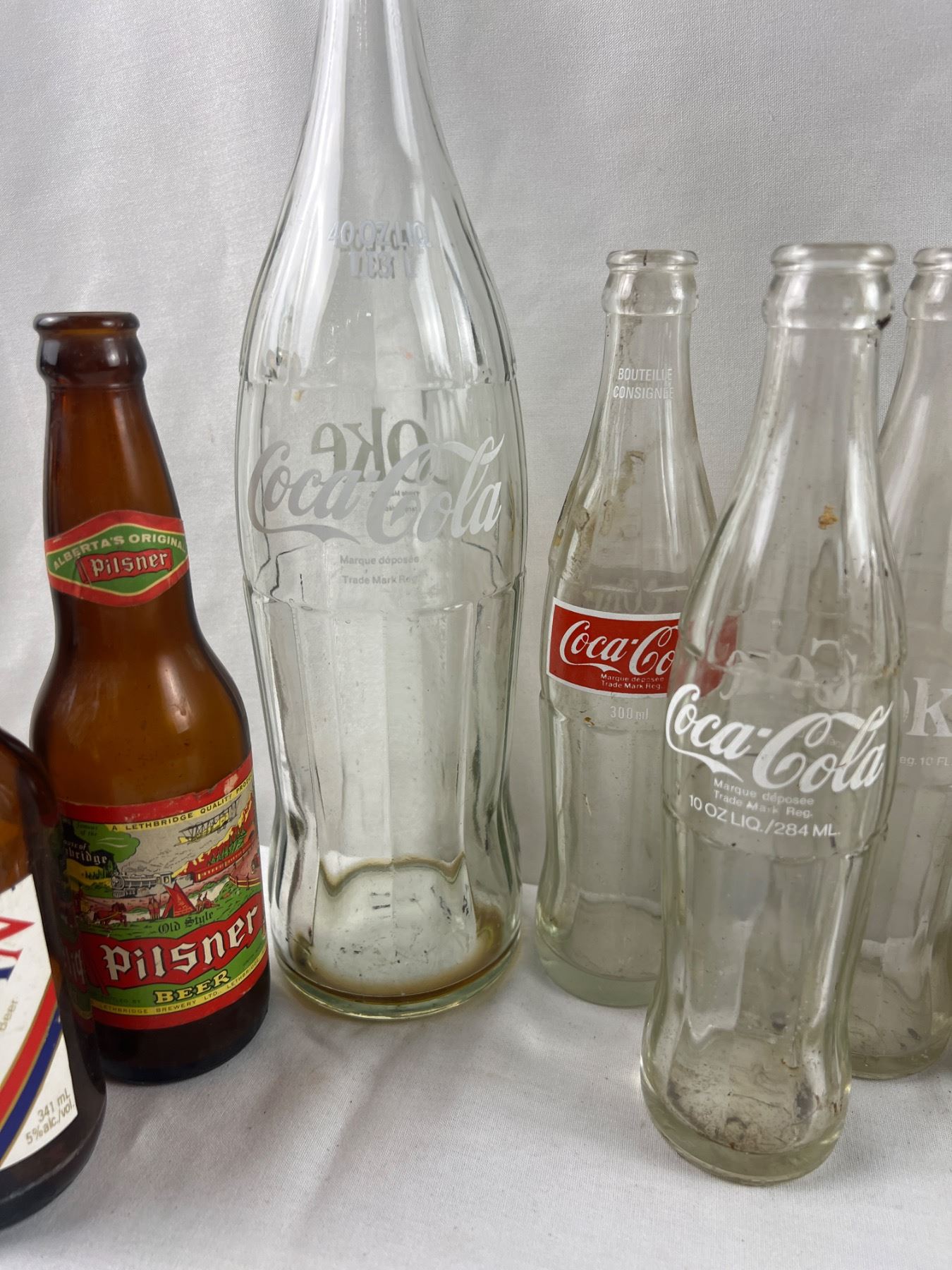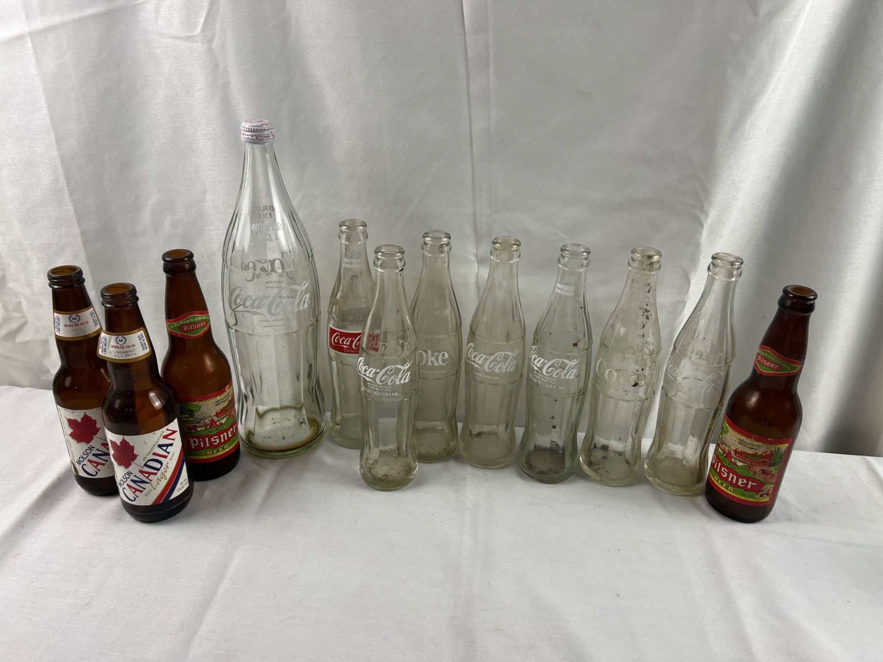 Some stains and wear, the large Coke bottle is 13.5"H