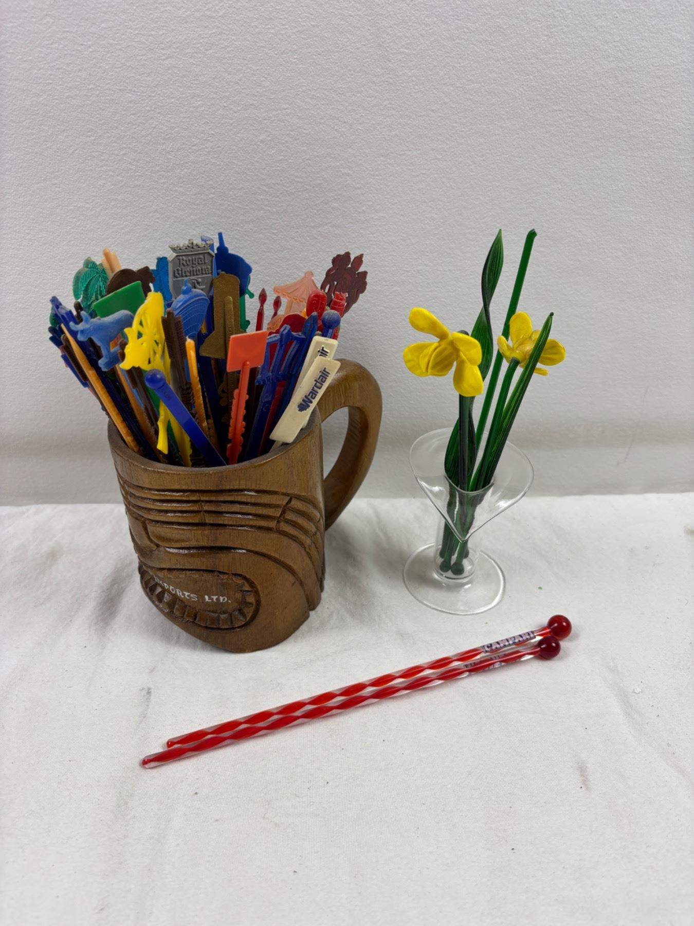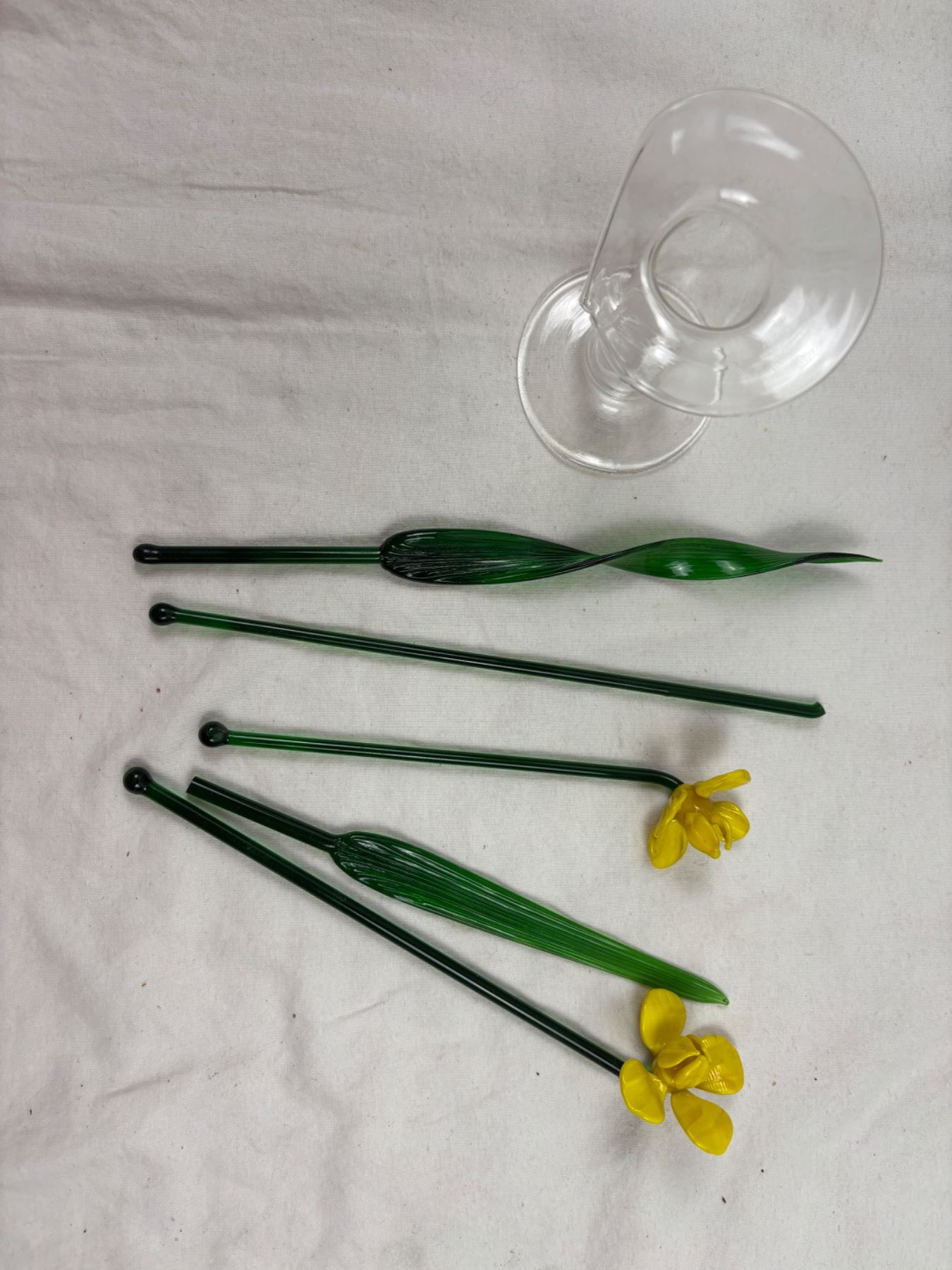 Includes a set of five glass flower stems, various plastic sticks, and more