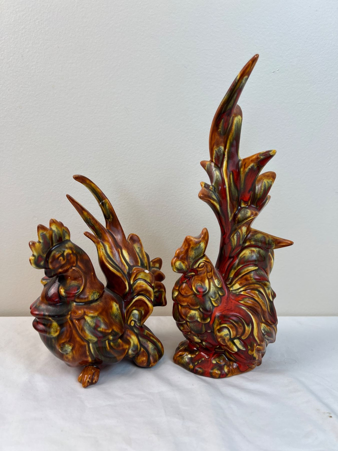 The smaller one has a chip and a glued tail, Signed "Dianne", Taller one is 12"H