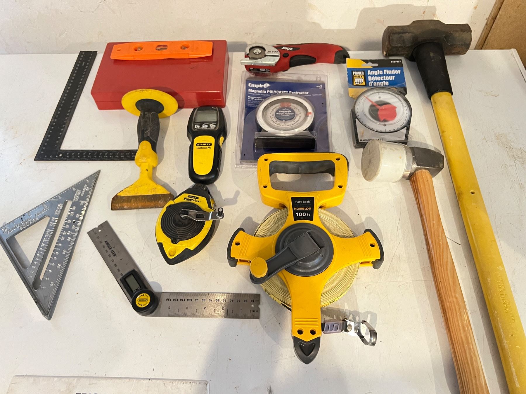 Unknown if Skil saw is working. Some wear and tear to hammers and measuring rolls.