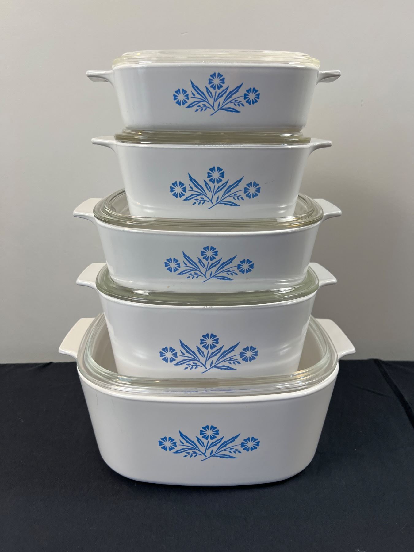 All of them have lids, smallest one is 4 cups, largest is 5L